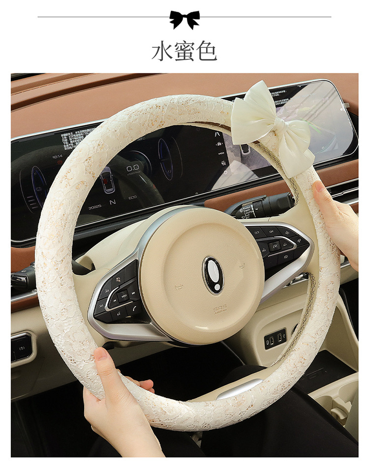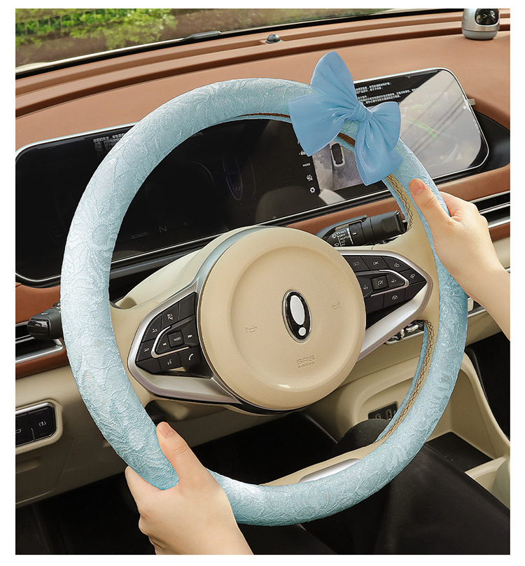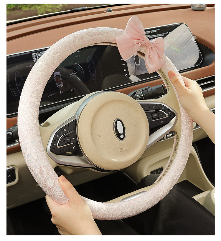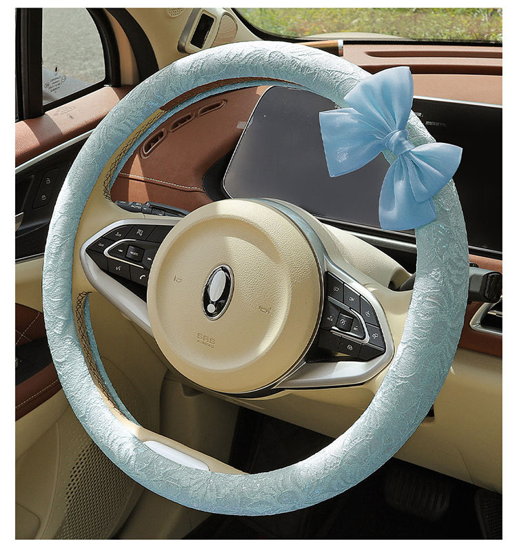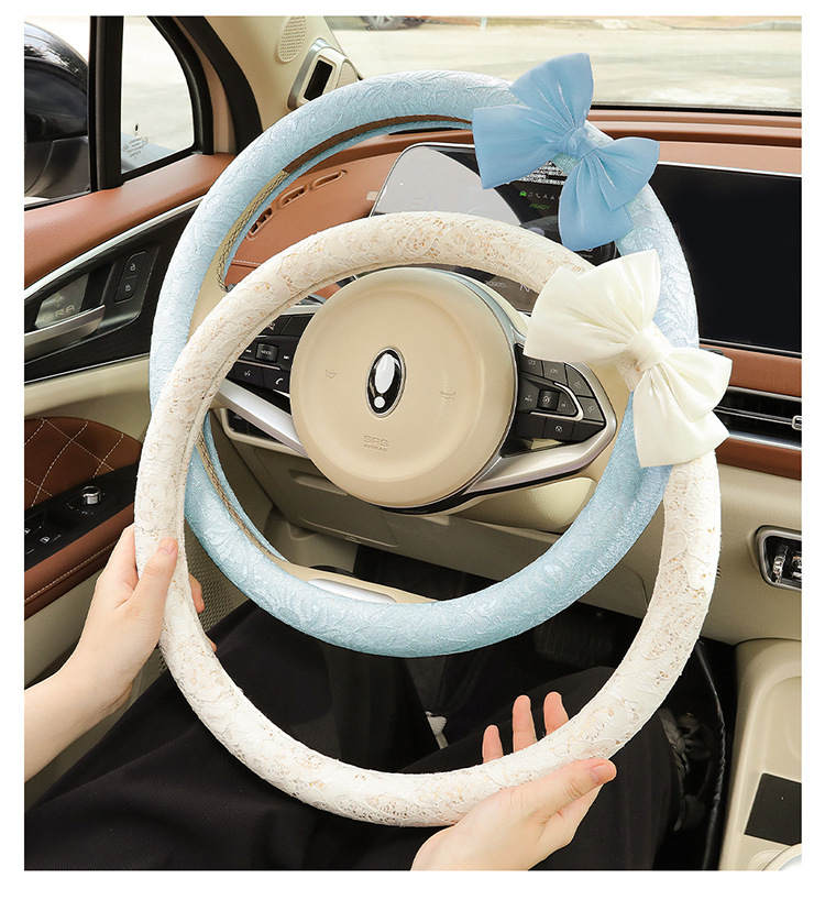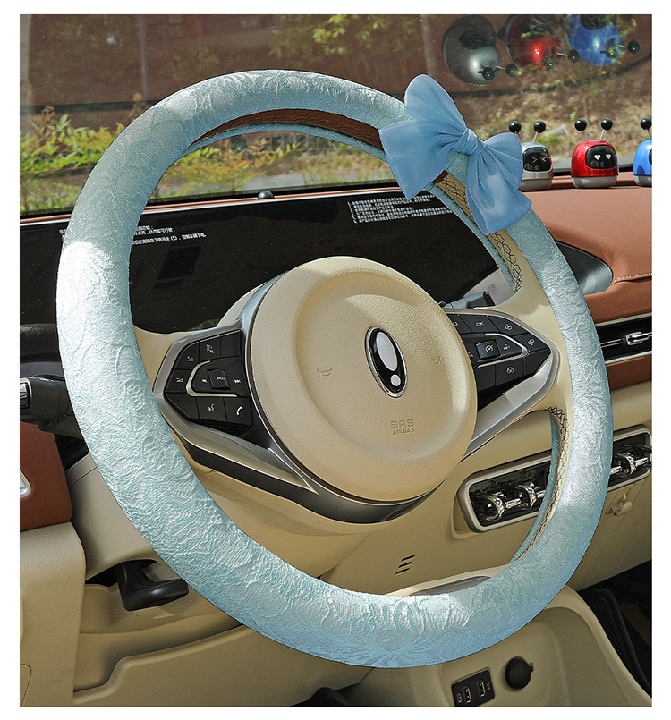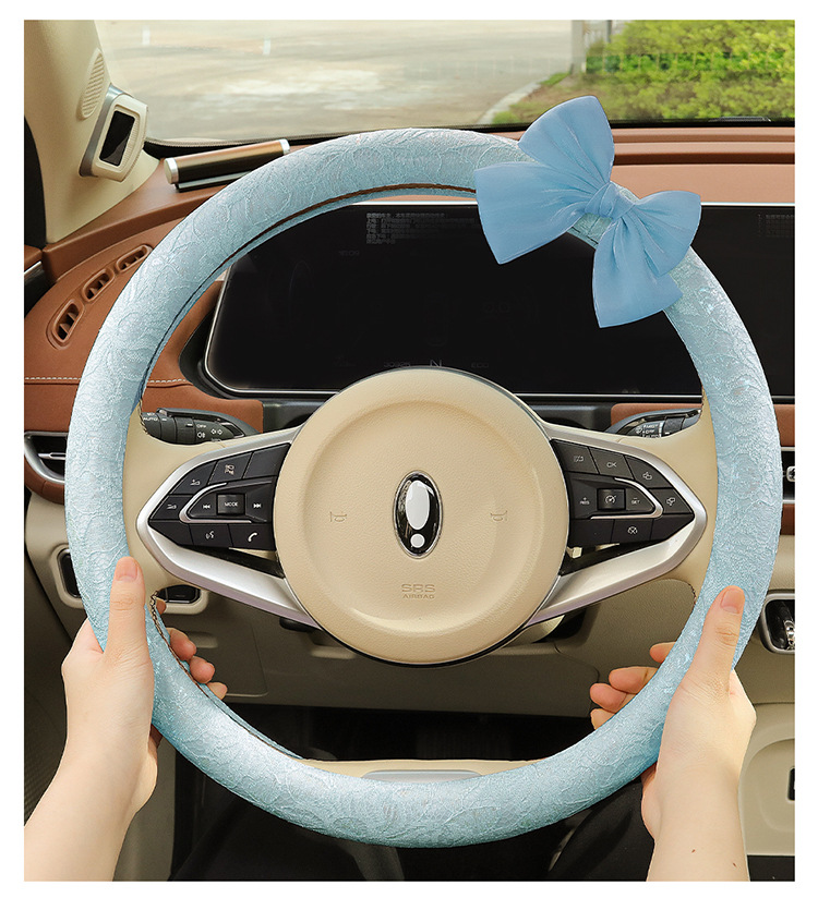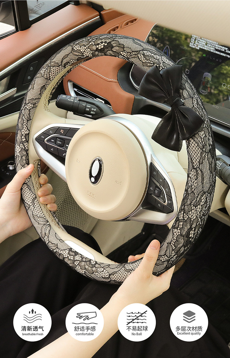 자동차 스티어링 휠 커버 여름 여성의 미끄럼 통기성 사계절 유니버설 레이스 활 초박형 핸들 커버 장식