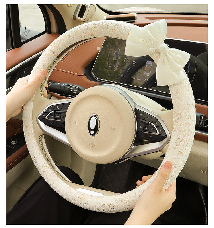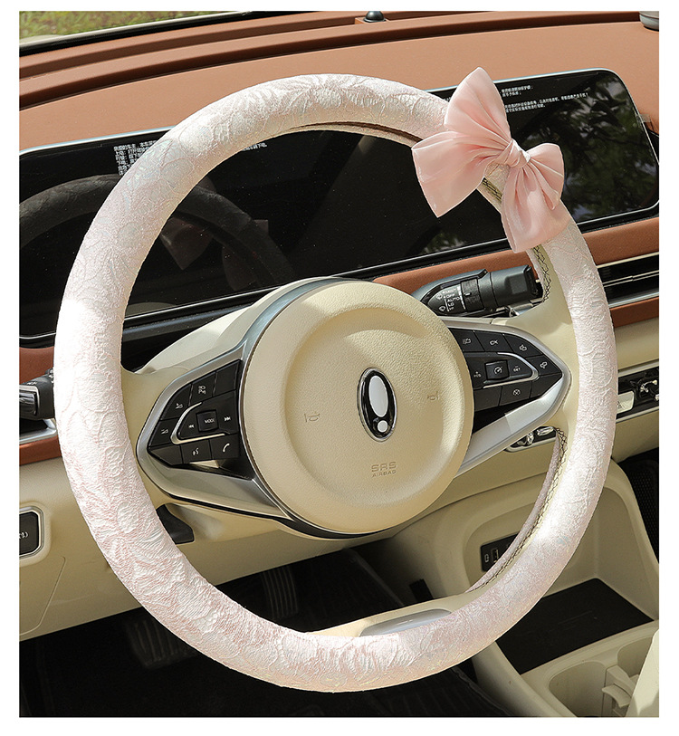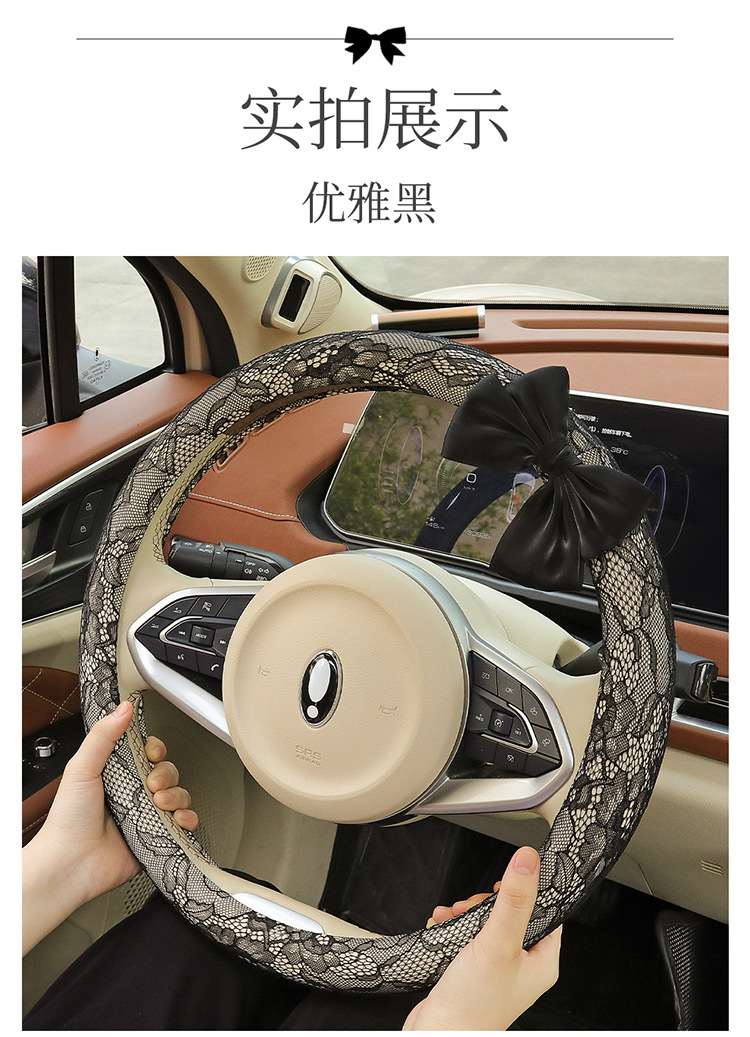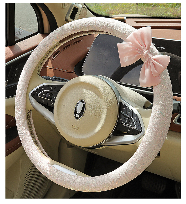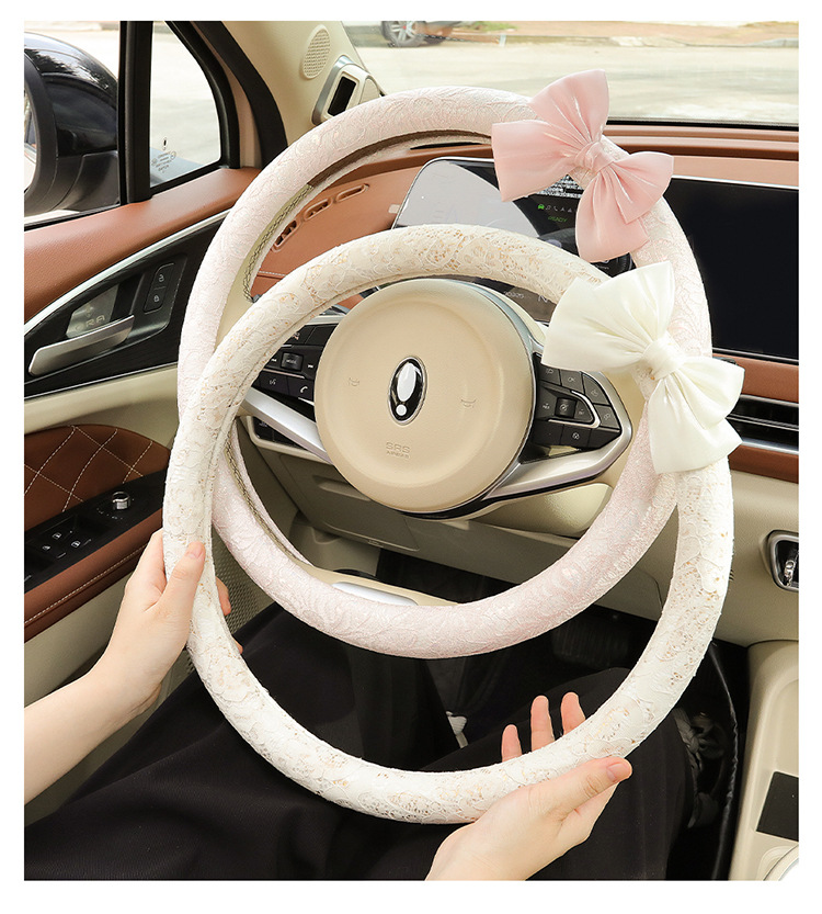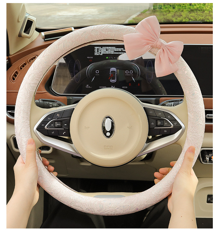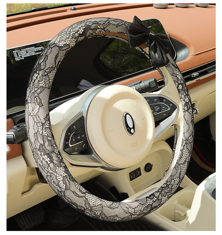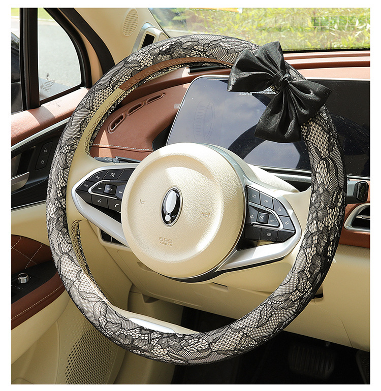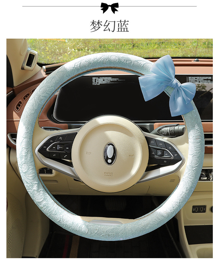 자동차 스티어링 휠 커버 여름 여성의 미끄럼 통기성 사계절 유니버설 레이스 활 초박형 핸들 커버 장식