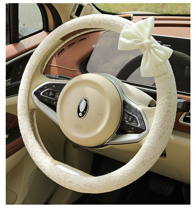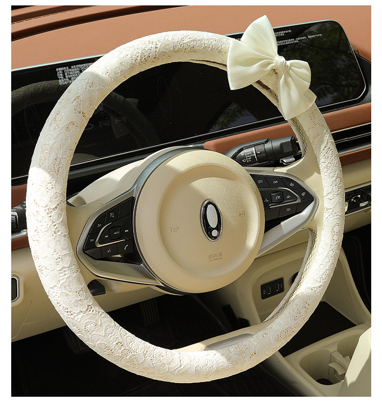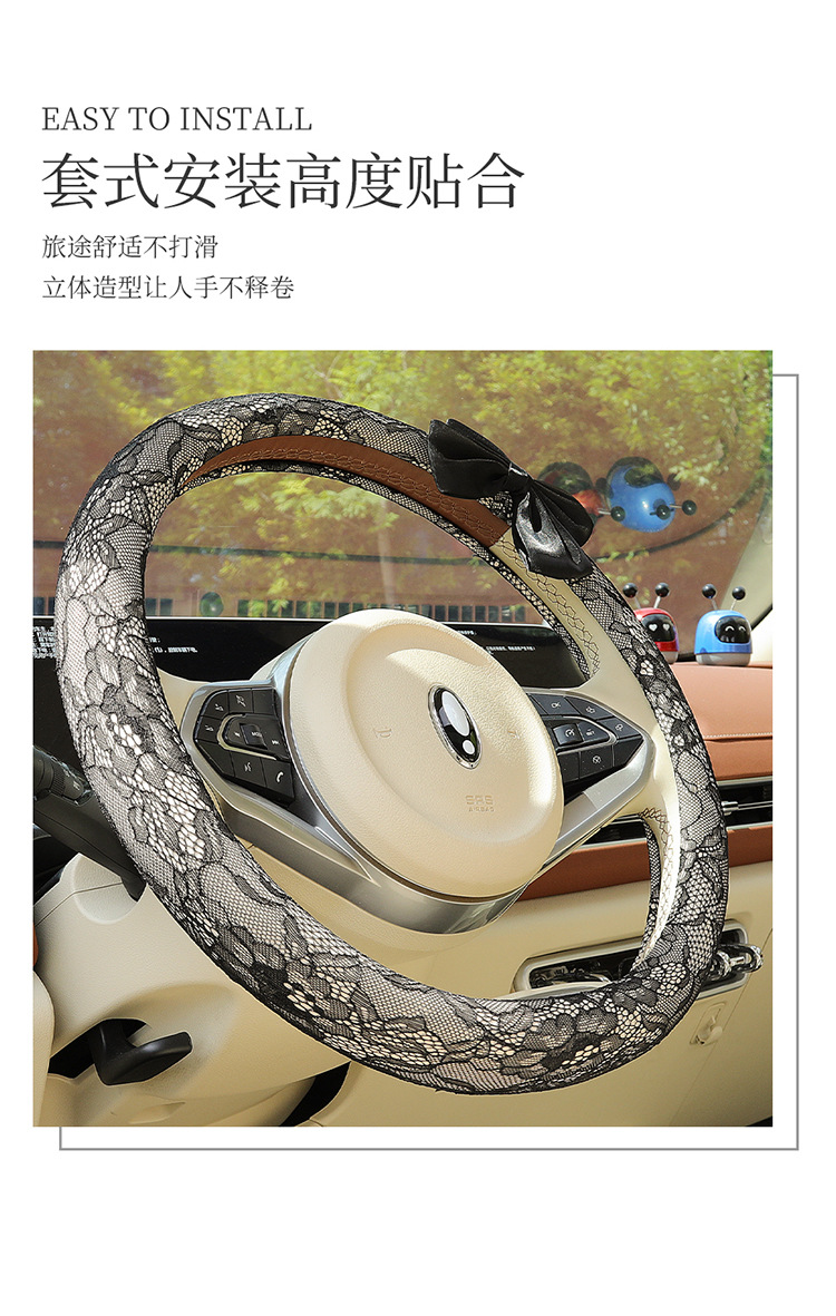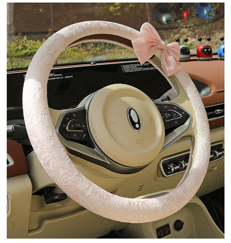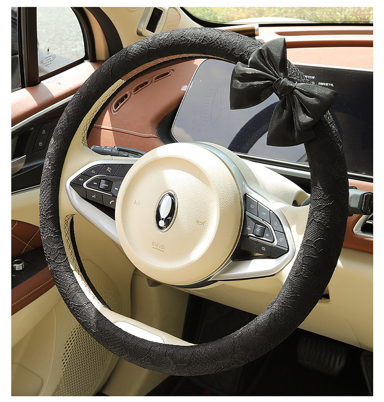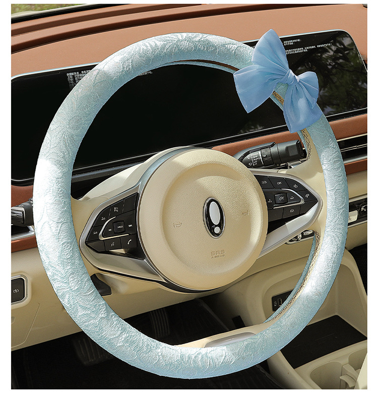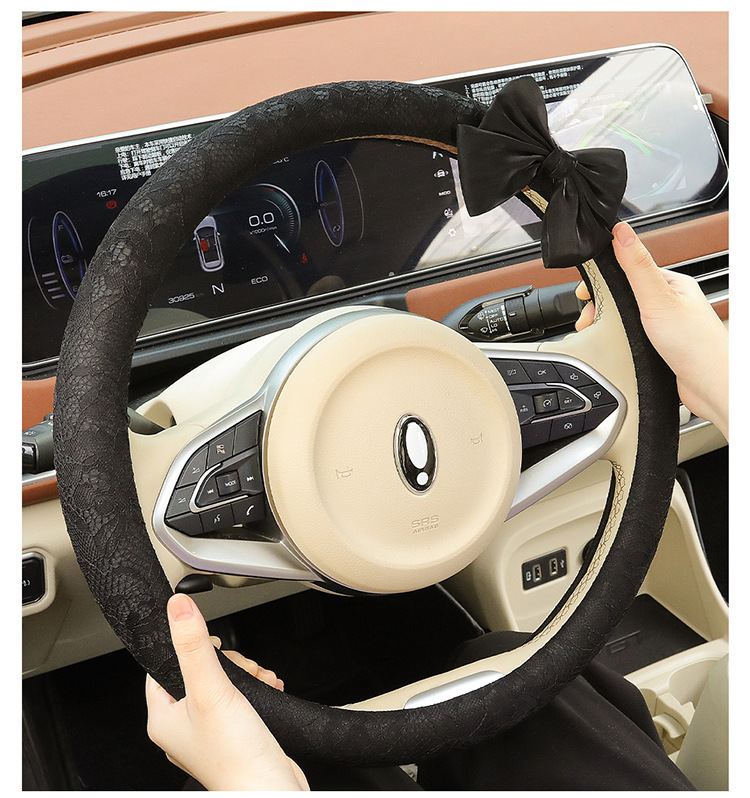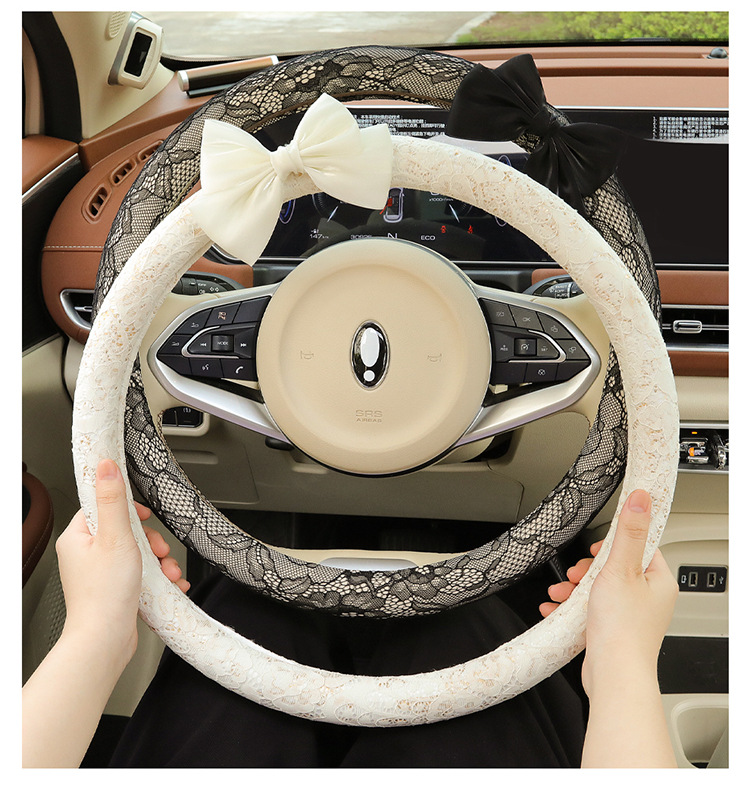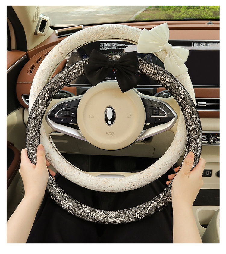 자동차 스티어링 휠 커버 여름 여성의 미끄럼 통기성 사계절 유니버설 레이스 활 초박형 핸들 커버 장식