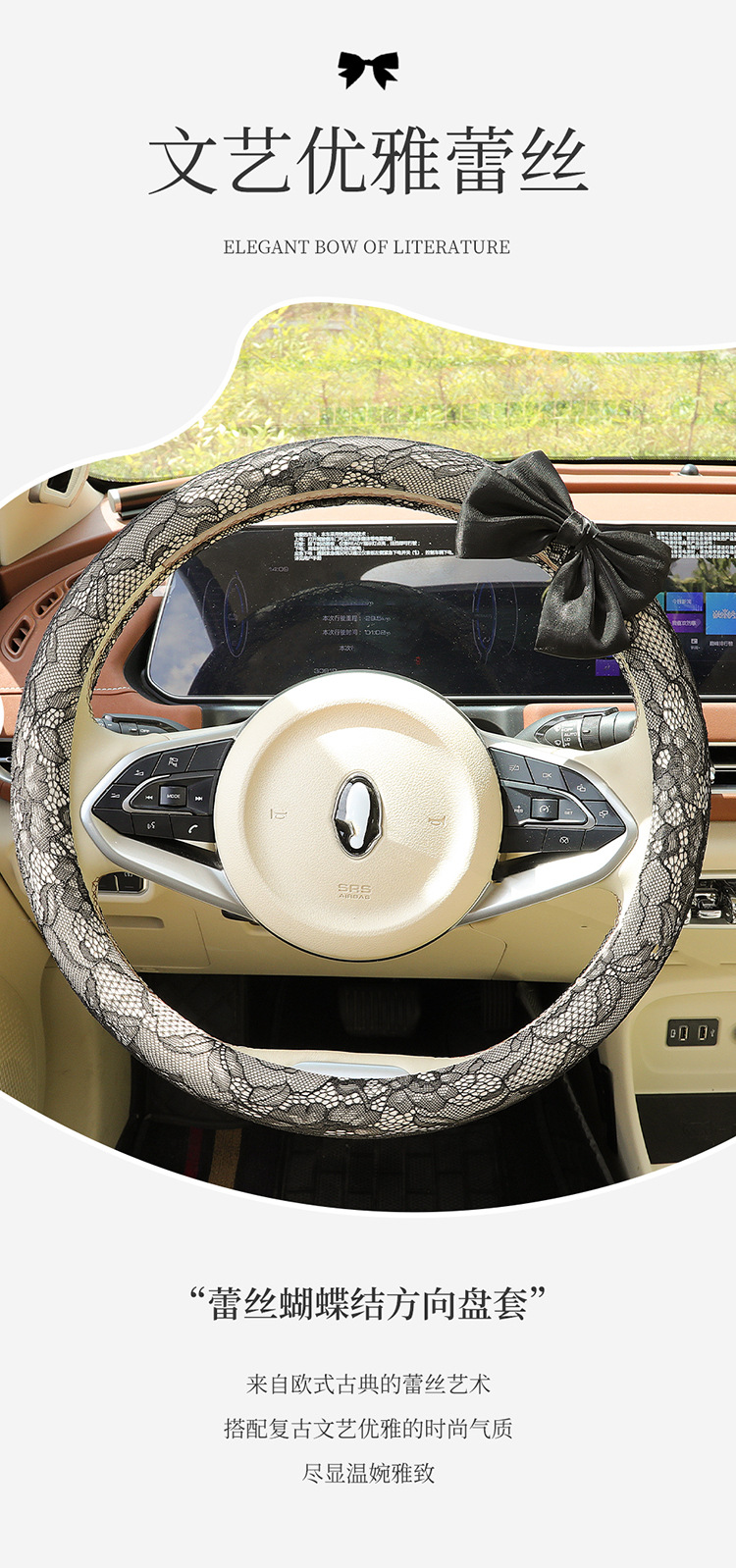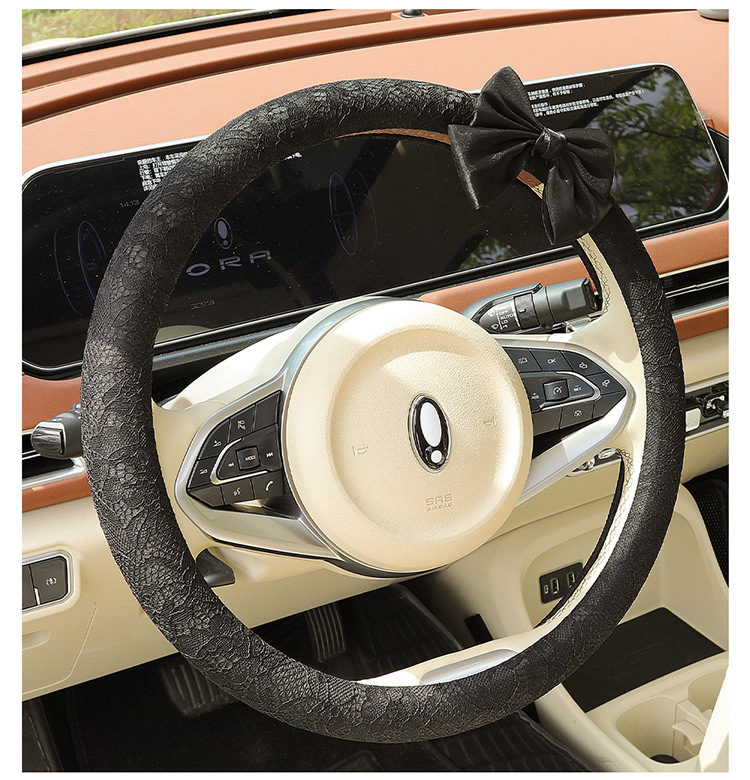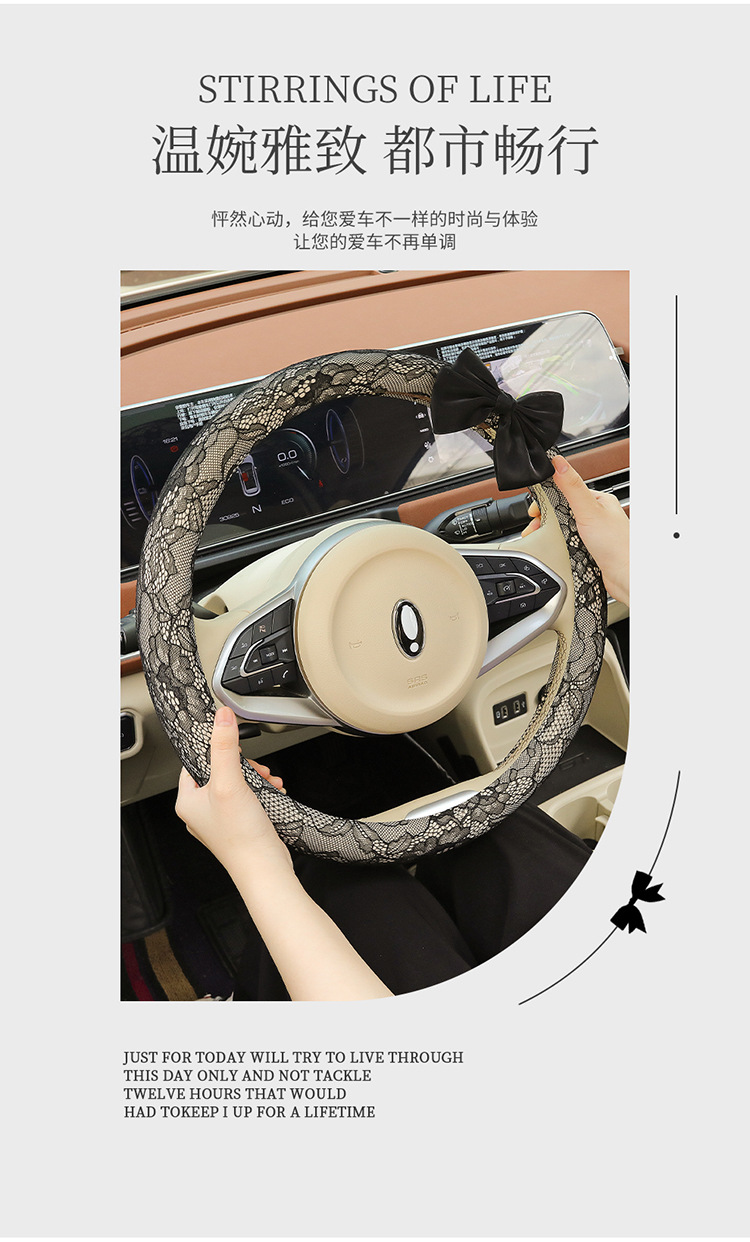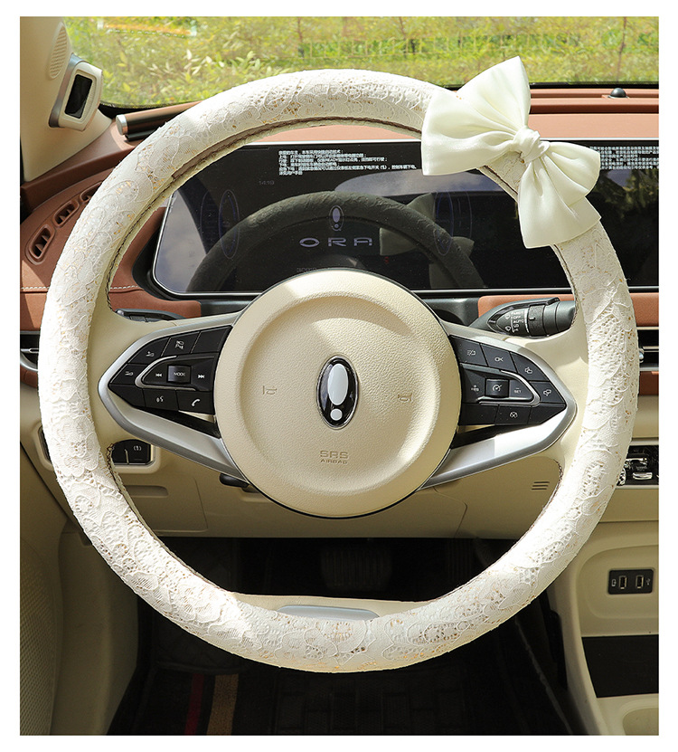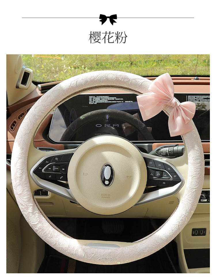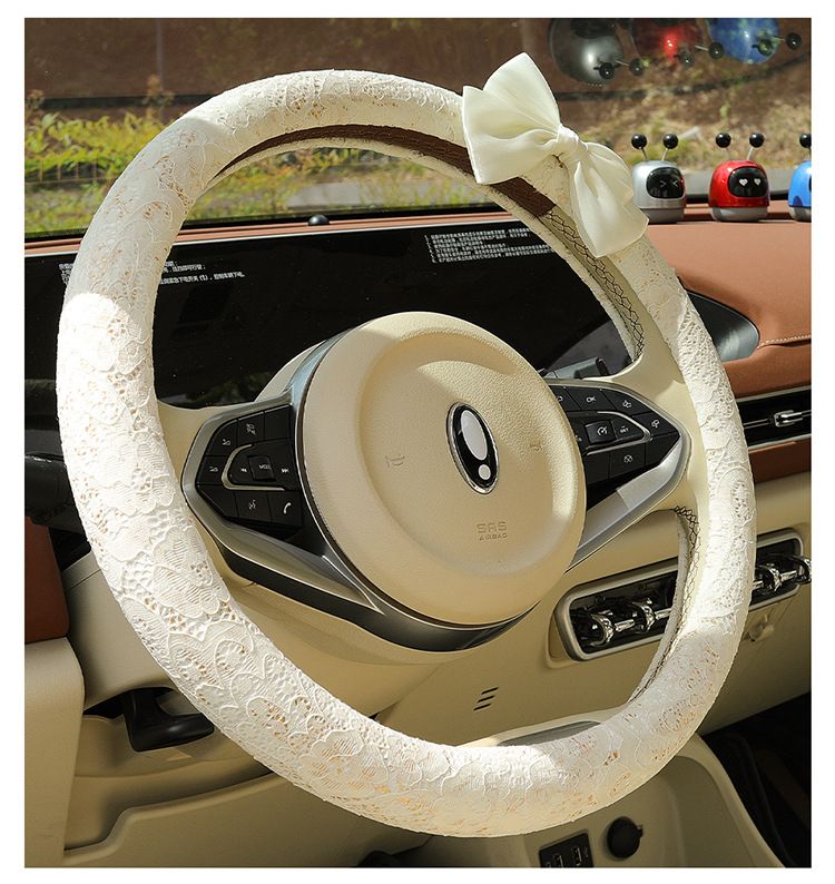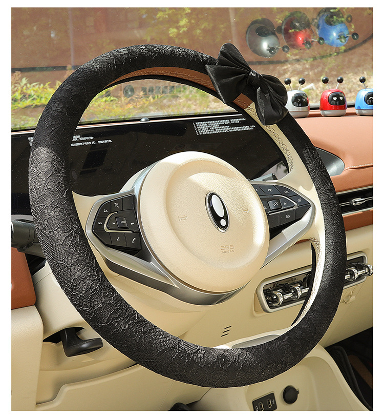 자동차 스티어링 휠 커버 여름 여성의 미끄럼 통기성 사계절 유니버설 레이스 활 초박형 핸들 커버 장식
