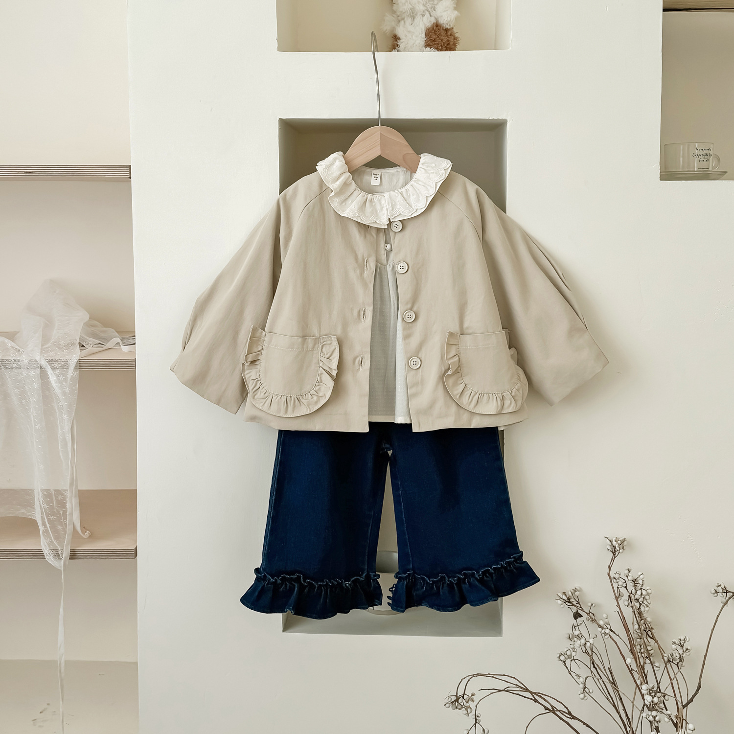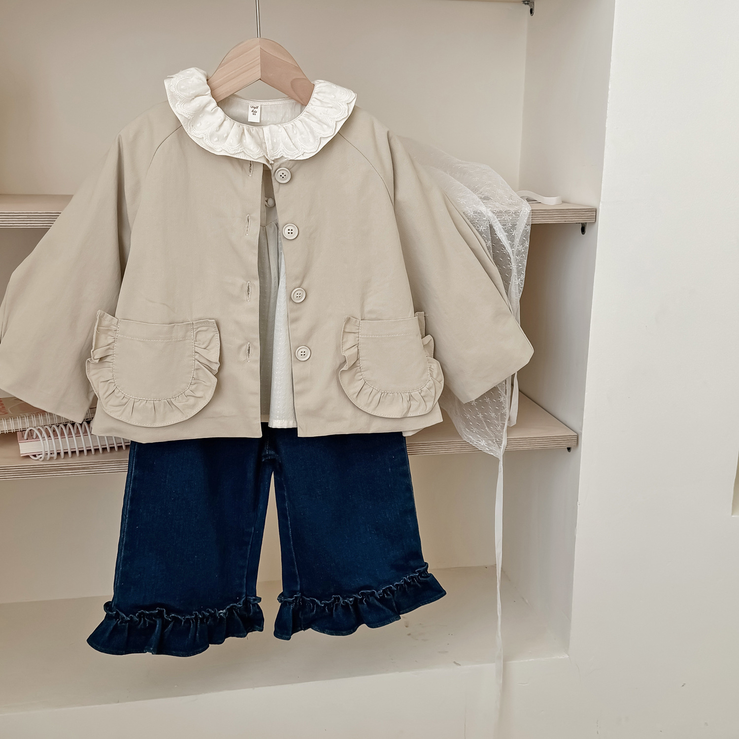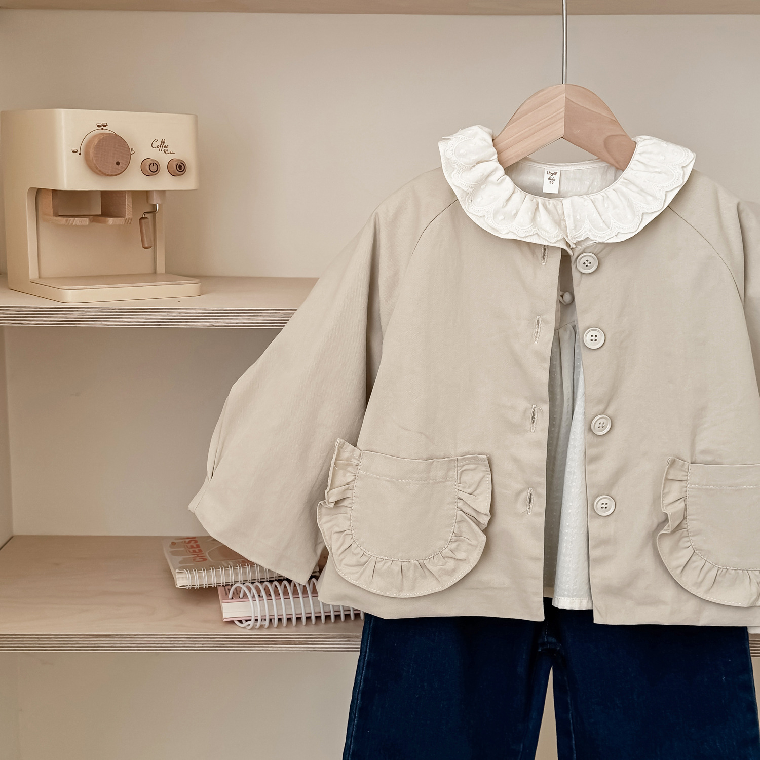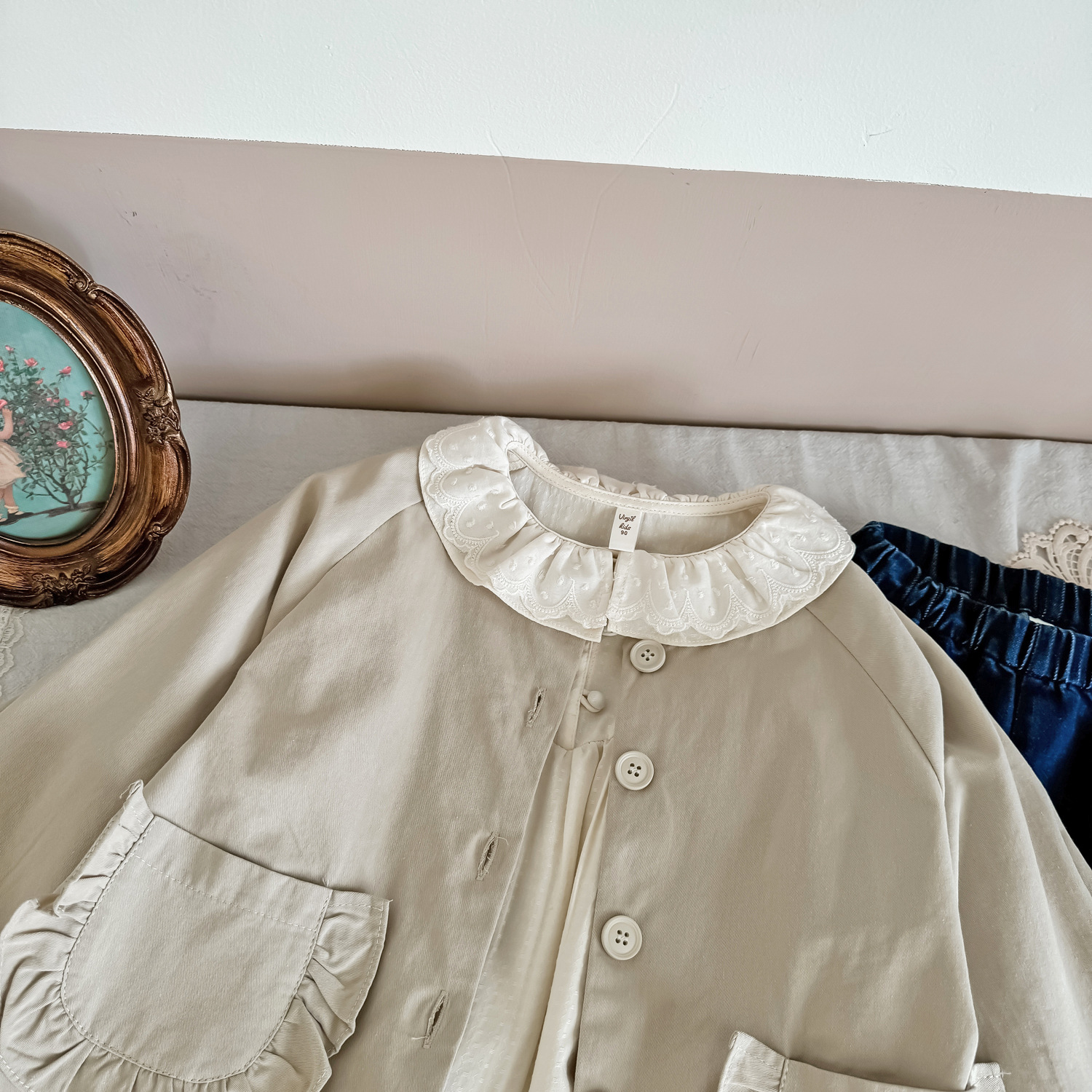 25 봄 가을 신상 여아 트렌치 코트 한국 스타일 가을 여아 재킷 카키색 능직 더블 레이어 재킷스토어 가기