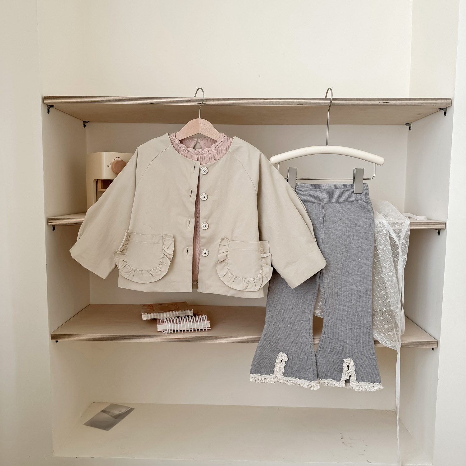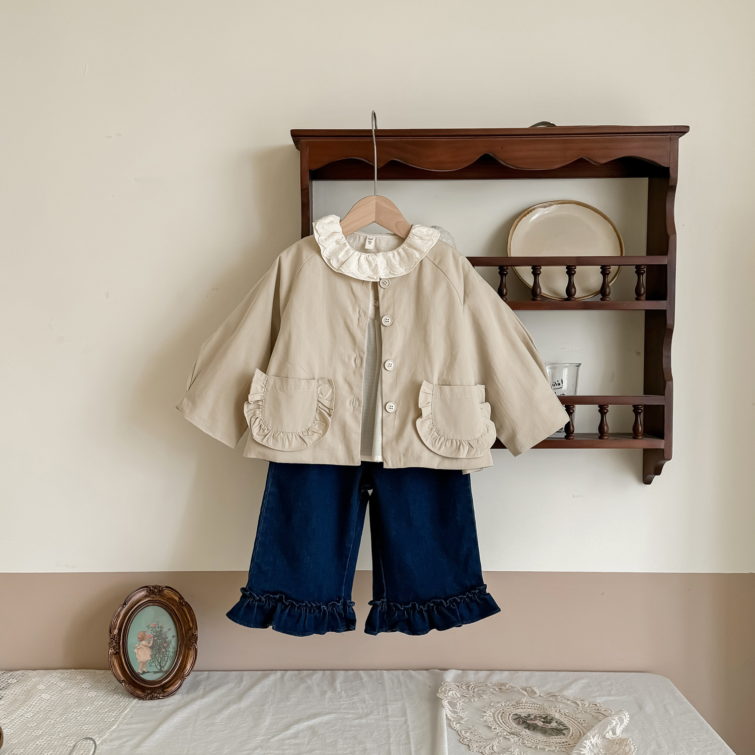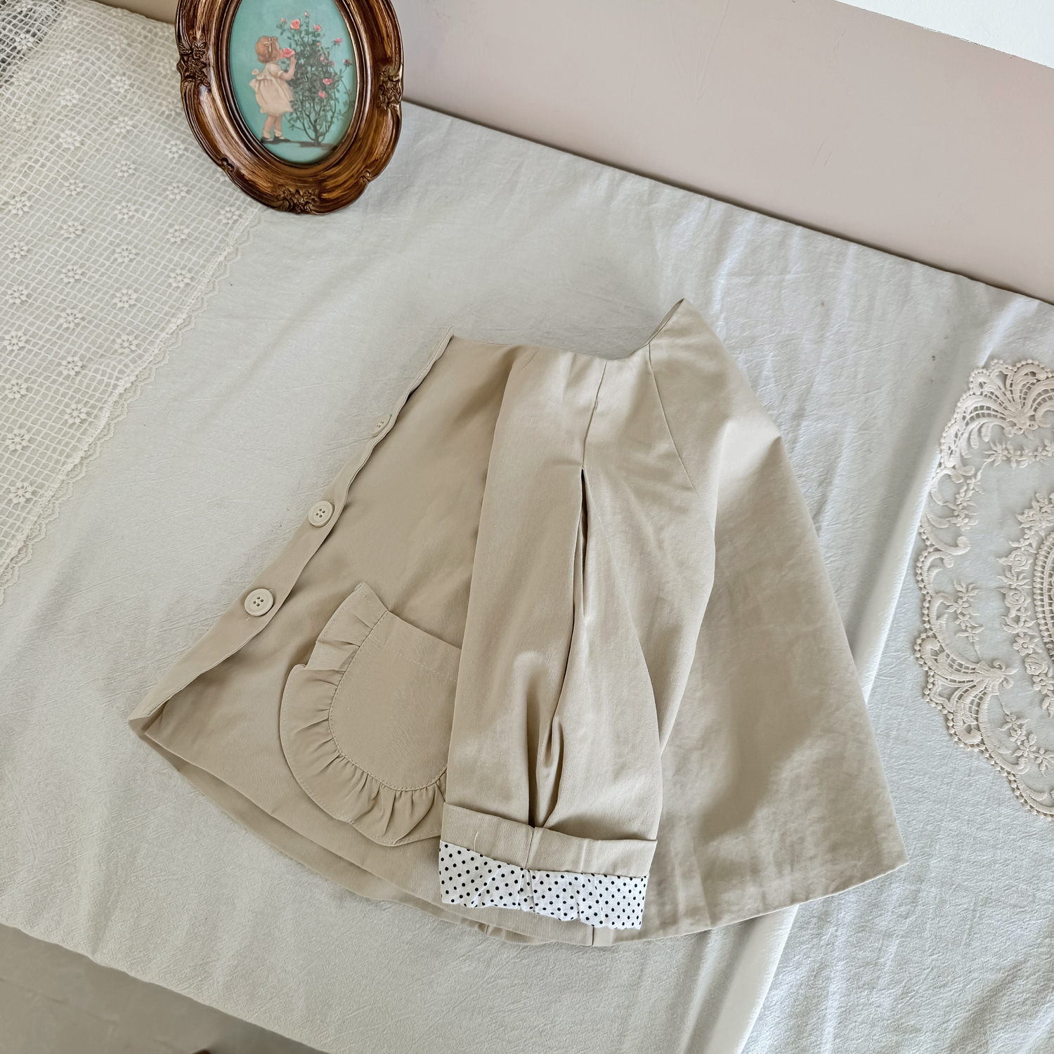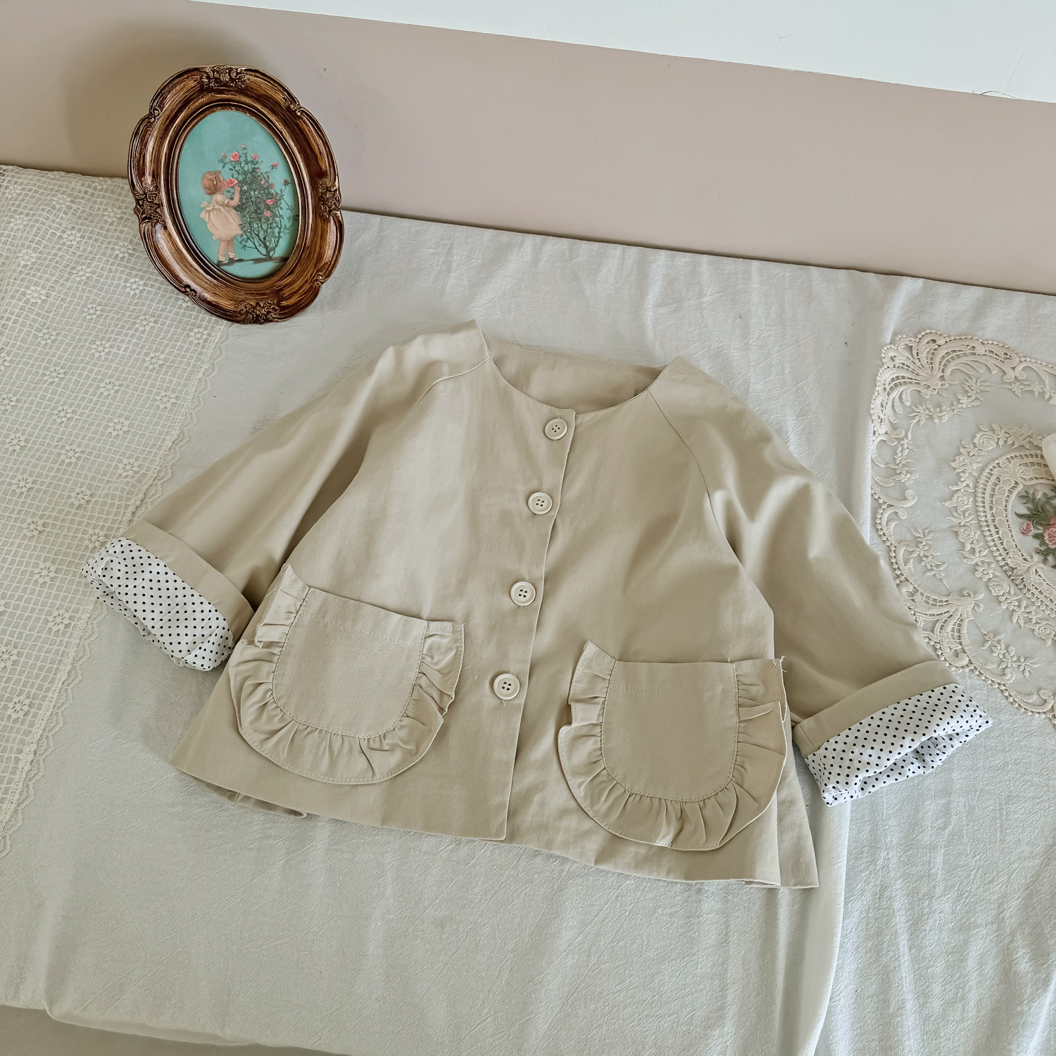 25 봄 가을 신상 여아 트렌치 코트 한국 스타일 가을 여아 재킷 카키색 능직 더블 레이어 재킷스토어 가기