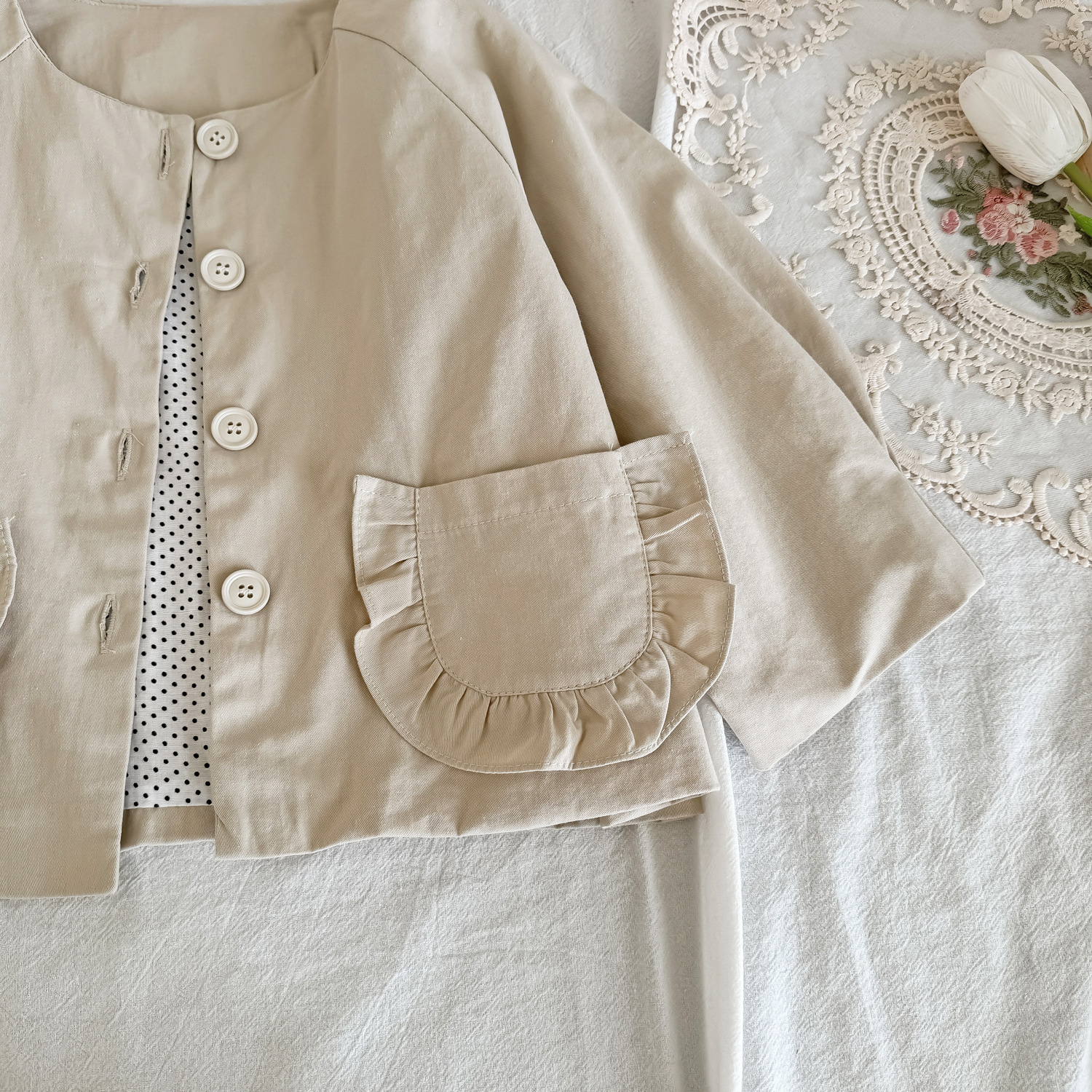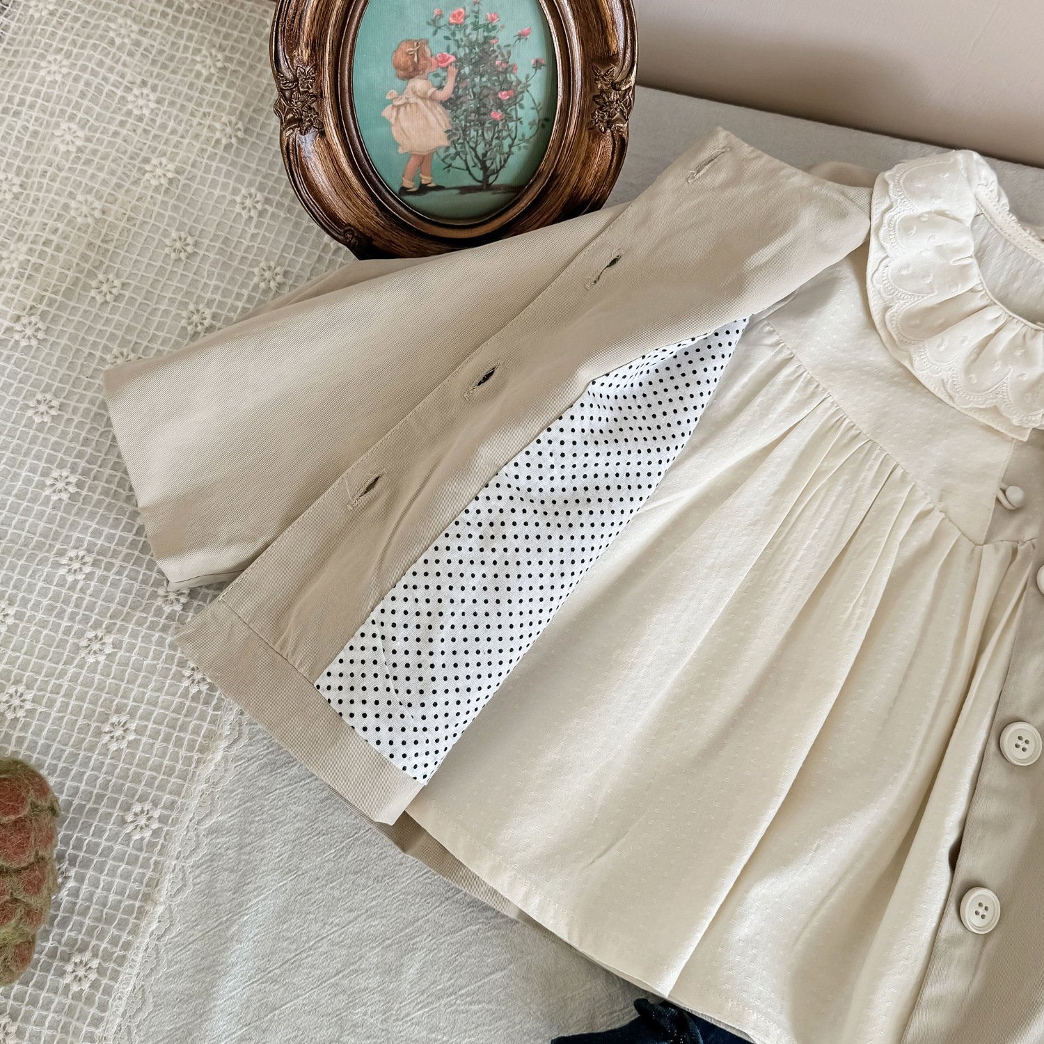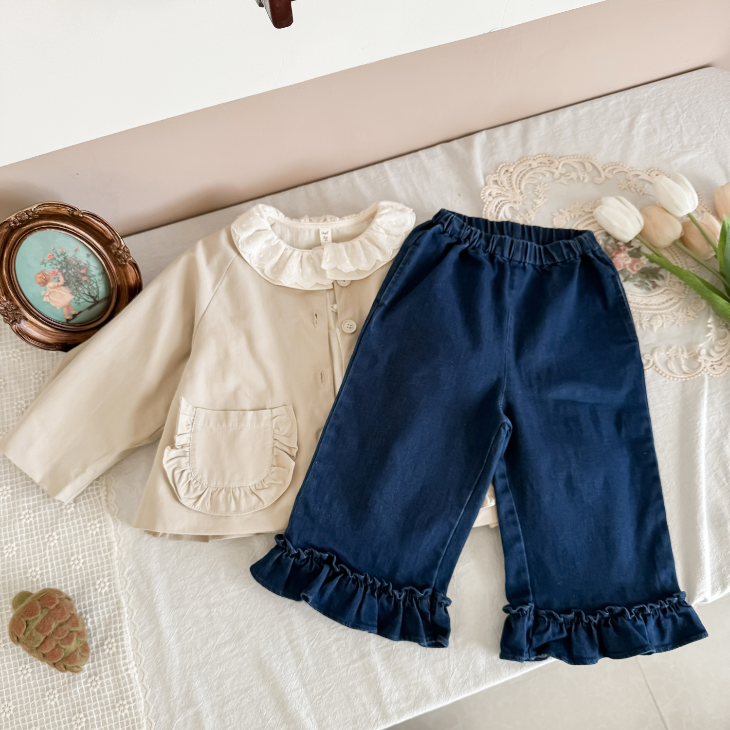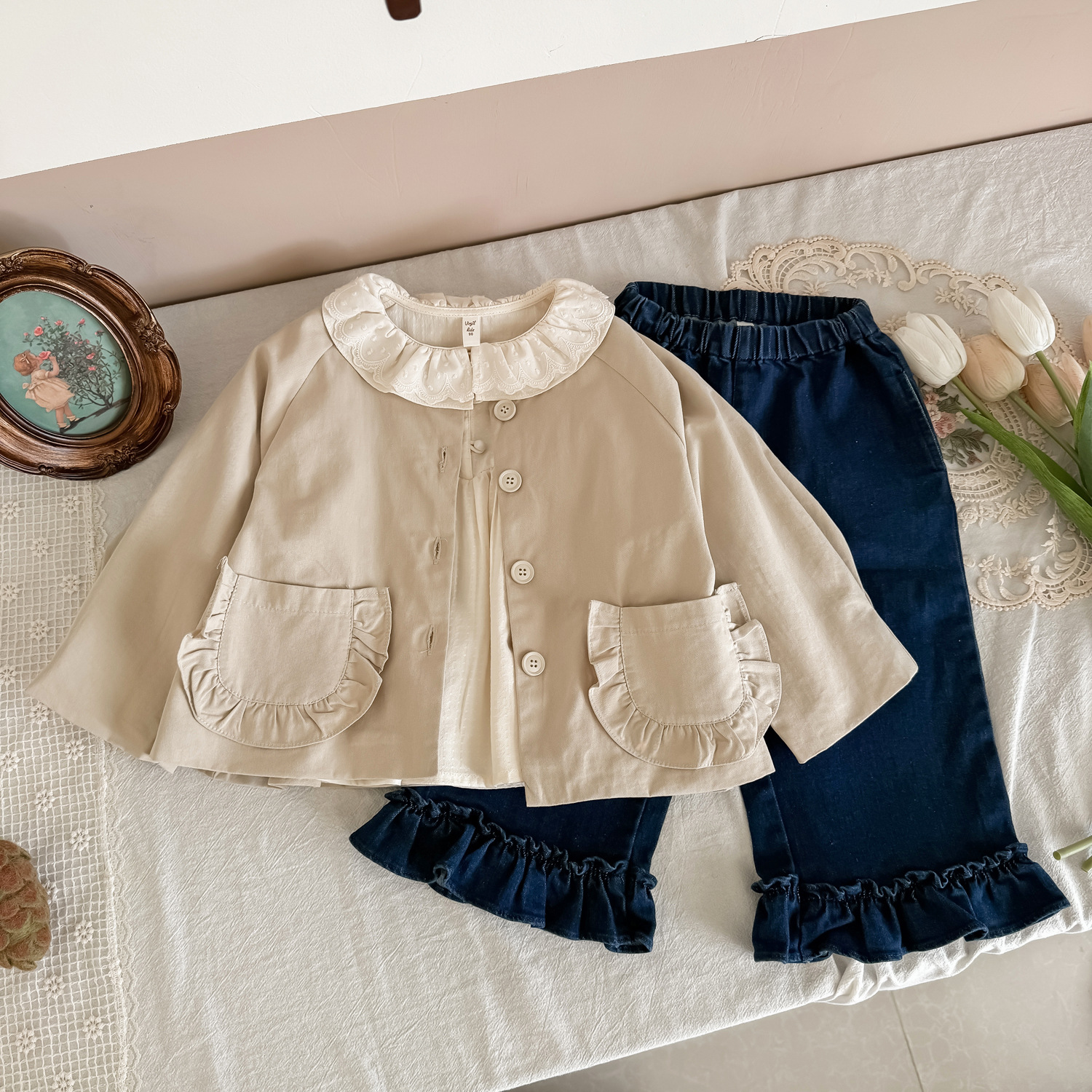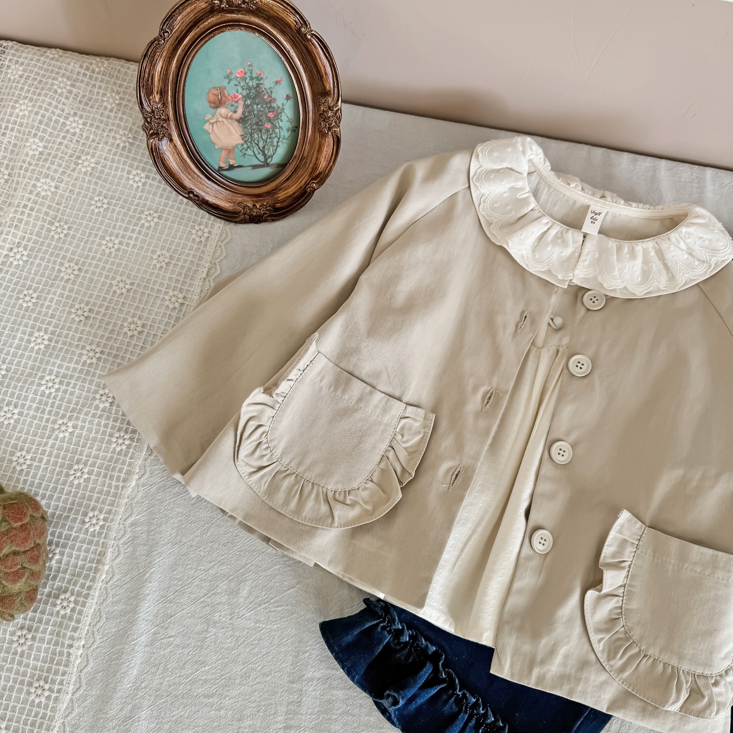 25 봄 가을 신상 여아 트렌치 코트 한국 스타일 가을 여아 재킷 카키색 능직 더블 레이어 재킷
