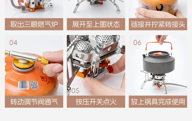 야외 휴대용 미니 접이식 3 안 요리 헤드 야외 캠핑 끓는 물 차 바베큐 밥솥 스토브 장비