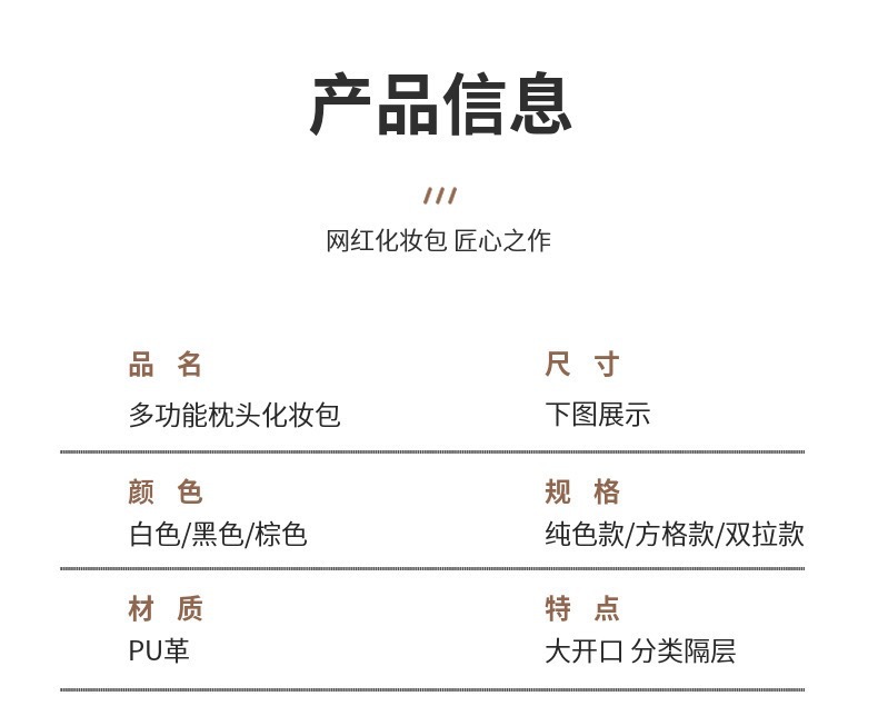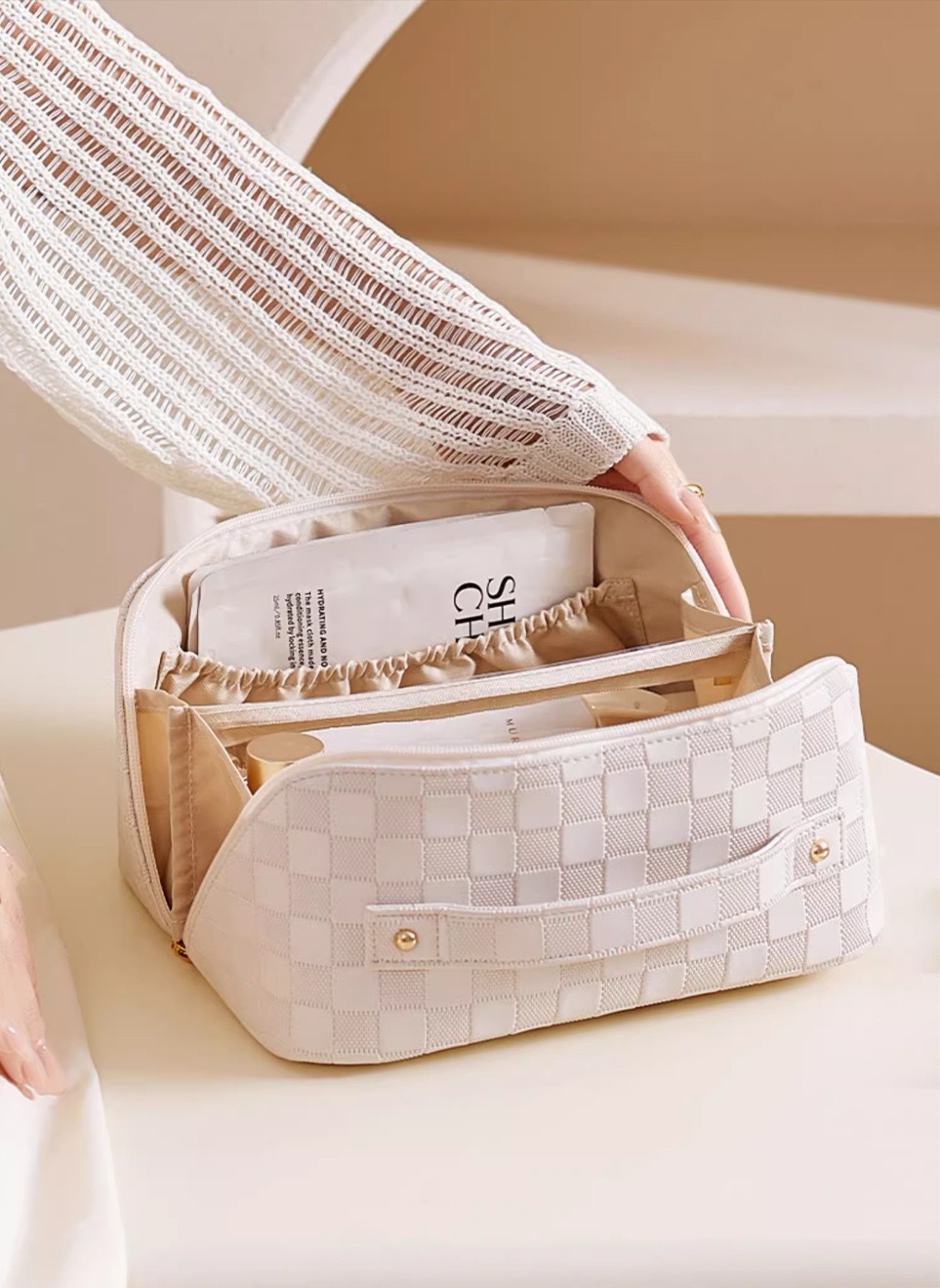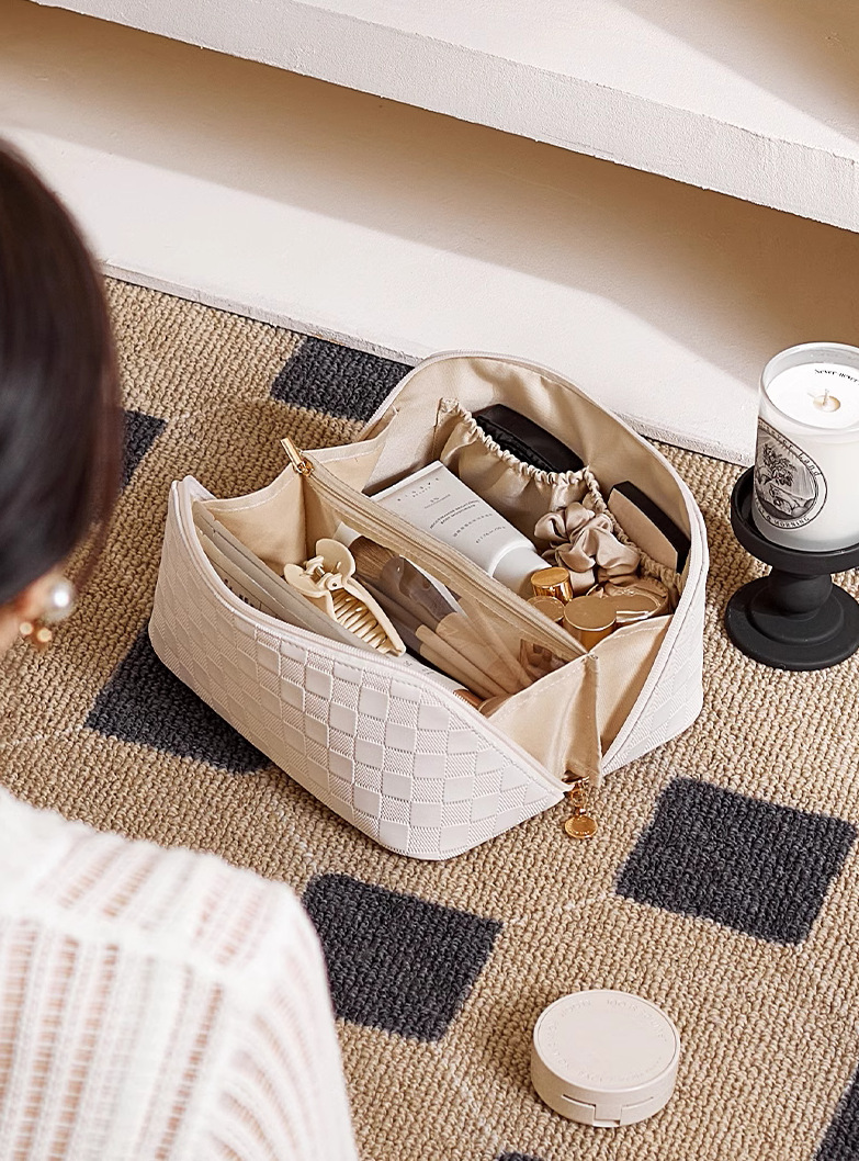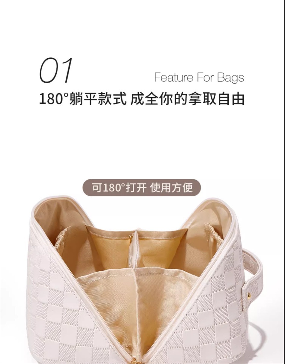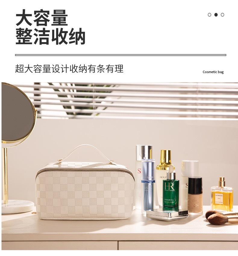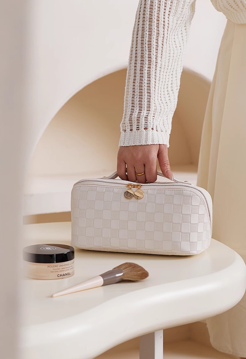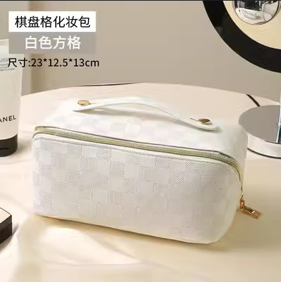 • 흰색 체크 무늬 화장품 가방 [업그레이드 된 격막 고정 단락]]