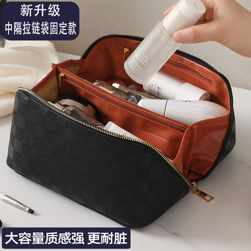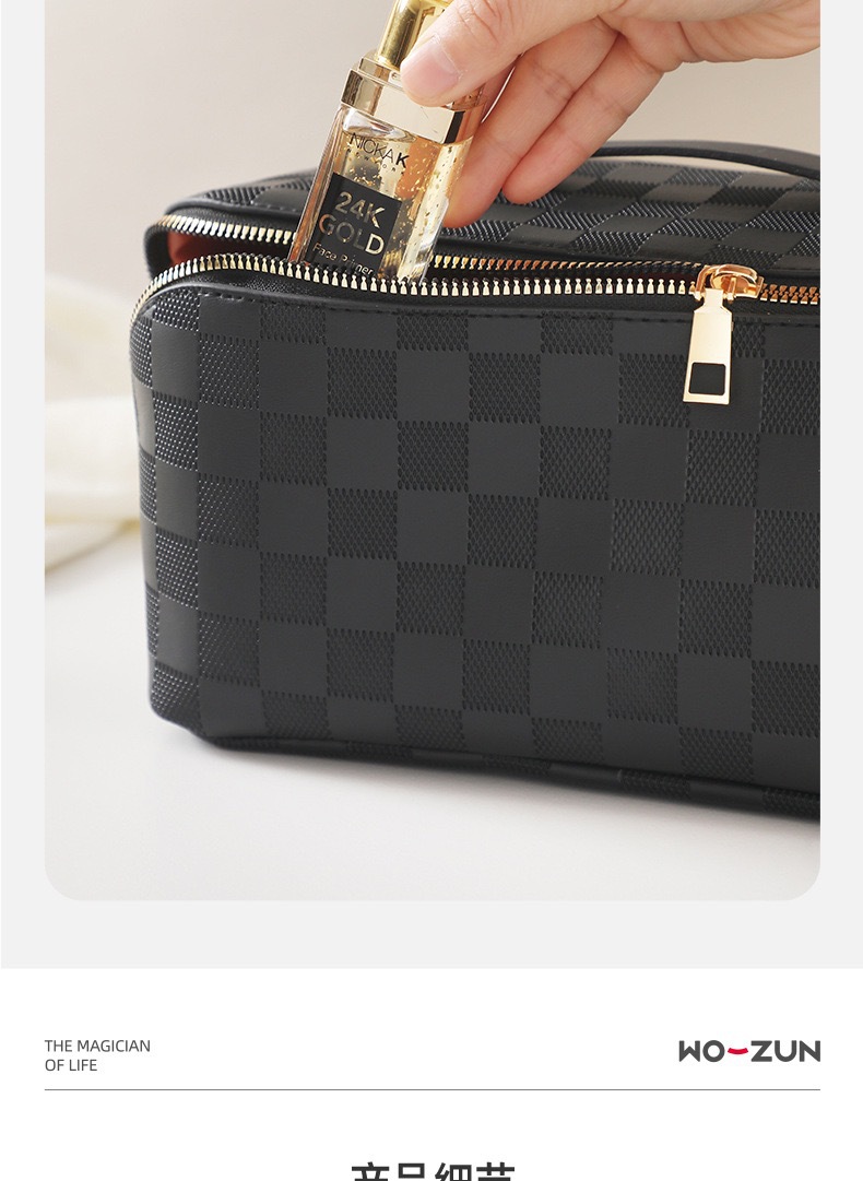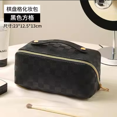 • 검은 체크 무늬 화장품 가방 [업그레이드 된 격막 고정 단락]]