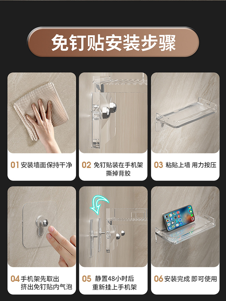 화장실 휴대 전화 홀더 공용 화장실 욕실 휴대 전화 트레이 저장 브래킷 펀치 무료 벽 선반스토어 가기
