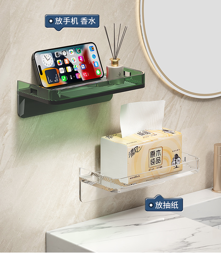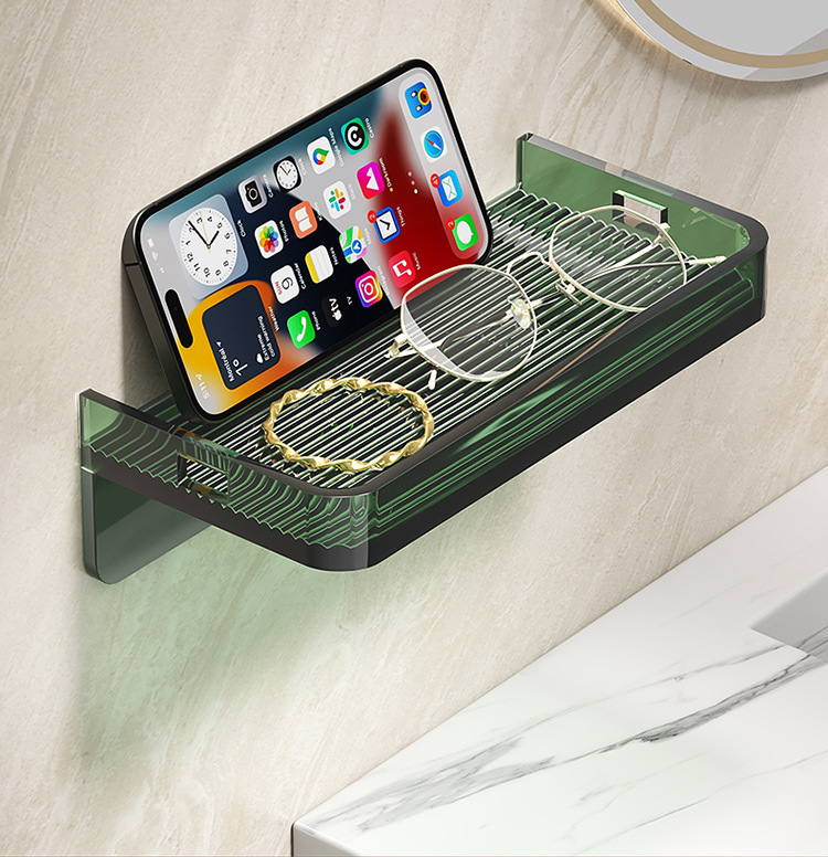 화장실 휴대 전화 홀더 공용 화장실 욕실 휴대 전화 트레이 저장 브래킷 펀치 무료 벽 선반