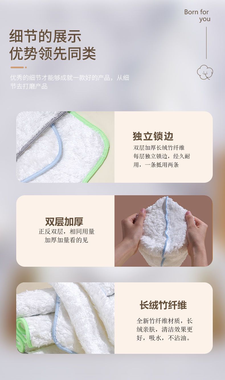 주방 더블 레이어 대나무 섬유 오일 프리 식기 세척 천 두꺼운 식기 세척 수건 가정용 청소 흡수성 식기 세척 천스토어 가기