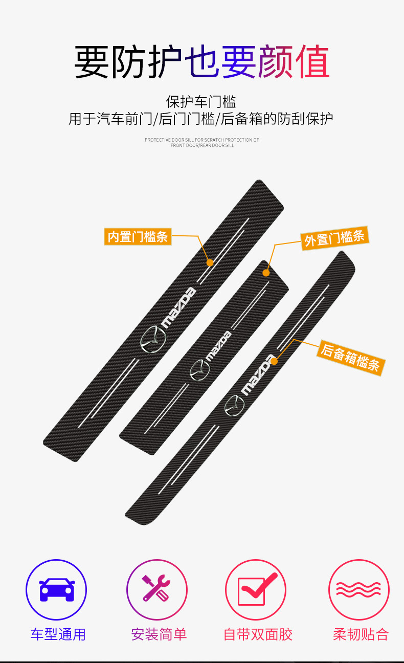 자동차 문턱 바 안티 스테핑 스티커 보호 안티 스크래치 안티 킥 장식 스티커 탄소 섬유 자동차 도어 페달 스티커 충돌 방지 스트립스토어 가기