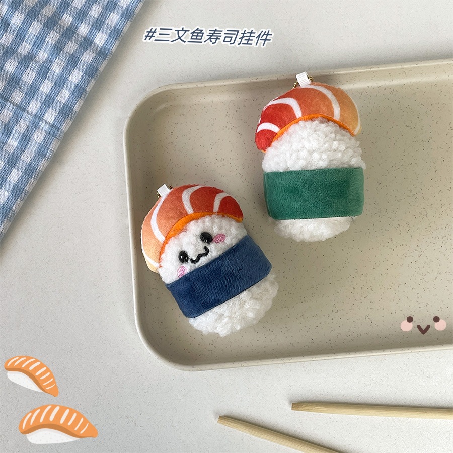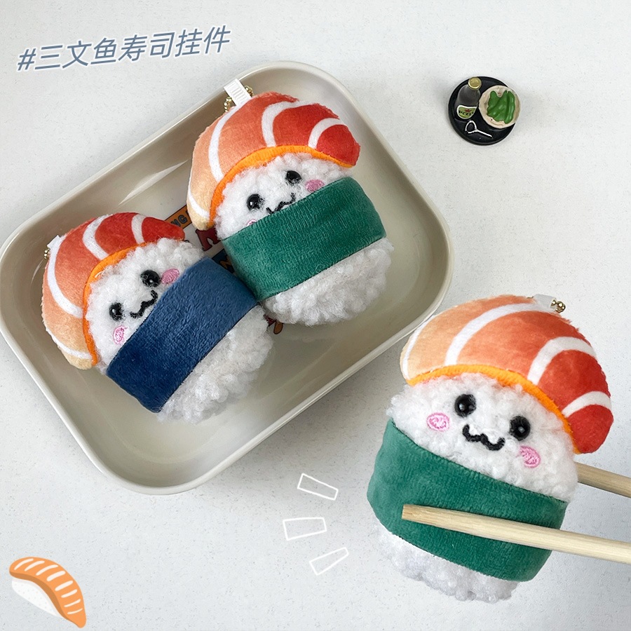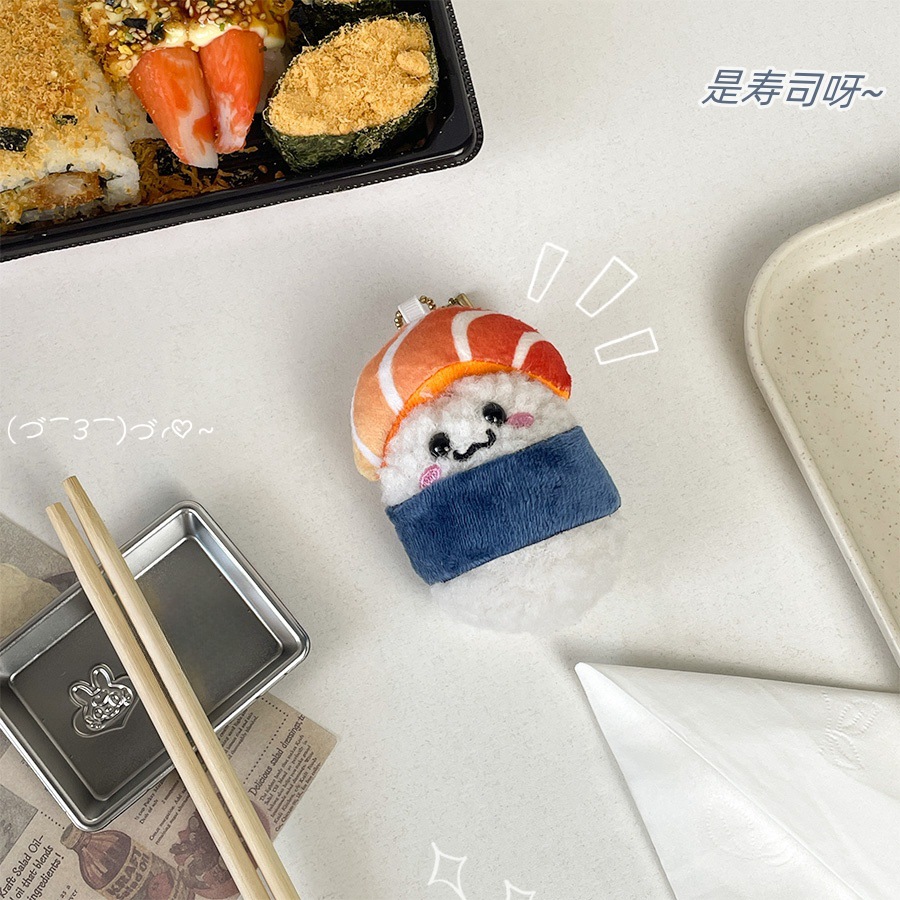 일본 연어 스시 봉제 펜던트 귀여운 인형 어린이 학교 가방 액세서리 키 체인 미니 인형 도매스토어 가기