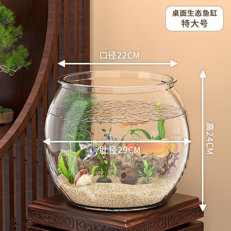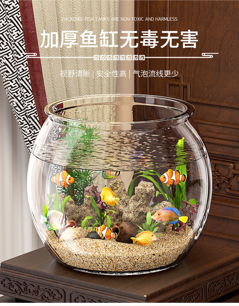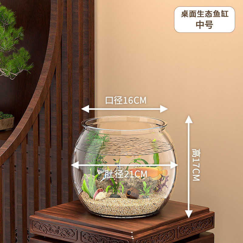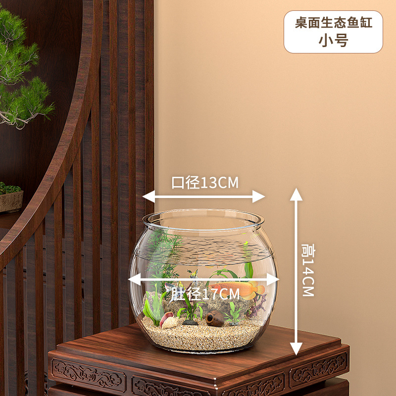 둥근 물고기 탱크 플라스틱 원피스 성형 모조 유리 낙하 방지 거실 작은 데스크탑 생태 탱크 가구스토어 가기
