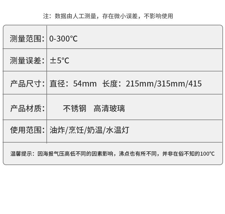 양지 프라이어 식품 가정용 주방 액세서리 오일 온도계 기계 바이메탈 스테인레스 스틸 고정밀 온도계스토어 가기