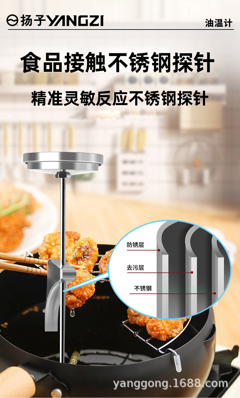 양지 프라이어 식품 가정용 주방 액세서리 오일 온도계 기계 바이메탈 스테인레스 스틸 고정밀 온도계