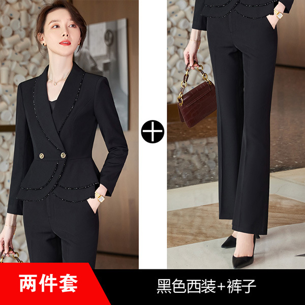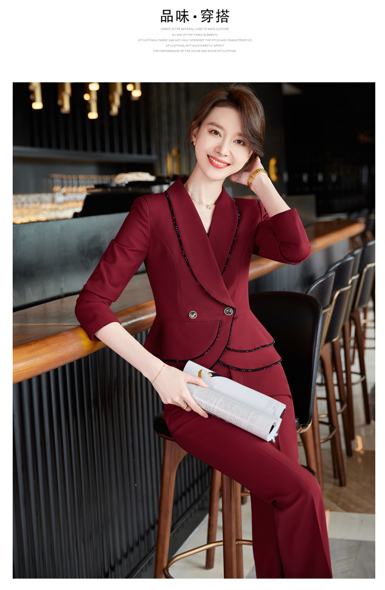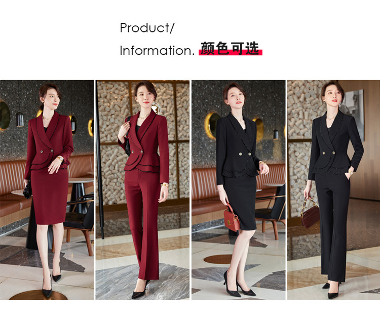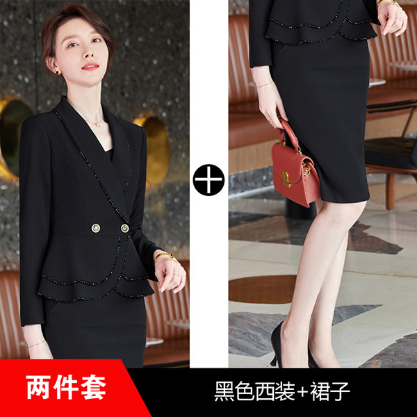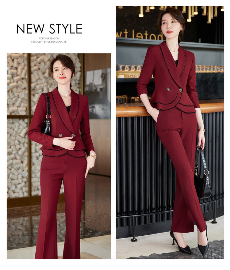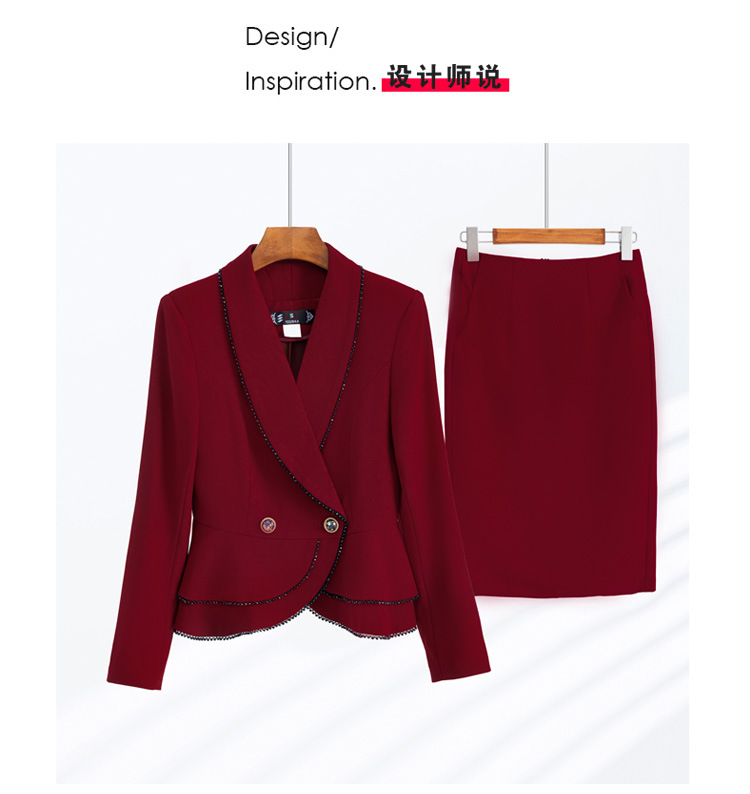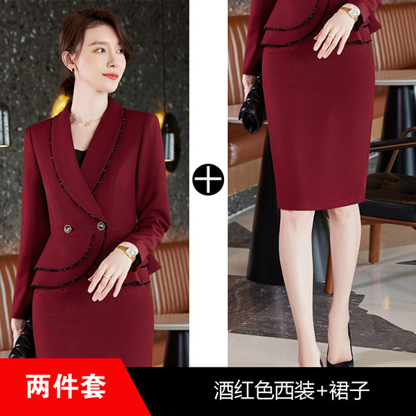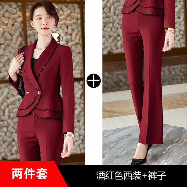 러플 헤드 버건디 긴팔 세트 재킷 여성 봄과 가을 슬림 핏 우아한 프로페셔널 세트 블랙 세트 원피스스토어 가기
