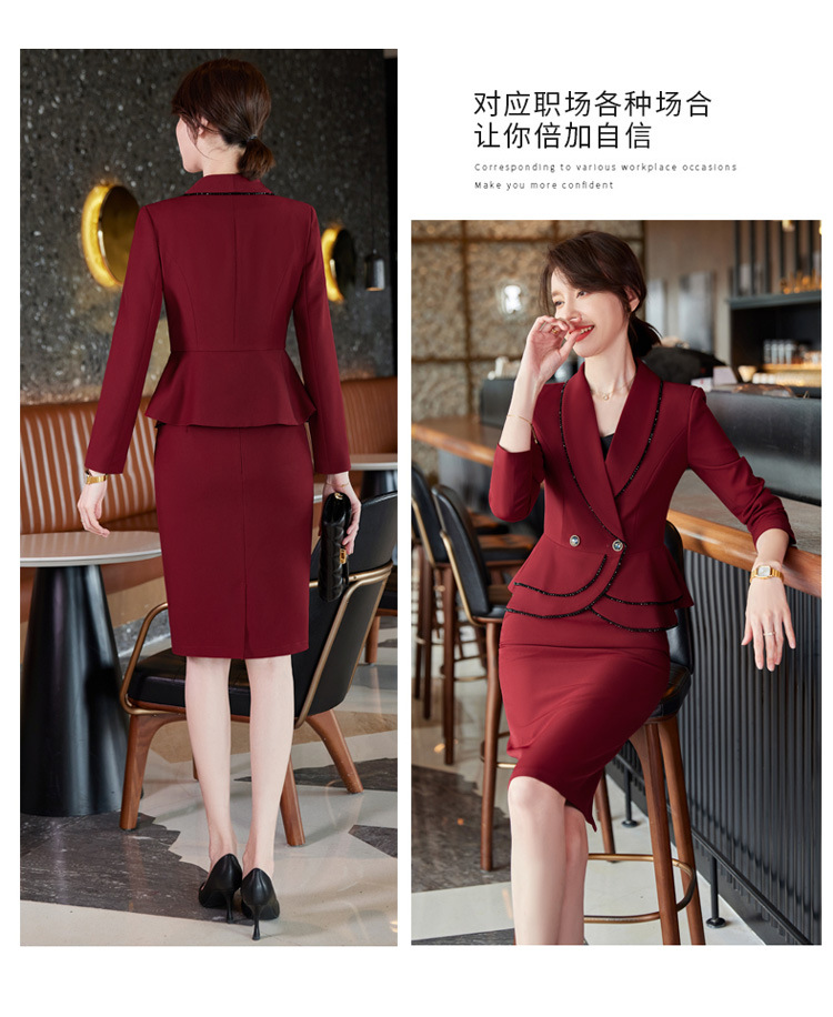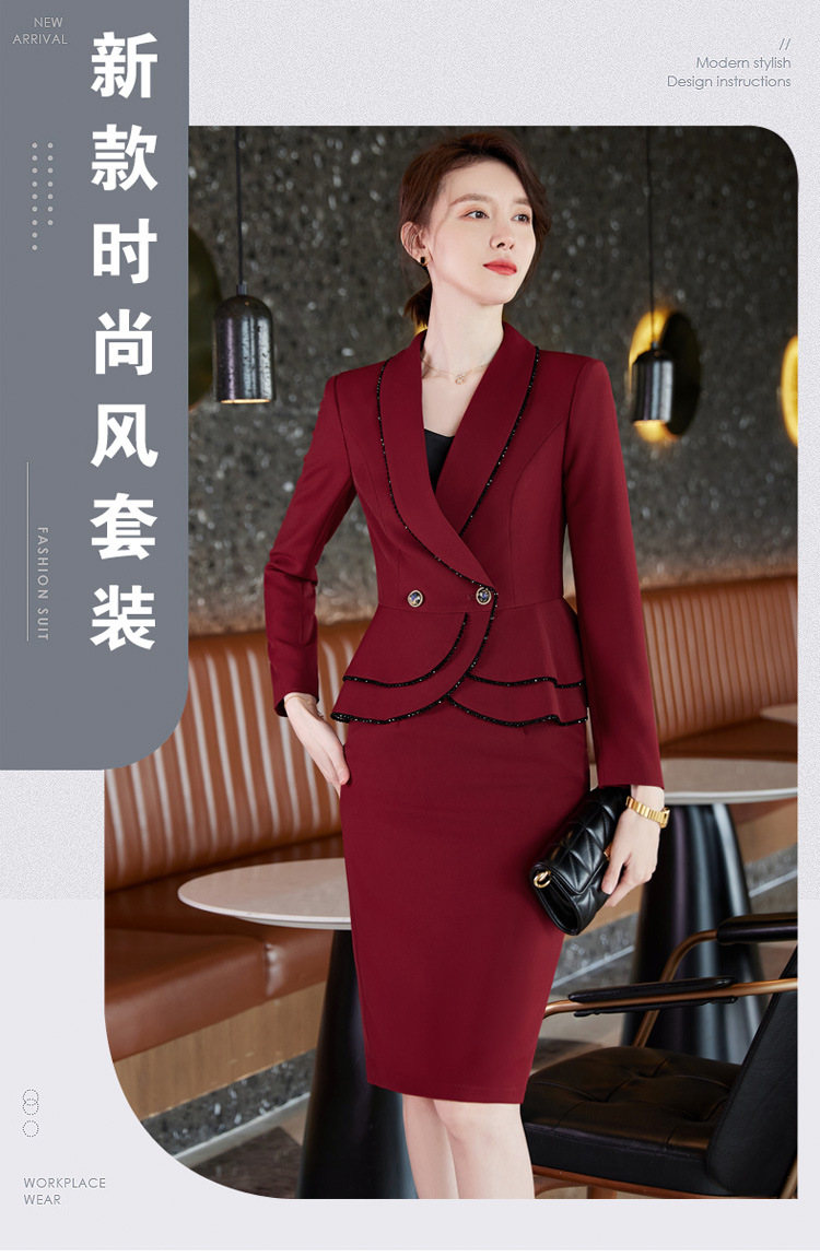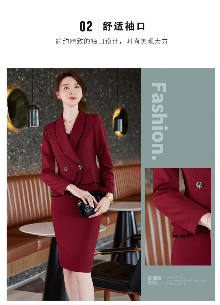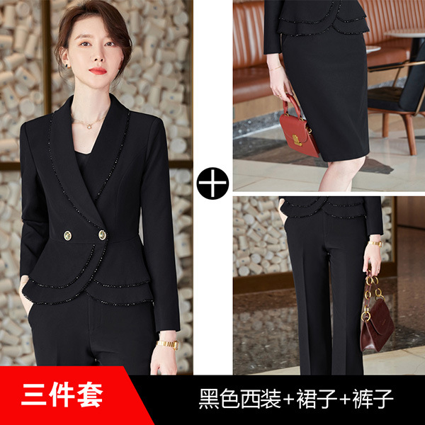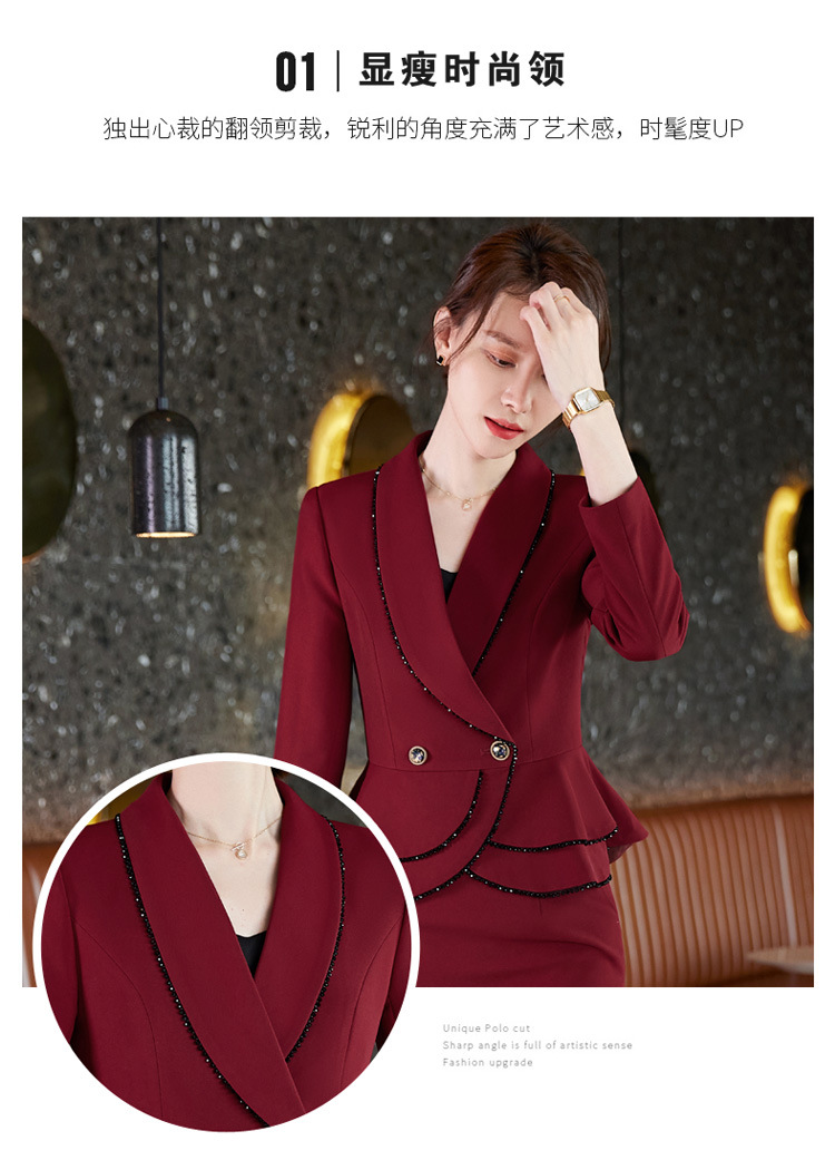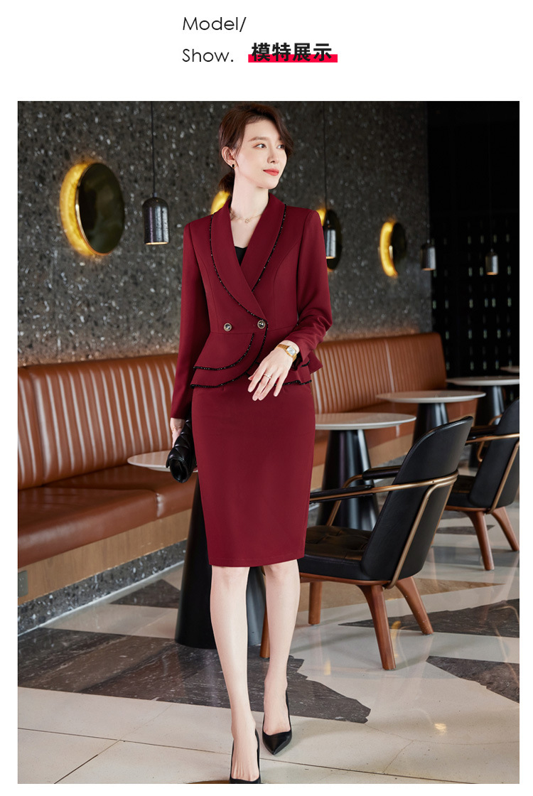 러플 헤드 버건디 긴팔 세트 재킷 여성 봄과 가을 슬림 핏 우아한 프로페셔널 세트 블랙 세트 원피스스토어 가기