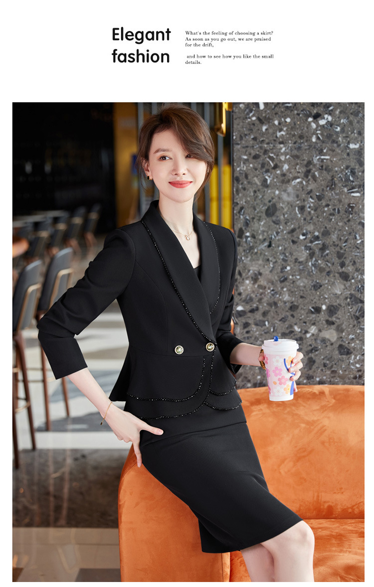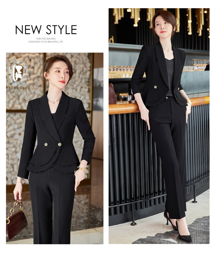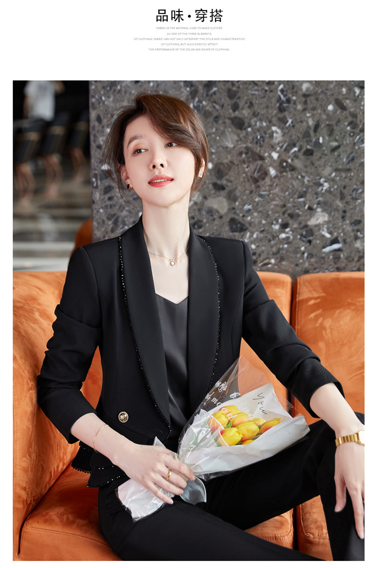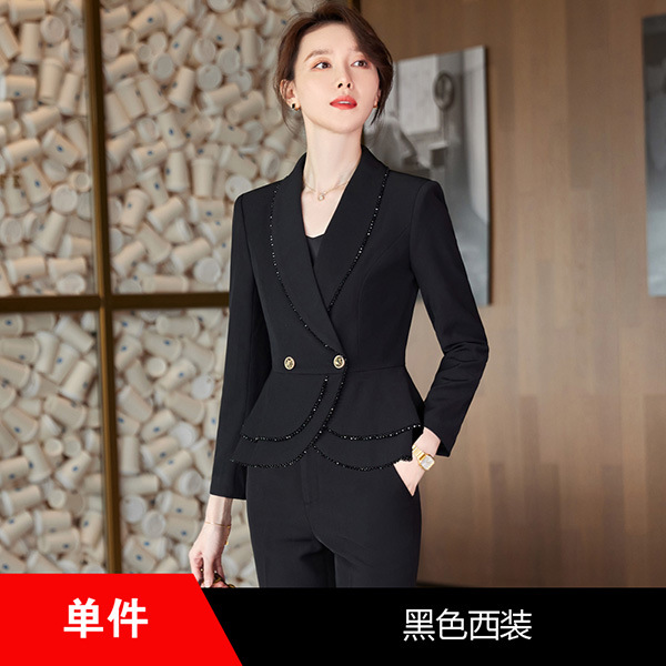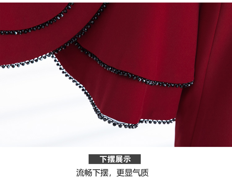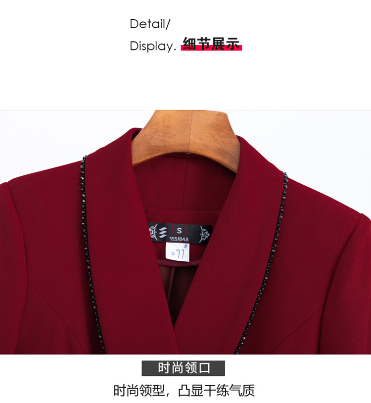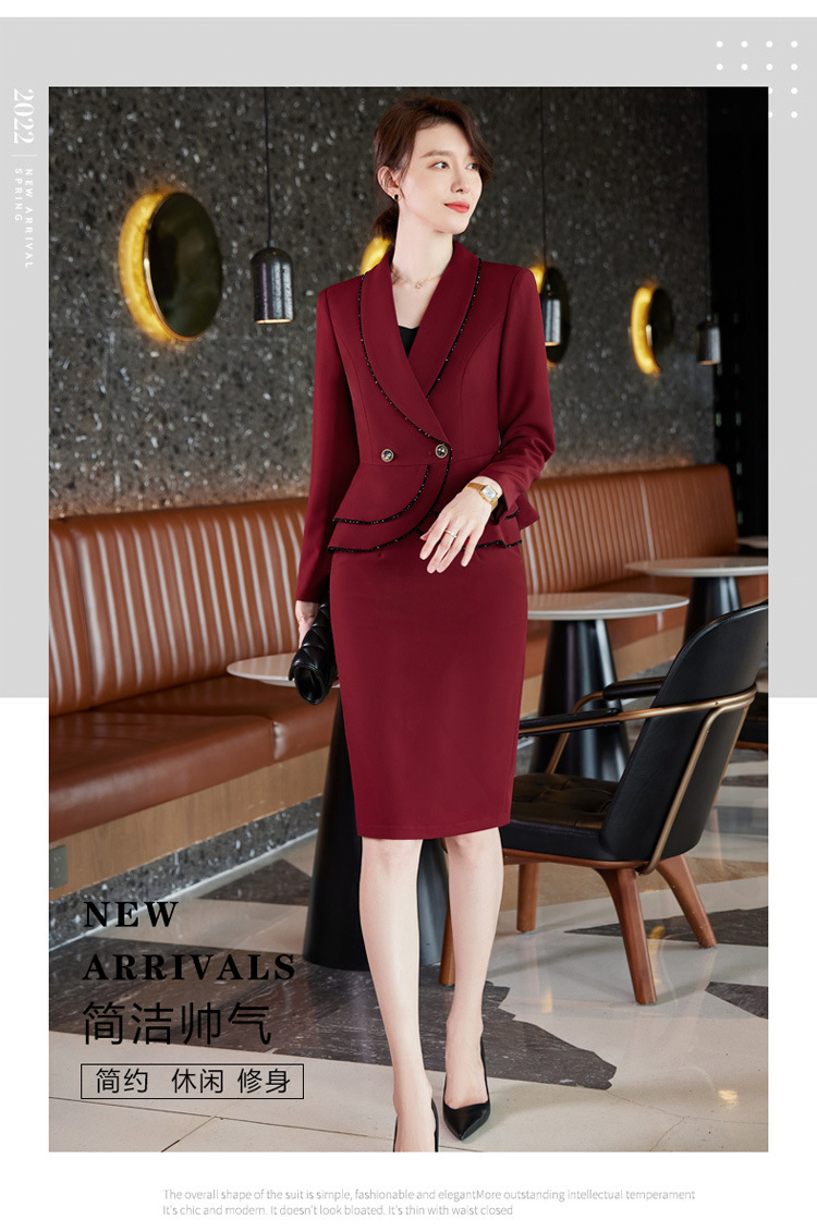 러플 헤드 버건디 긴팔 세트 재킷 여성 봄과 가을 슬림 핏 우아한 프로페셔널 세트 블랙 세트 원피스스토어 가기