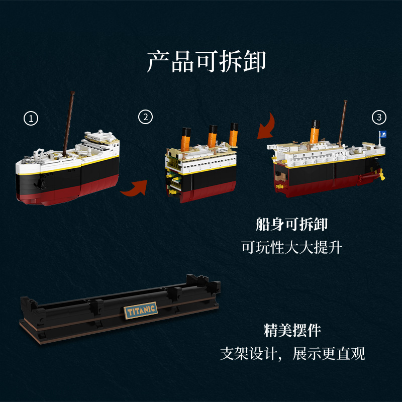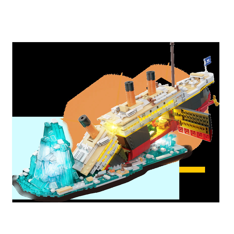국경 간 폭발성 필름 시리즈 타이타닉 2 변화 충돌 빙산 조립 건물 블록 장식품 장난감 거대한 배