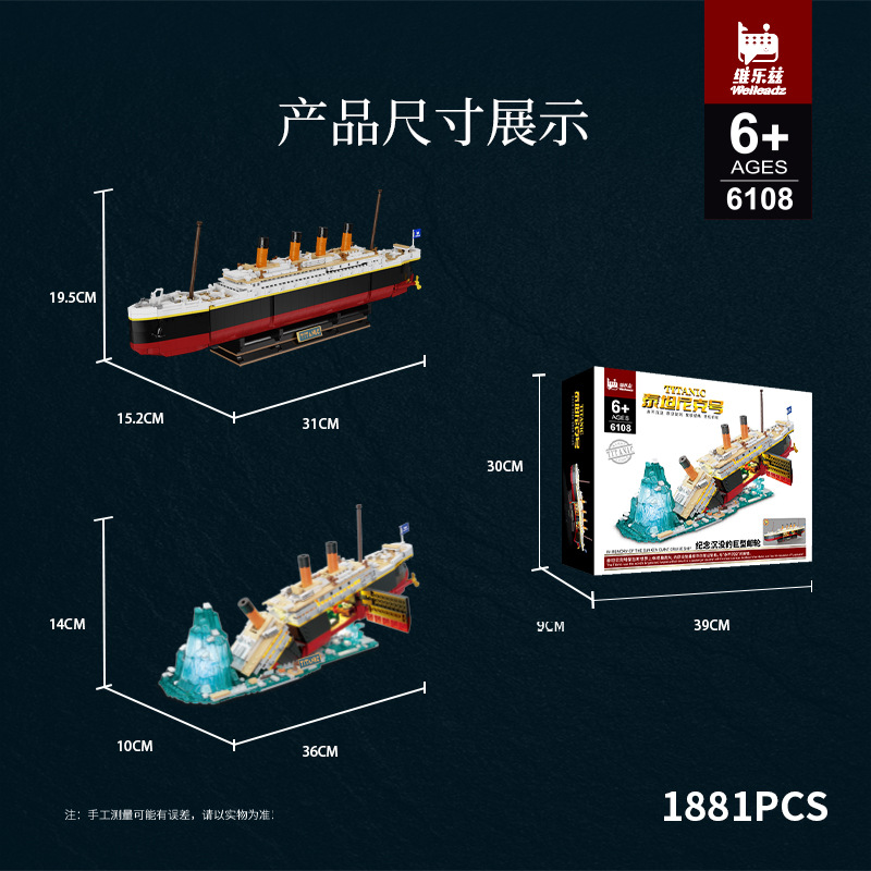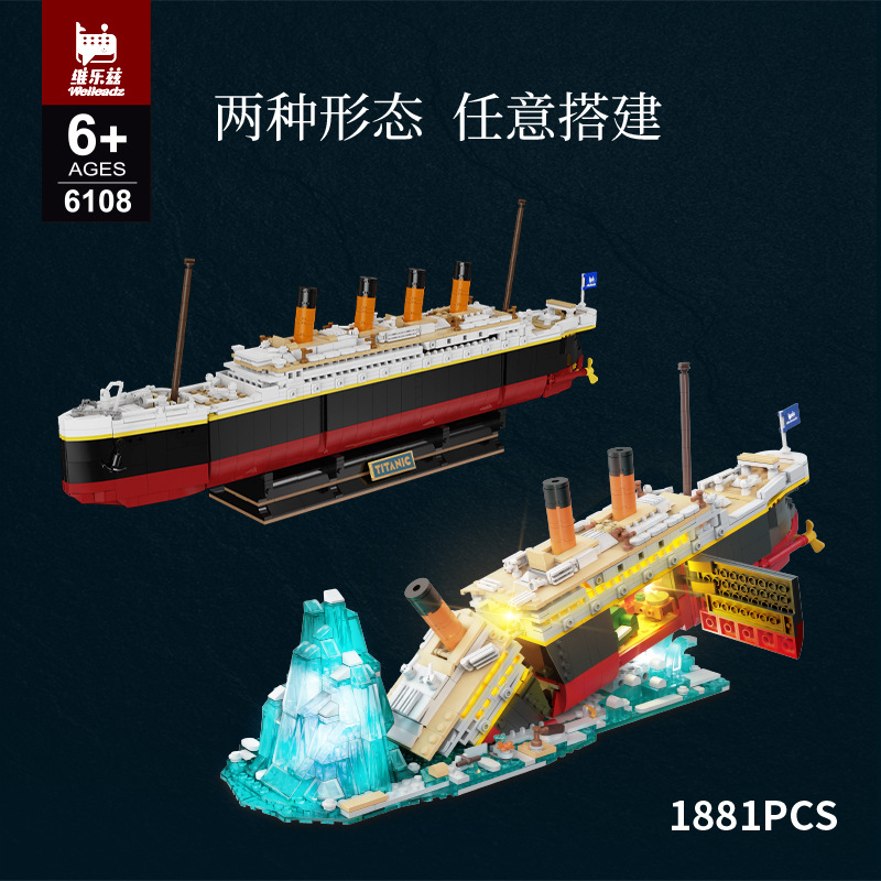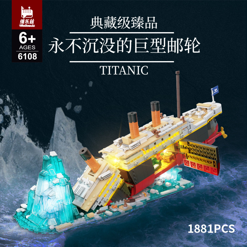 국경 간 폭발성 필름 시리즈 타이타닉 2 변화 충돌 빙산 조립 건물 블록 장식품 장난감 거대한 배스토어 가기
