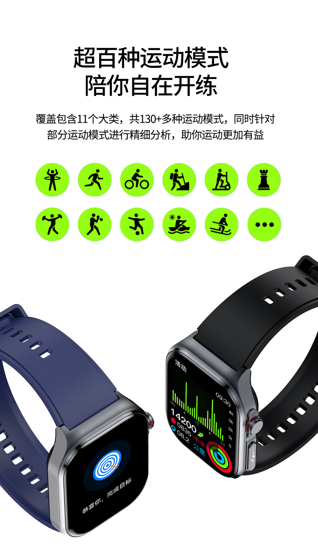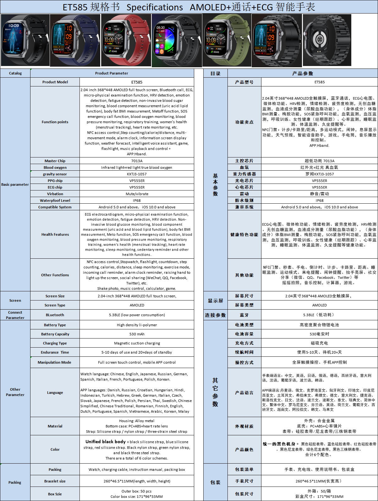 새로운 ET585 스마트 시계 ECG 블루투스 통화 체지방 혈압 혈당 심박수 혈압 건강한 멀티 운동