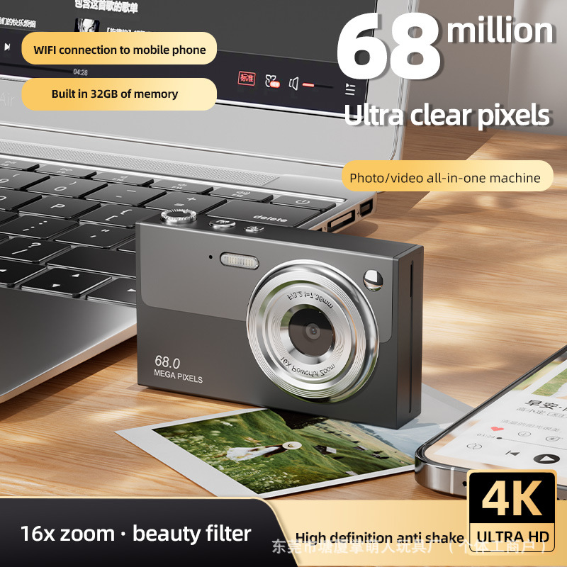 고화질 흔들림 방지 6800W 실제 4K 고화질 디지털 카메라 학생 카메라 16 배 줌 카메라 비디오 올인원 기계스토어 가기