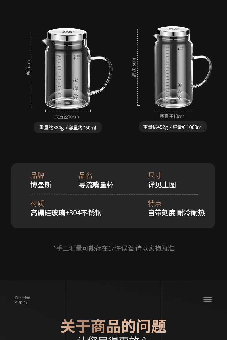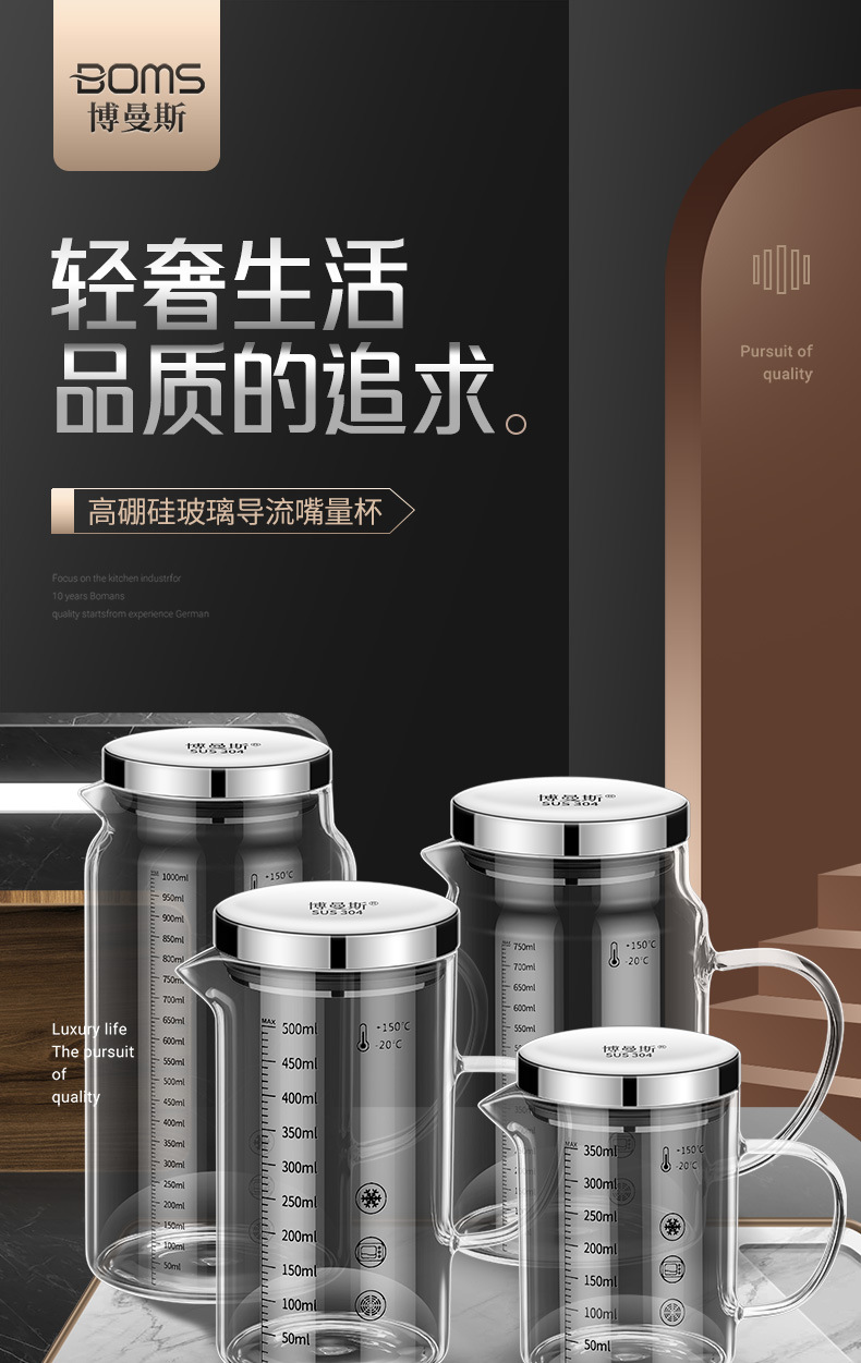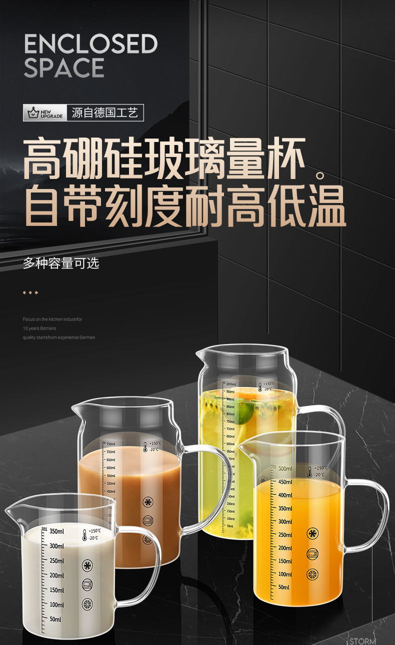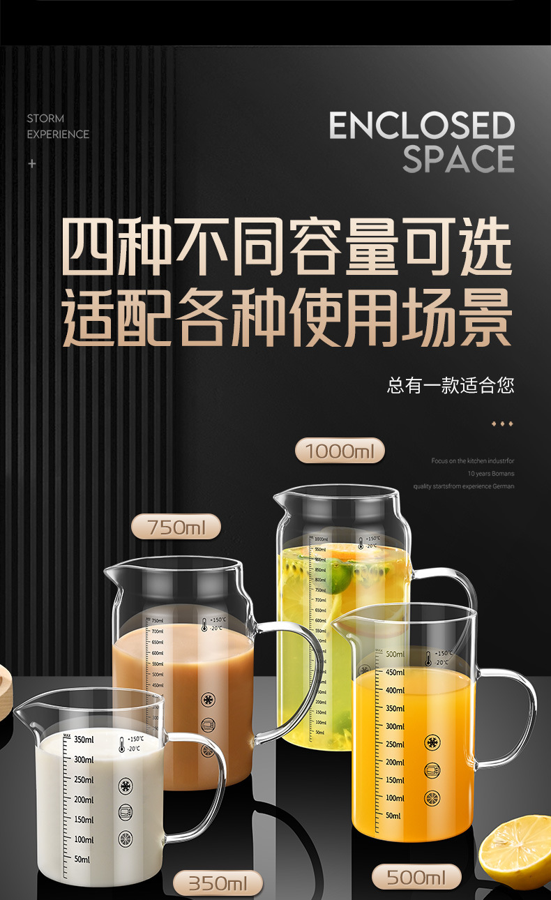• 높은 붕규산 유리 스케일 컵: 750ml