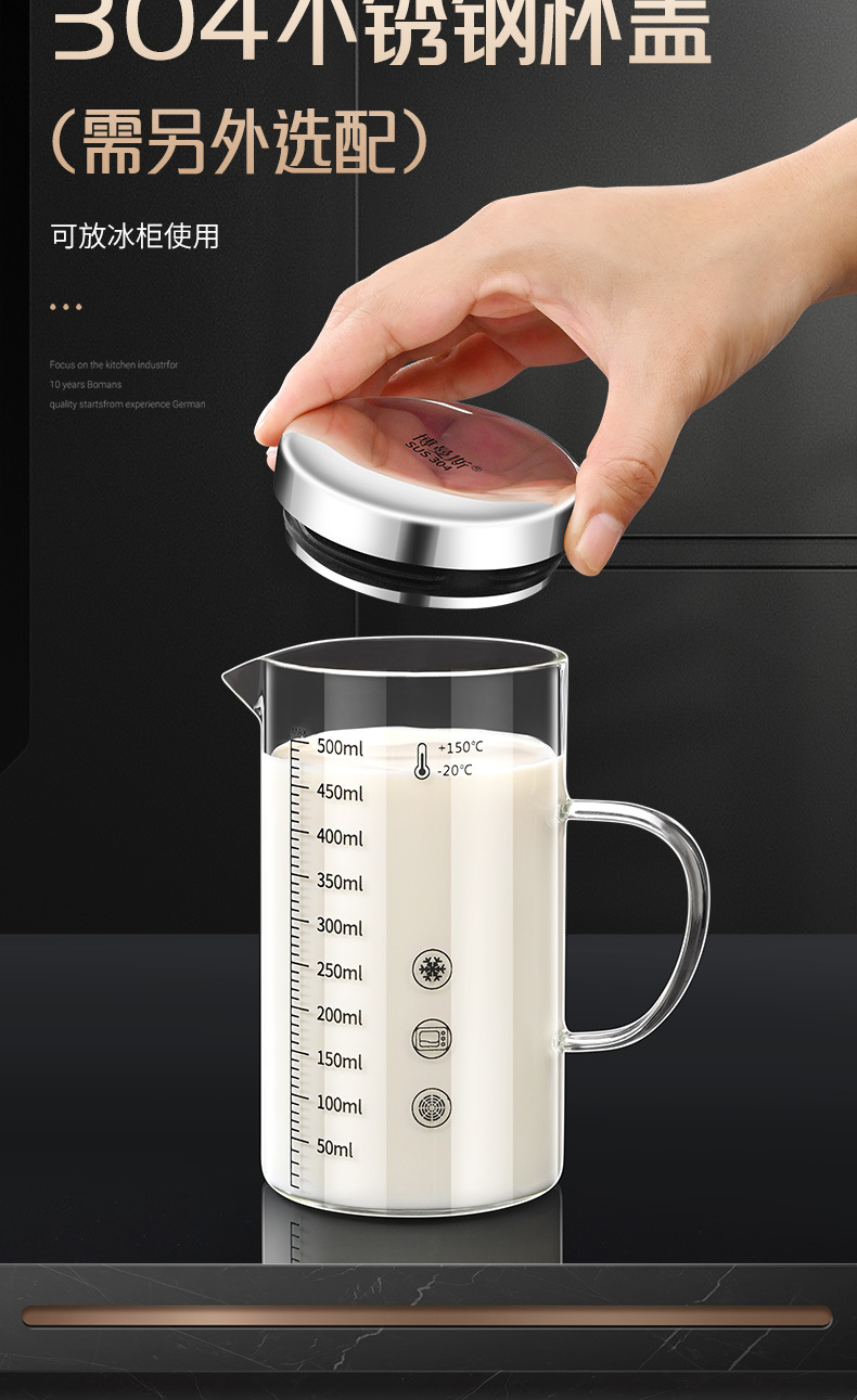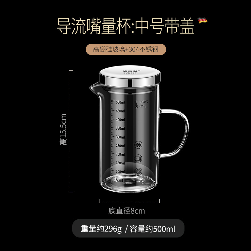 • 높은 붕규산염 유리 스케일 컵: 500ml 304 뚜껑