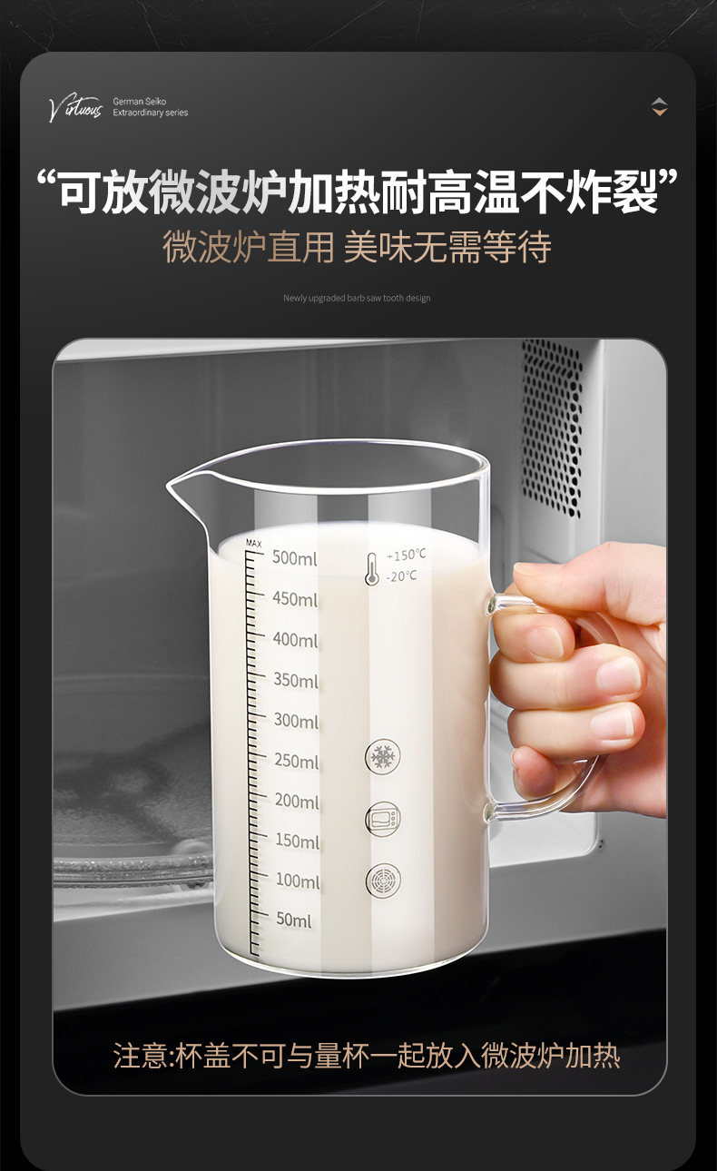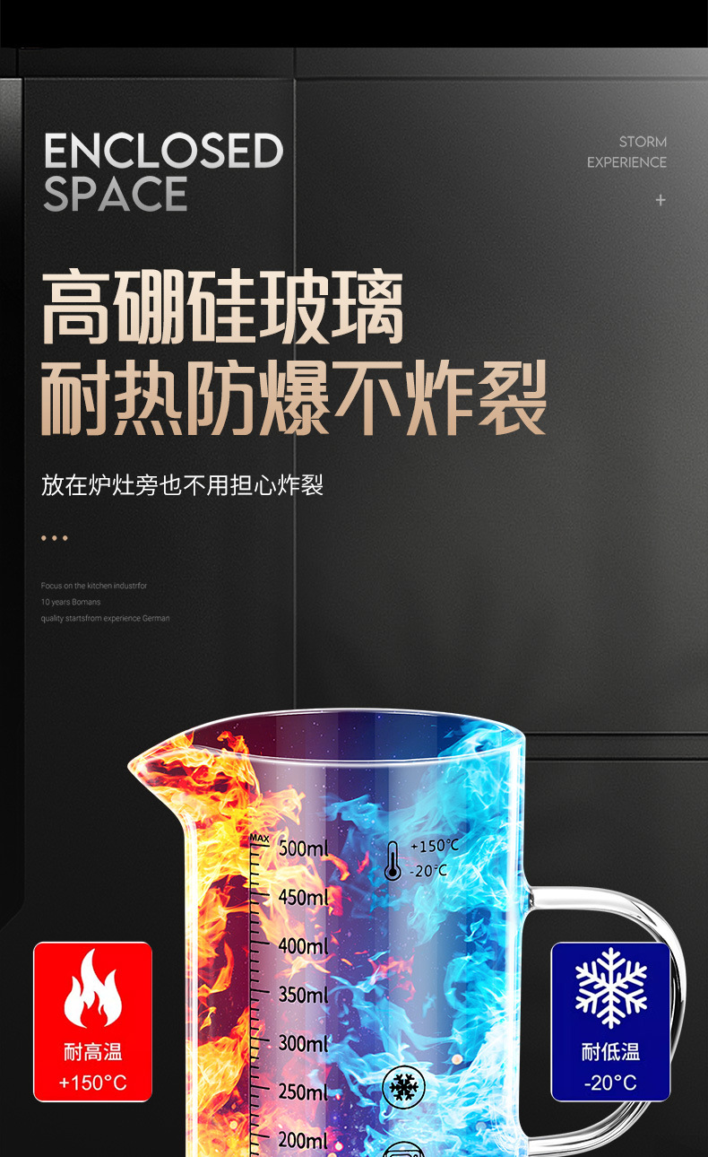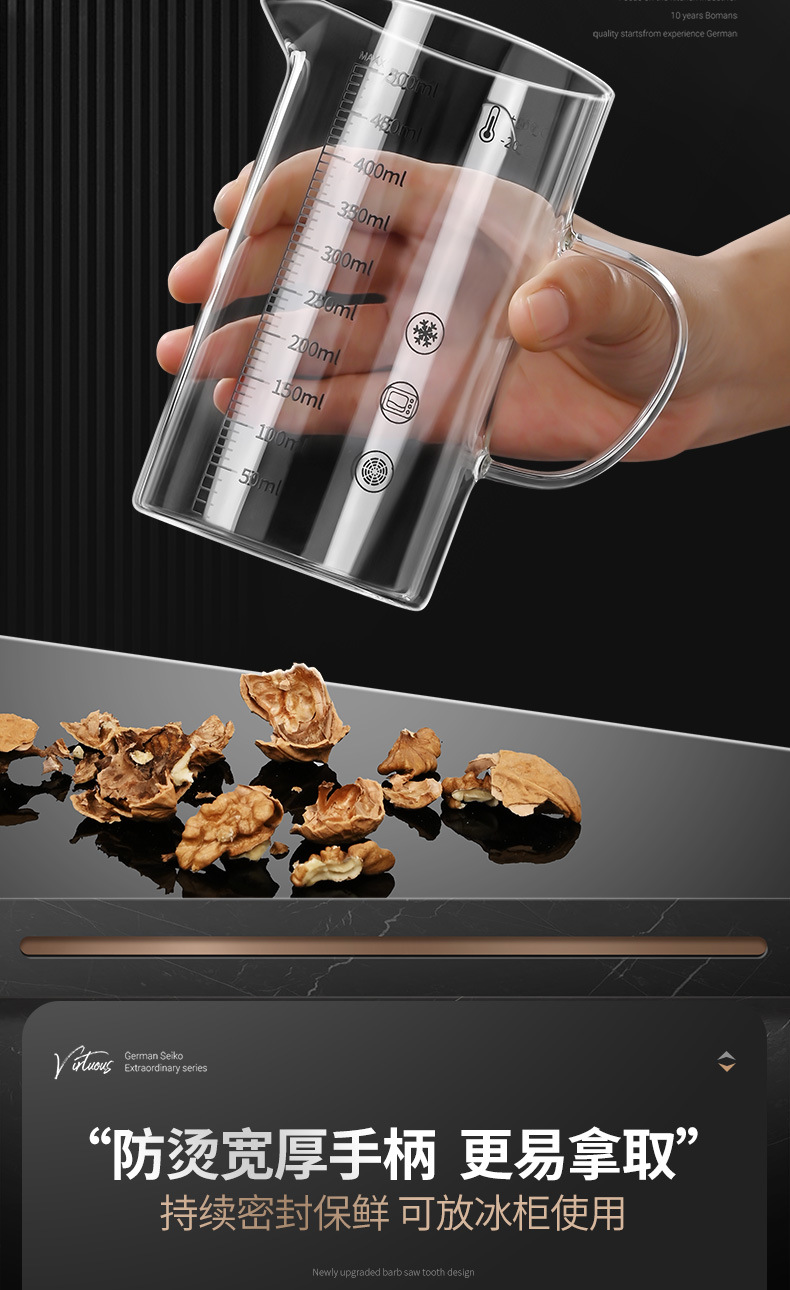 • 높은 붕규산 유리 스케일 컵: 500ml