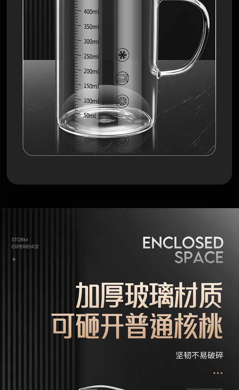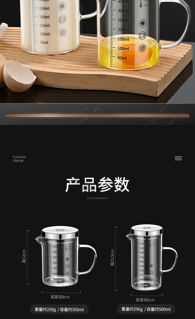 • 높은 붕규산 유리 스케일 컵: 350ml