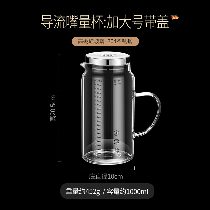 • 높은 붕규산염 유리 스케일 컵: 1000ml 304 뚜껑