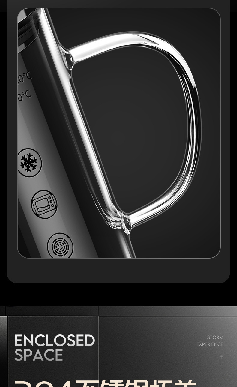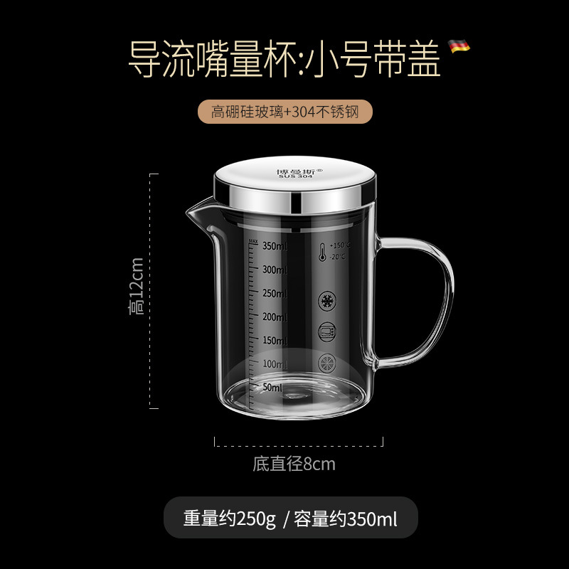• 높은 붕규산염 유리 스케일 컵: 350ml 304 뚜껑