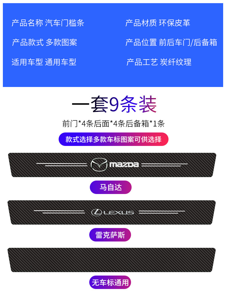 자동차 도어 스커프 스트립, 도어 엣지 풋 프로텍터, 카본 파이버 가죽 충돌 방지 테이프, 스크래치 방지 스티커, 장식 스티커 공장