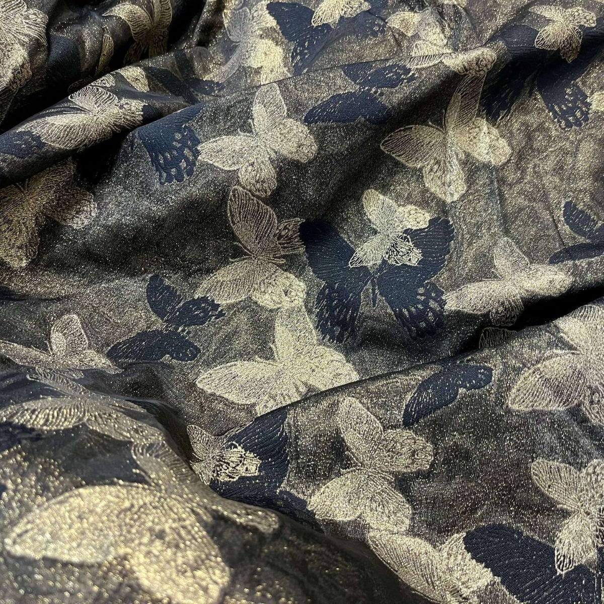 검정색 바탕에 금사가 반짝이는 나비 자카드 원단 여성 드레스 가방 원단 브로케이드 대형 자카드