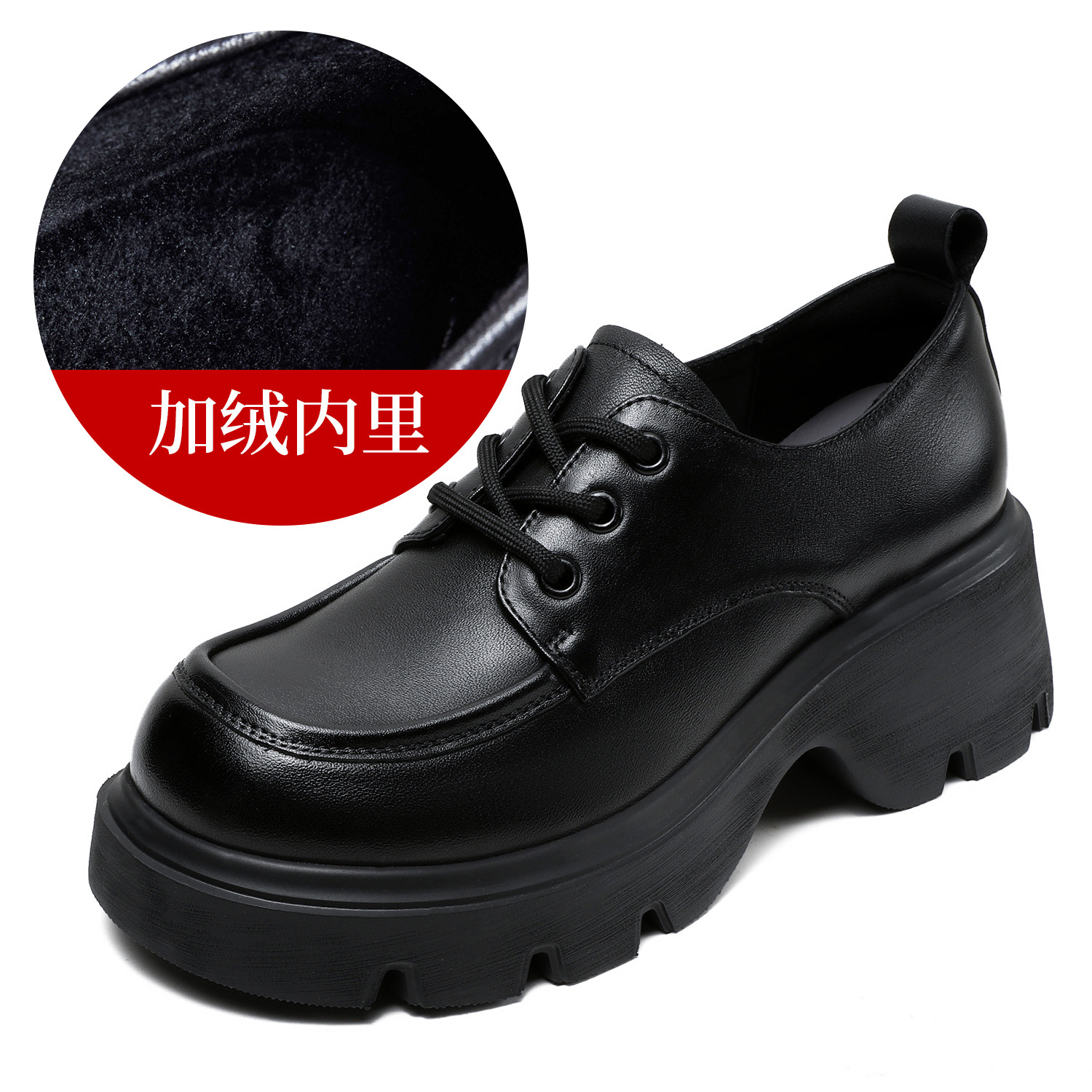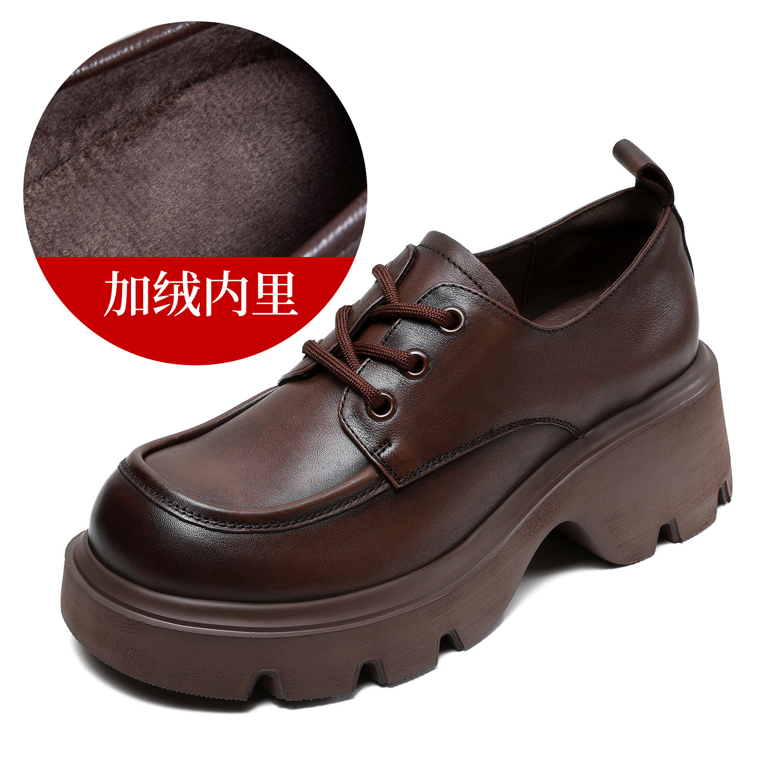 정품 가죽 다크 브라운 빈티지 가죽 신발 여성의 2024 새로운 봄과 가을 두꺼운 유일한 영국 스타일 레이스 업 Lefu 싱글 레이어 신발스토어 가기