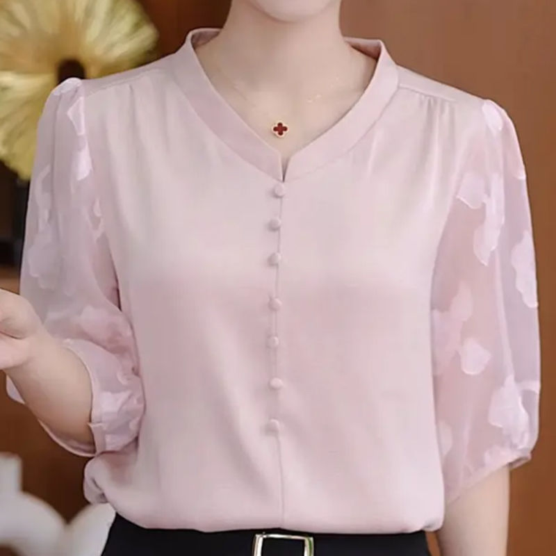 핫 하이 엔드 센스 셔츠 여성의 2024 여름 새로운 스타일 우아한 빛 럭셔리 스타일 어머니의 고기 커버 슬림 셔츠 탑