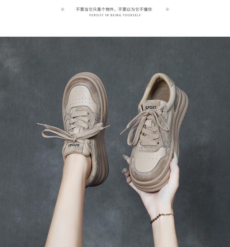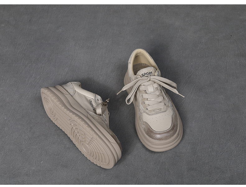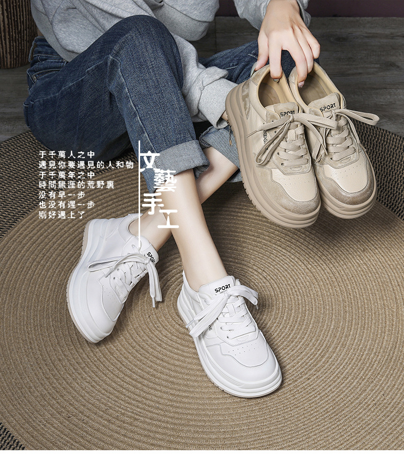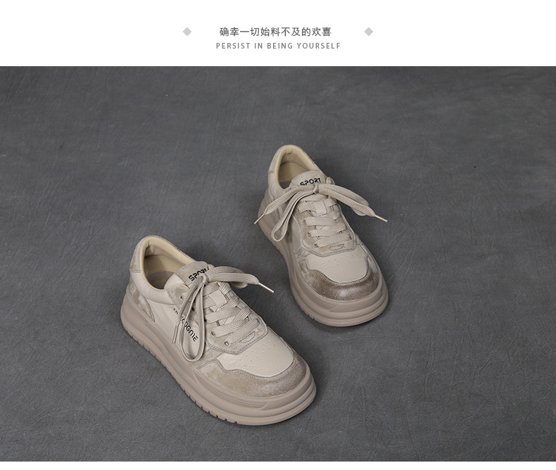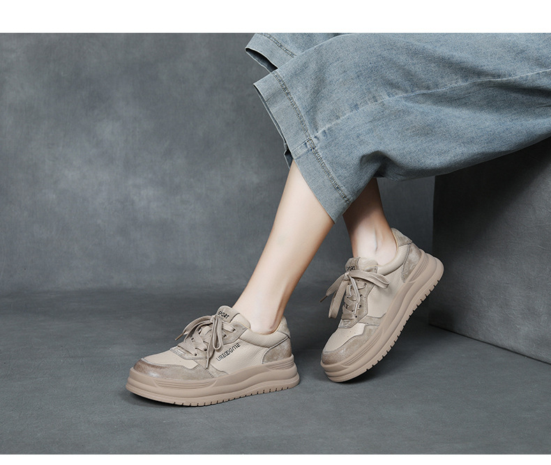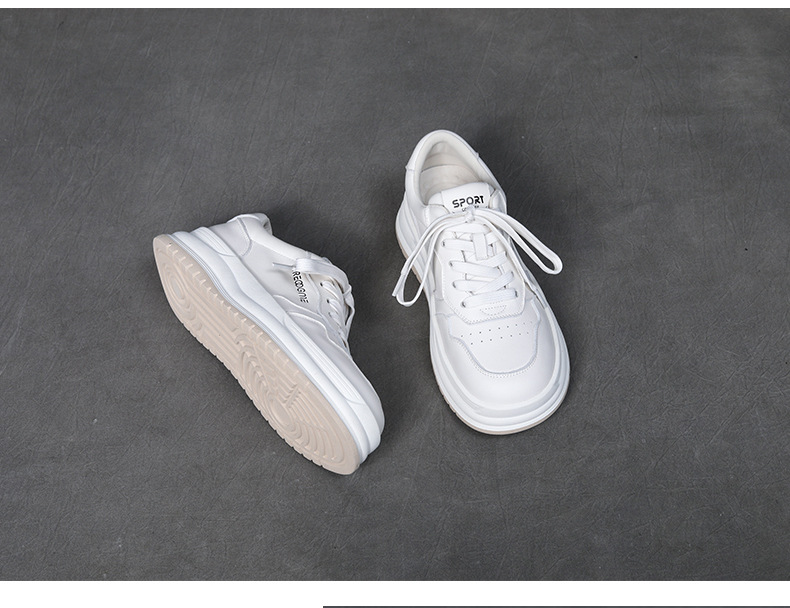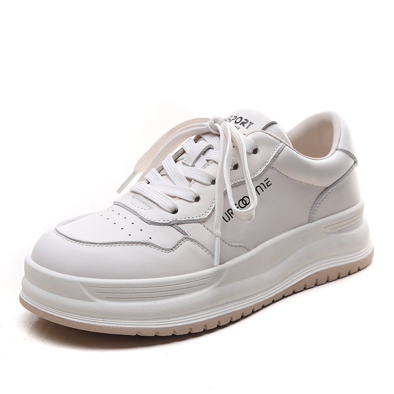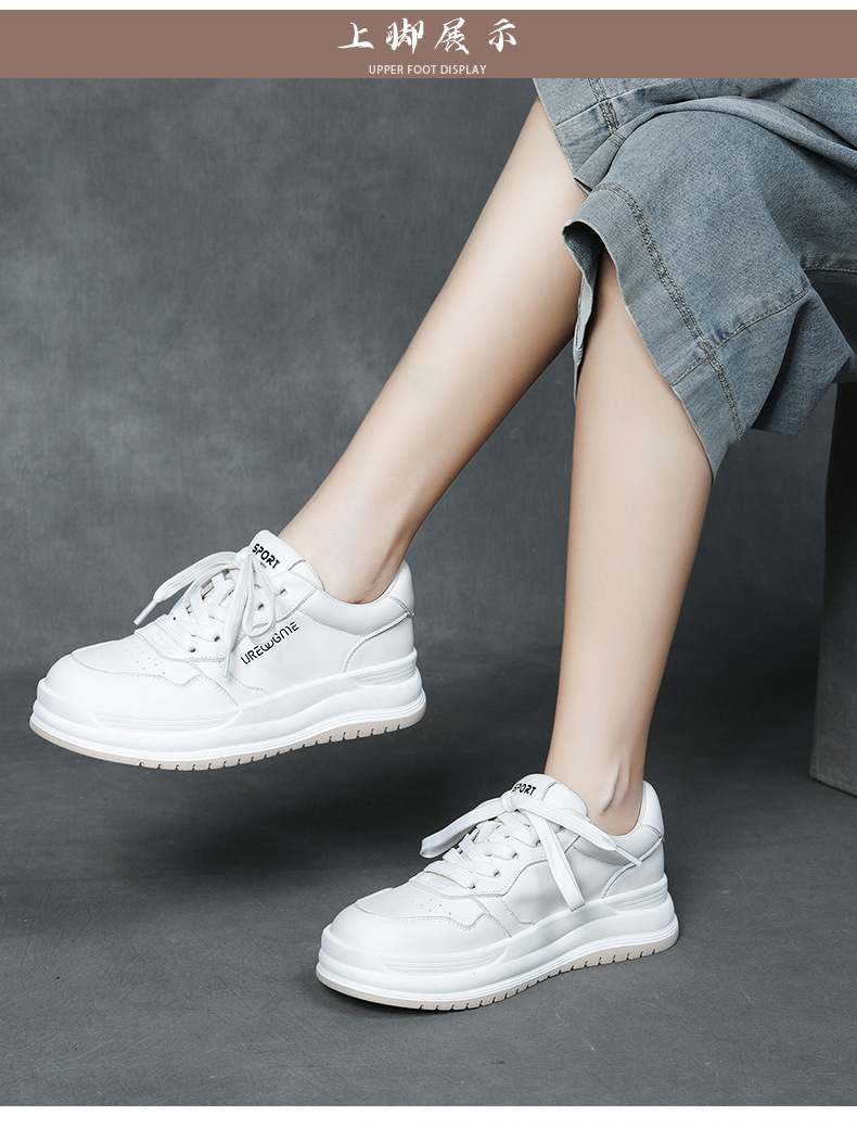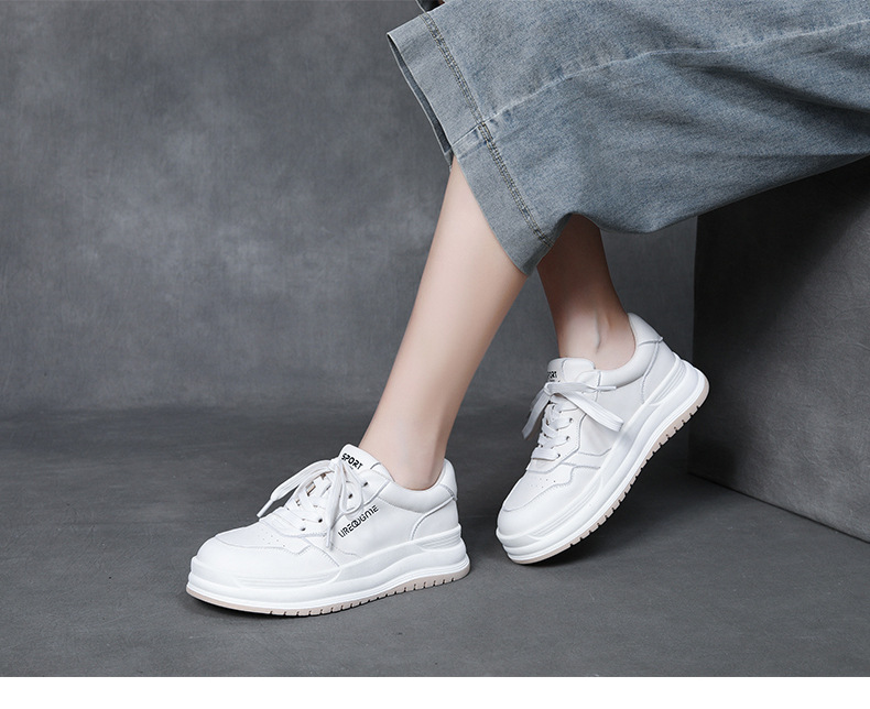 2024 가을 신상 1층 소가죽 패셔너블하고 캐주얼하며 활용도가 높은 화이트 슈즈, 여성용 두꺼운 밑창 레이스업 스니커즈스토어 가기