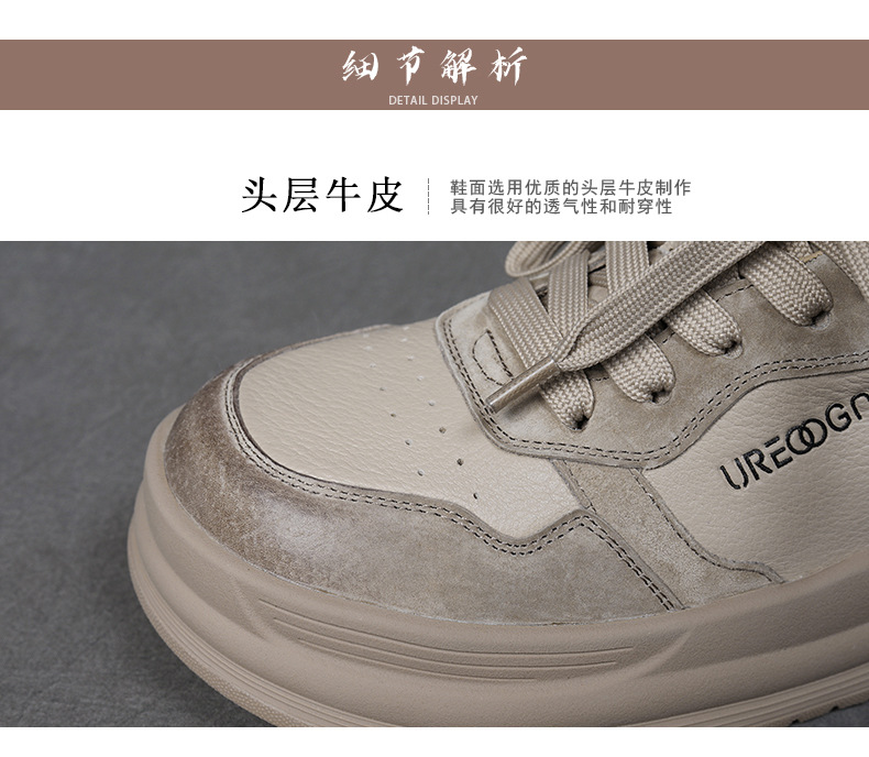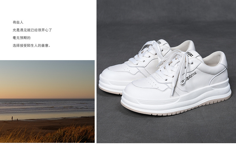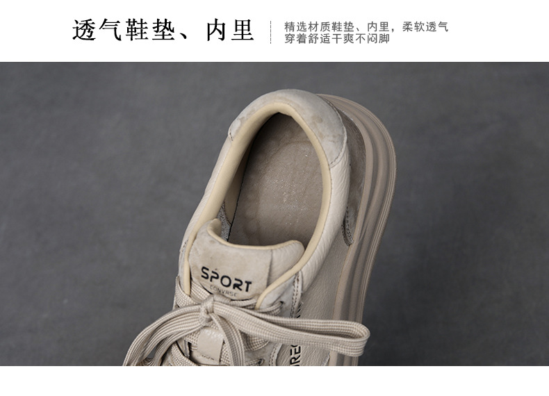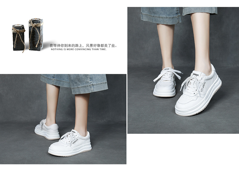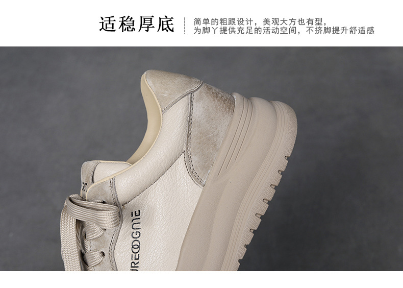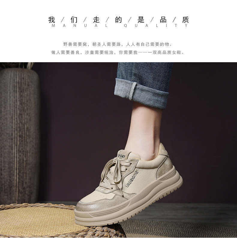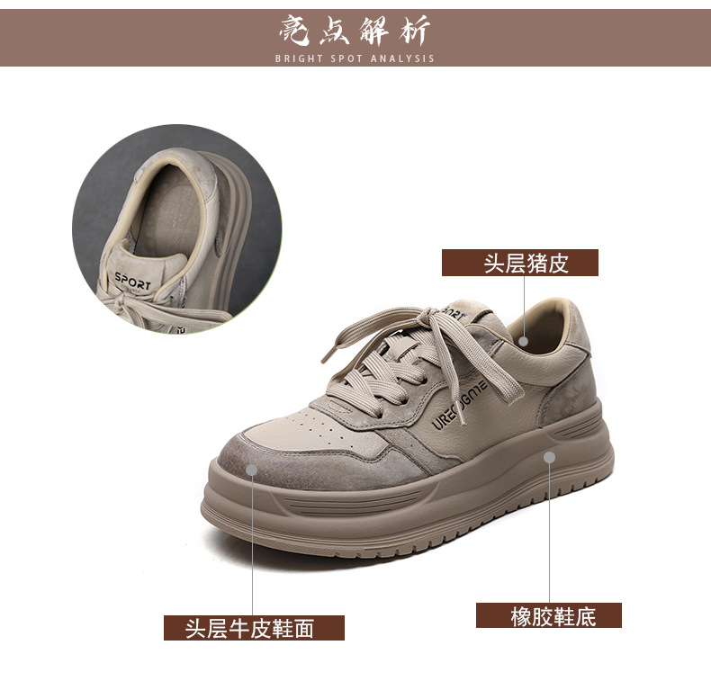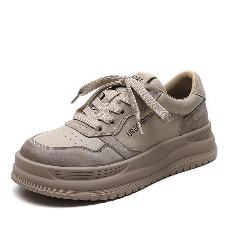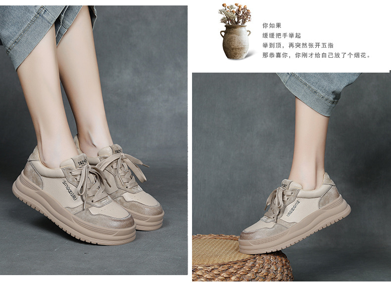 2024 가을 신상 1층 소가죽 패셔너블하고 캐주얼하며 활용도가 높은 화이트 슈즈, 여성용 두꺼운 밑창 레이스업 스니커즈스토어 가기