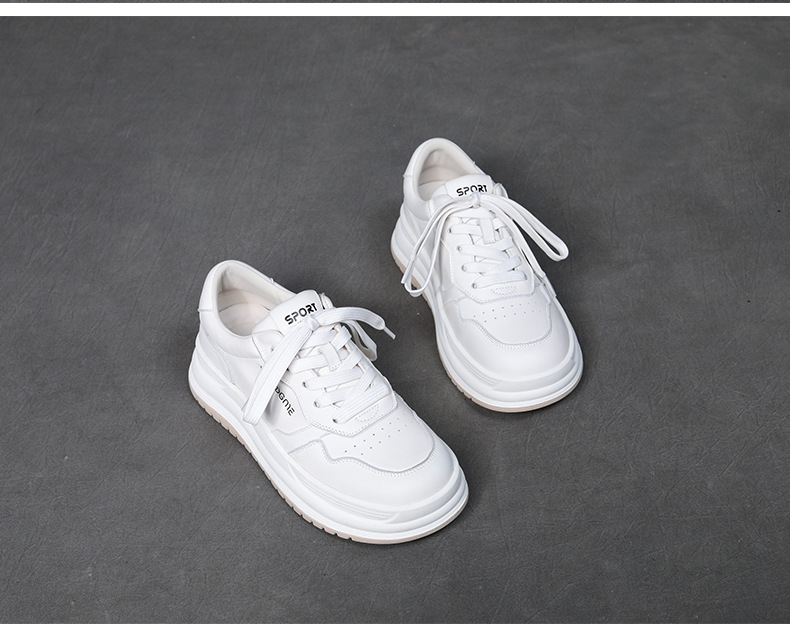 2024 가을 신상 1층 소가죽 패셔너블하고 캐주얼하며 활용도가 높은 화이트 슈즈, 여성용 두꺼운 밑창 레이스업 스니커즈