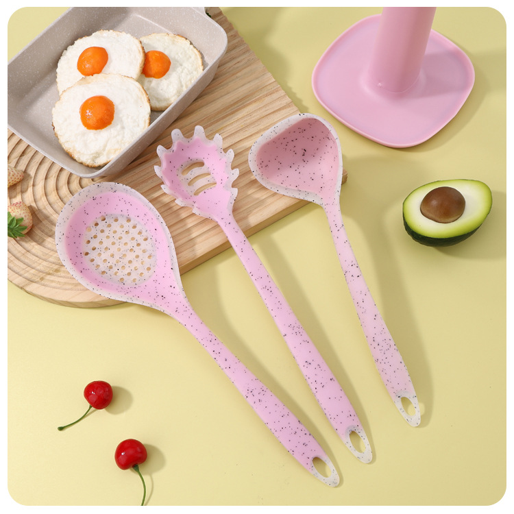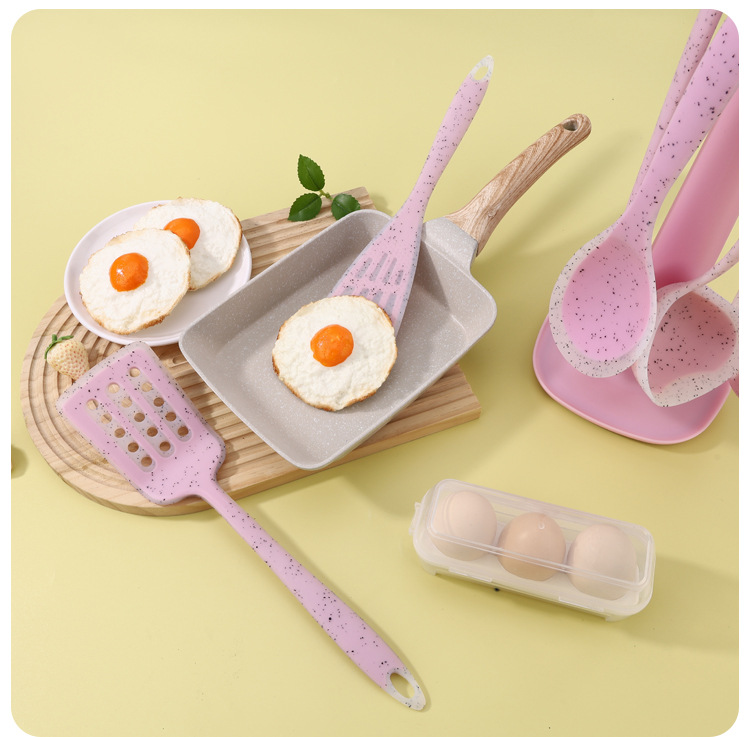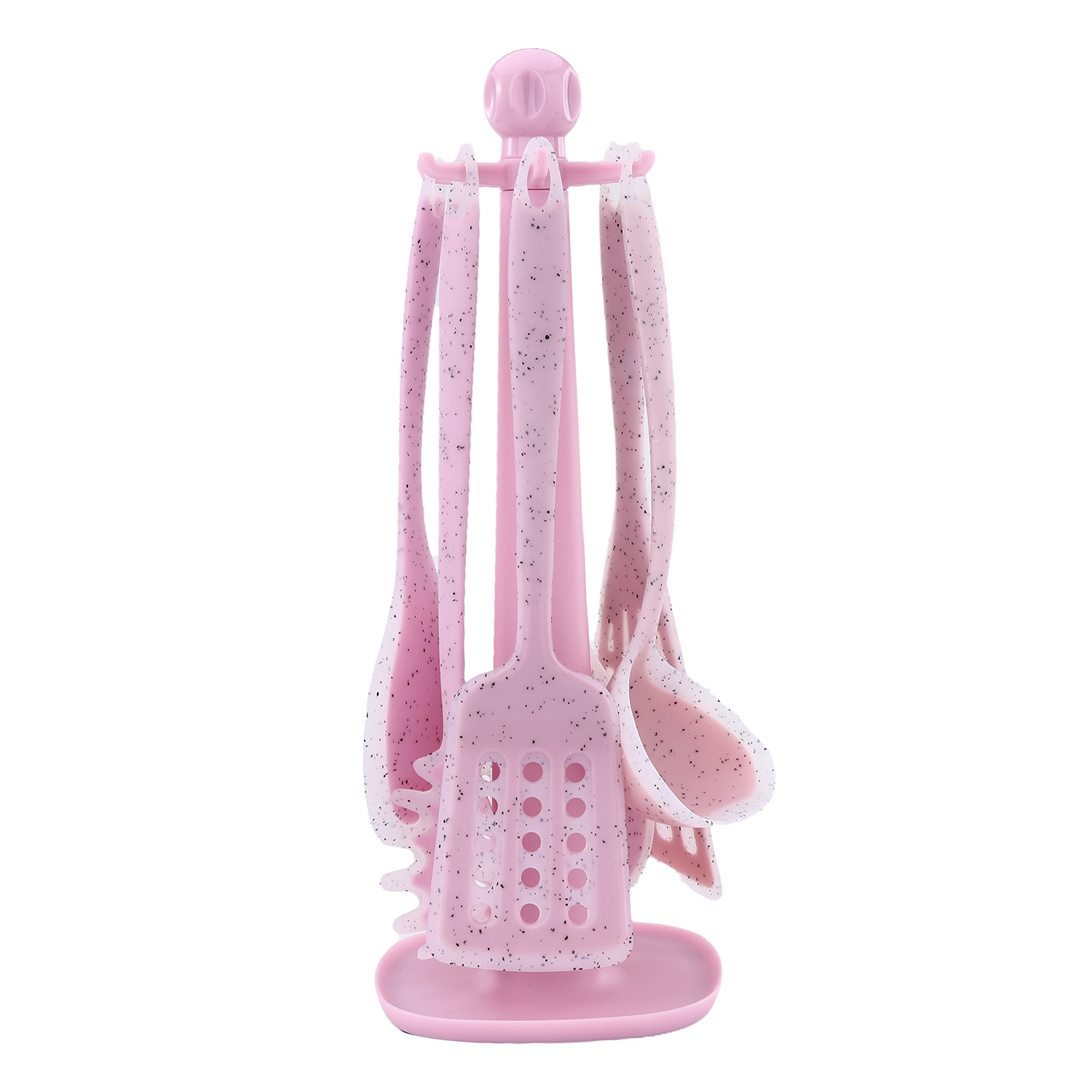 다채로운 실리콘 주방 용품 7 피스 세트 투명 컬러 주걱 요리 세트 고온 내성 비 스틱 스푼 주걱 주방 도구