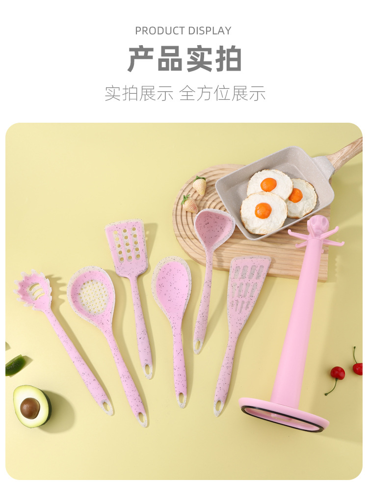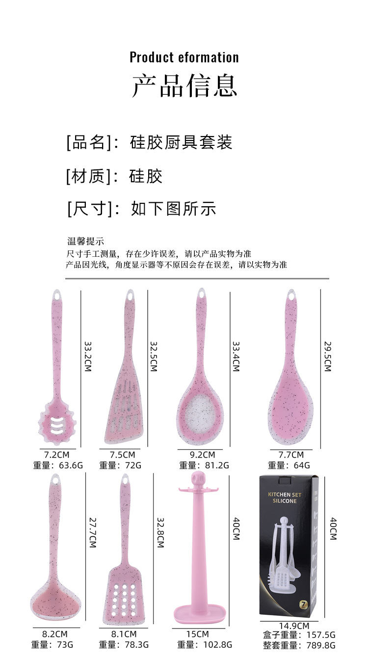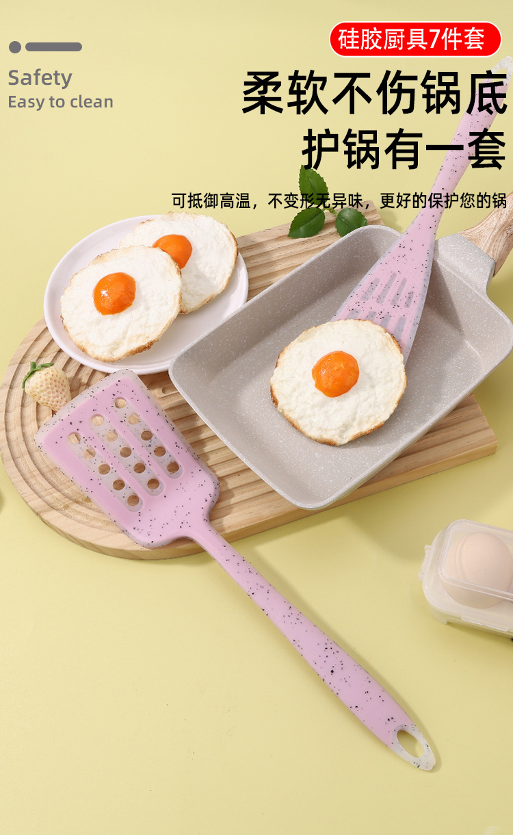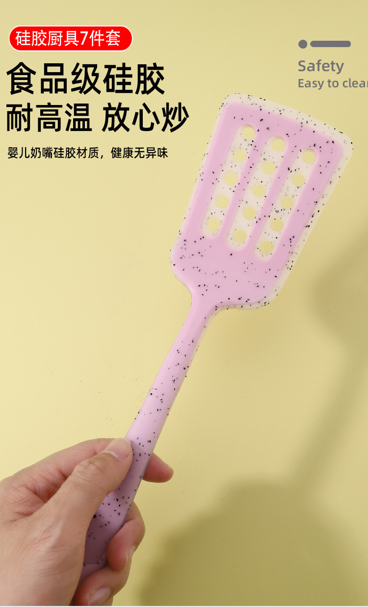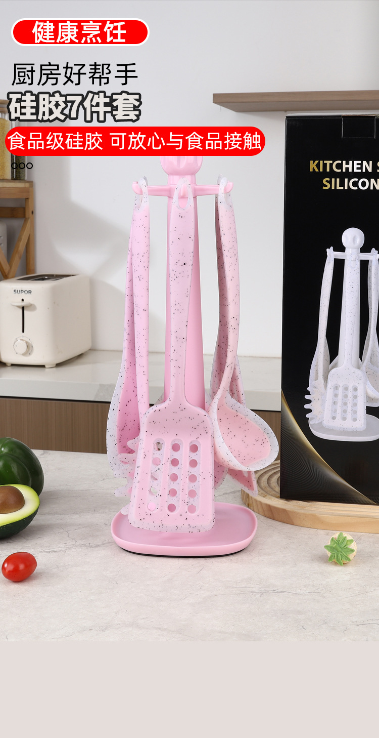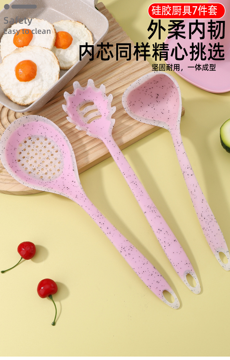 다채로운 실리콘 주방 용품 7 피스 세트 투명 컬러 주걱 요리 세트 고온 내성 비 스틱 스푼 주걱 주방 도구스토어 가기