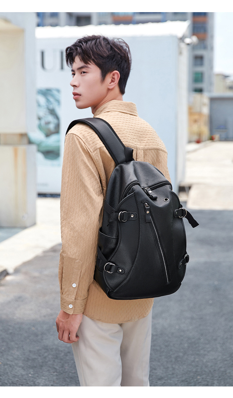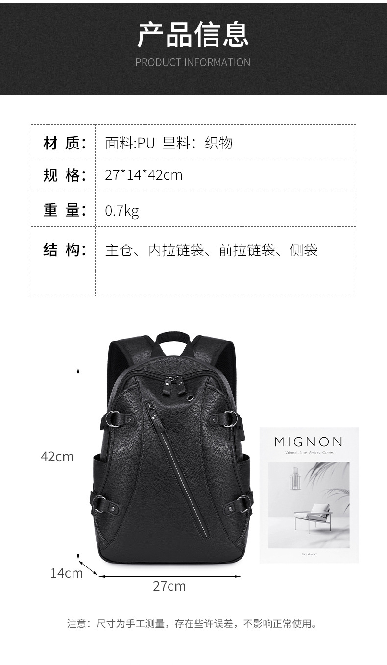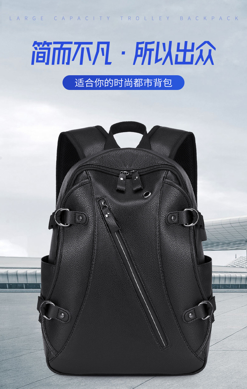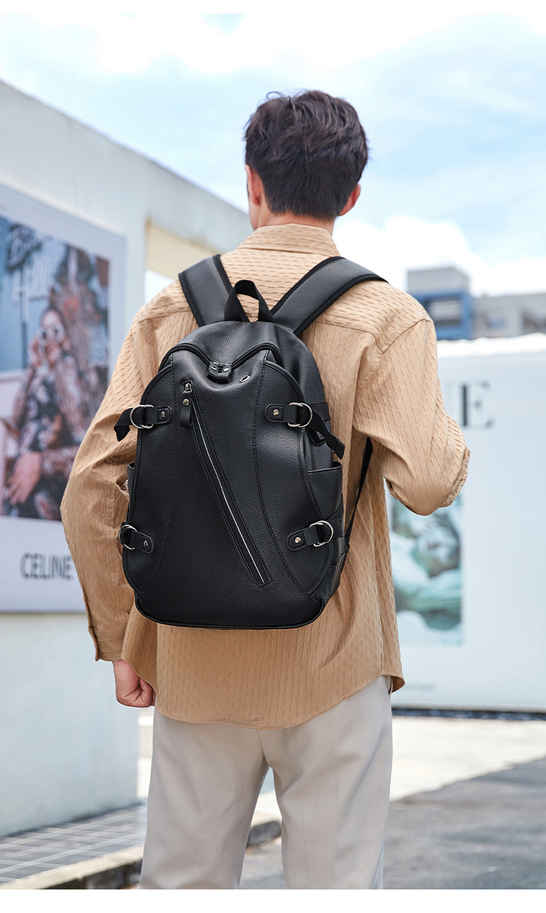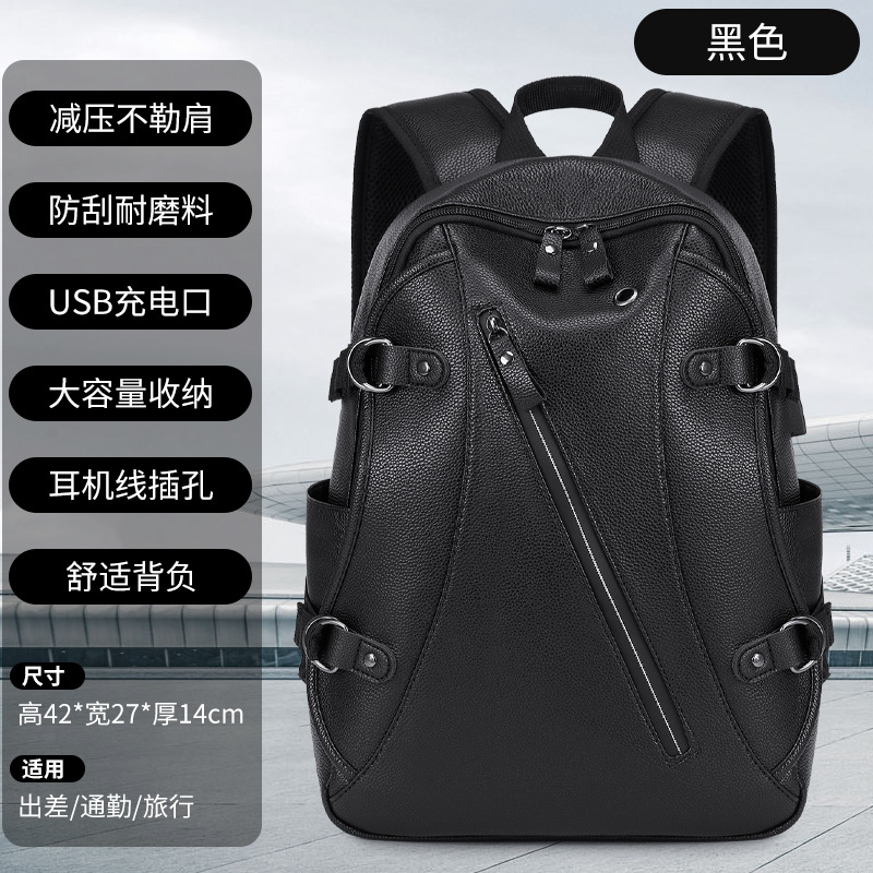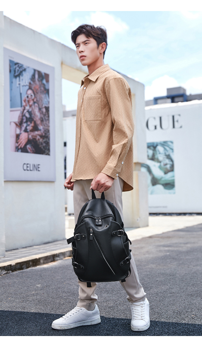 배낭 남성 배낭 남성 패션 트렌드 청소년 간단한 레저 여행 가죽 학생 컴퓨터 Schoolbag 트렌디스토어 가기
