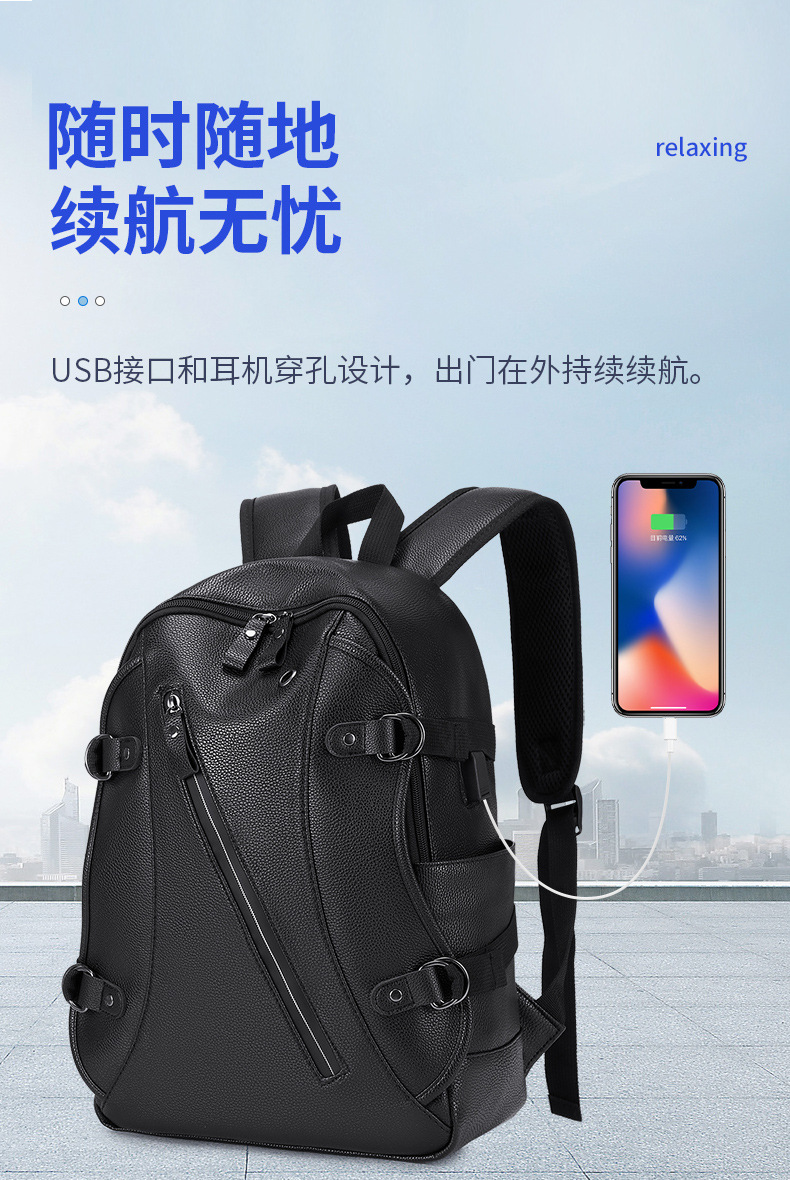 배낭 남성 배낭 남성 패션 트렌드 청소년 간단한 레저 여행 가죽 학생 컴퓨터 Schoolbag 트렌디