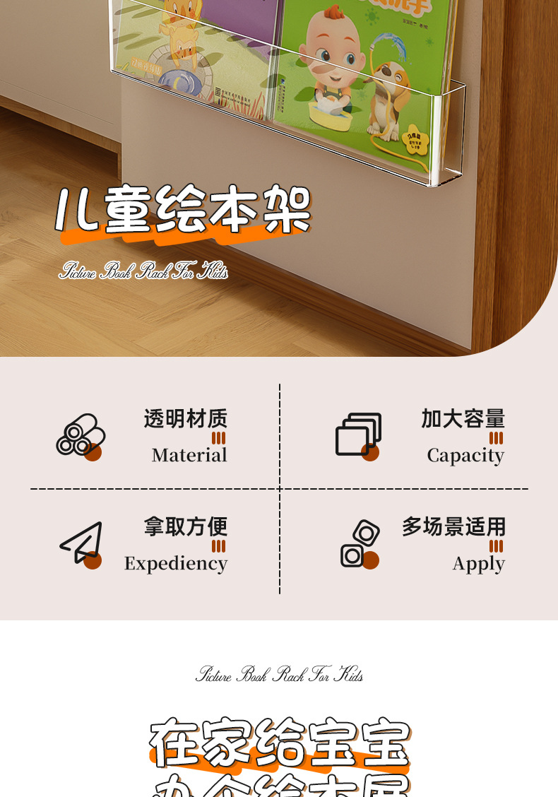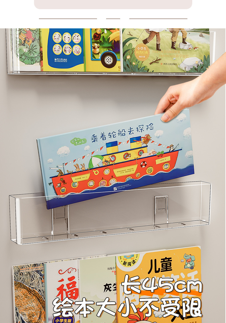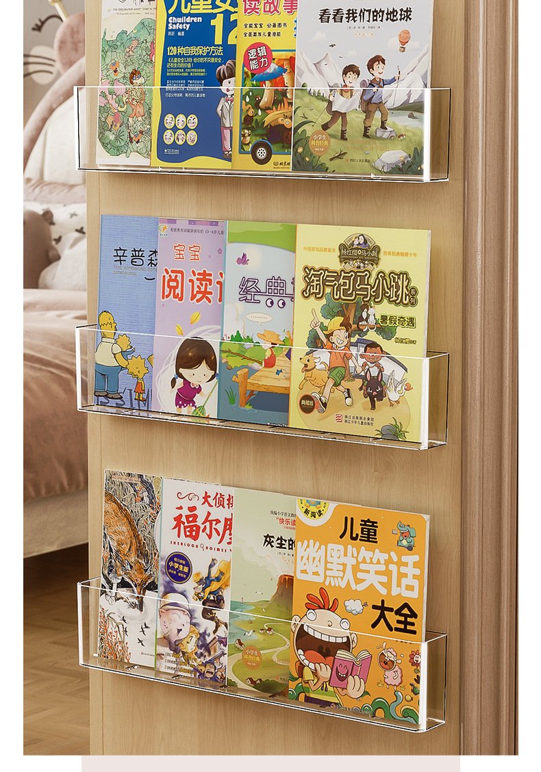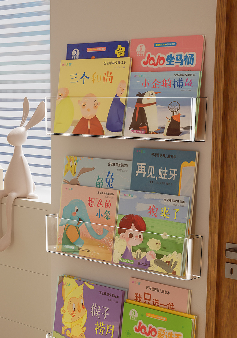 벽 책꽂이 어린이 벽 펀치가없는 아크릴 벽걸이 통합 벽걸이 형 그림책 보관 랙 단순