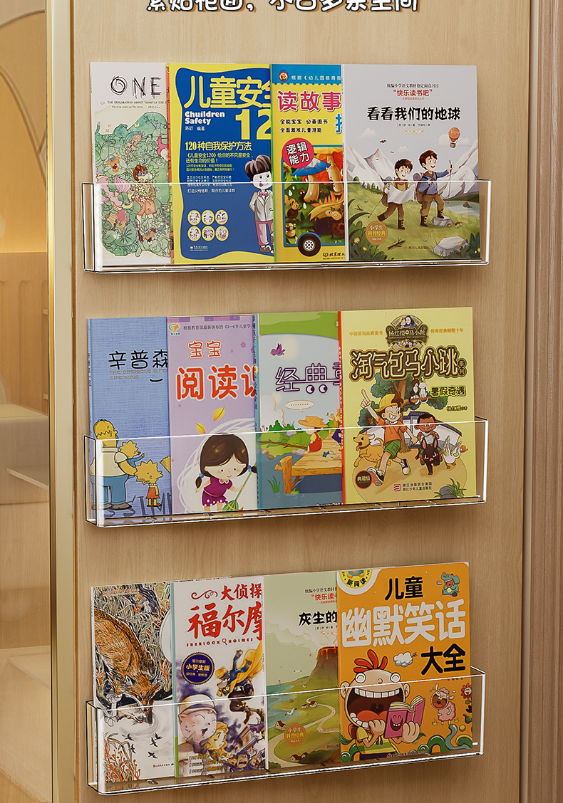 벽 책꽂이 어린이 벽 펀치가없는 아크릴 벽걸이 통합 벽걸이 형 그림책 보관 랙 단순스토어 가기
