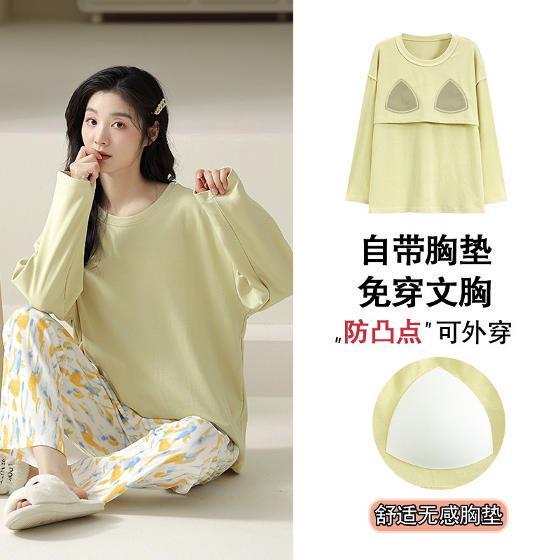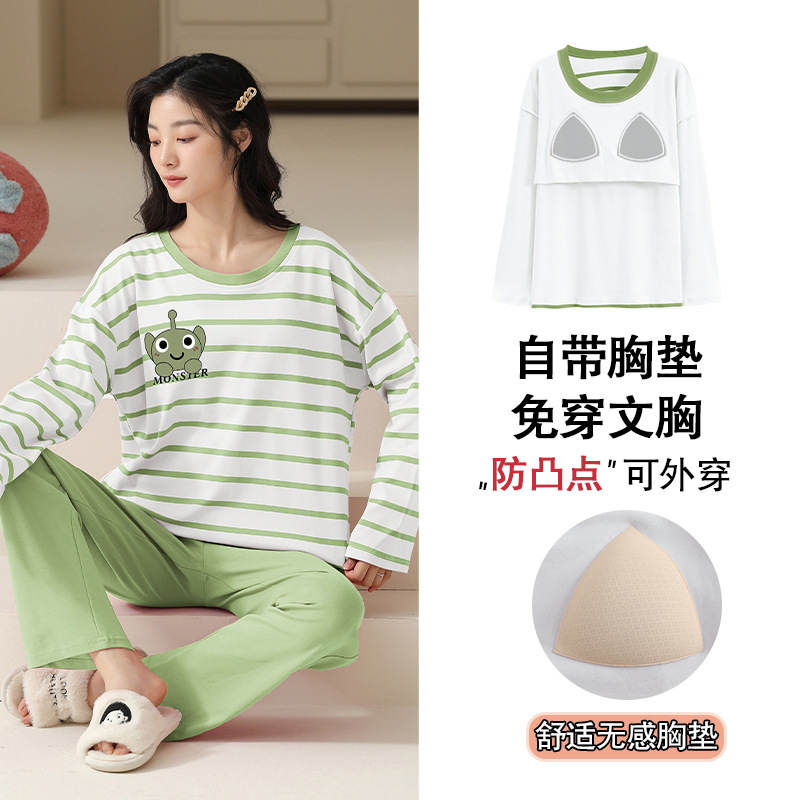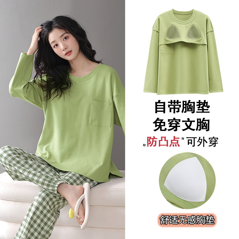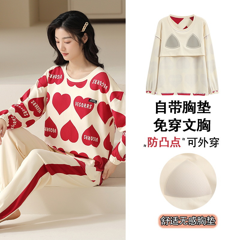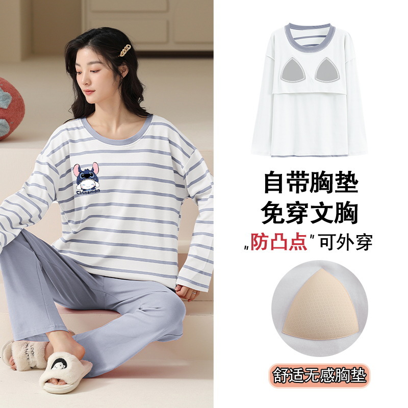얇은 가을 플러스 사이즈 여성 홈 의류 세트 입고 가슴 패드 원피스 외부와 함께 잠옷 여성의 봄과 가을 긴 소매스토어 가기