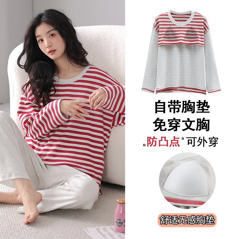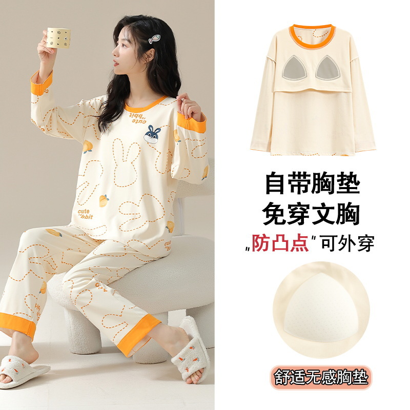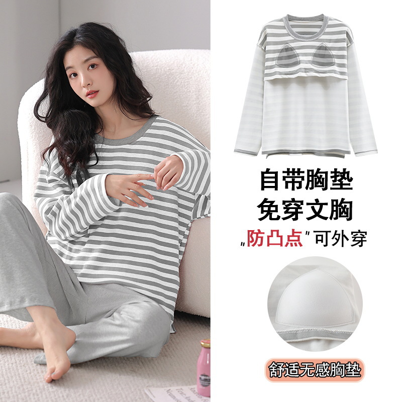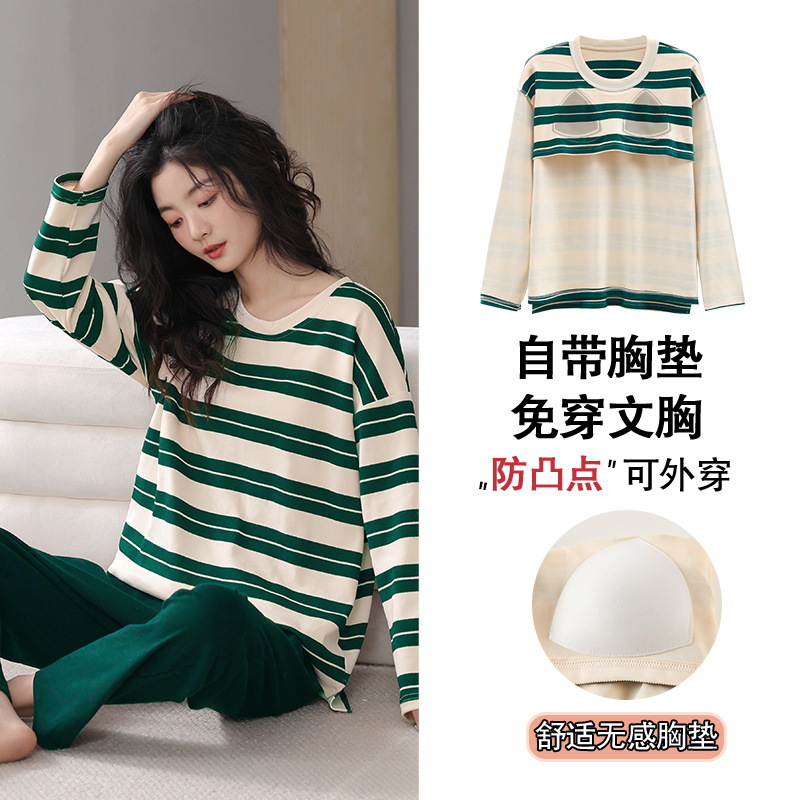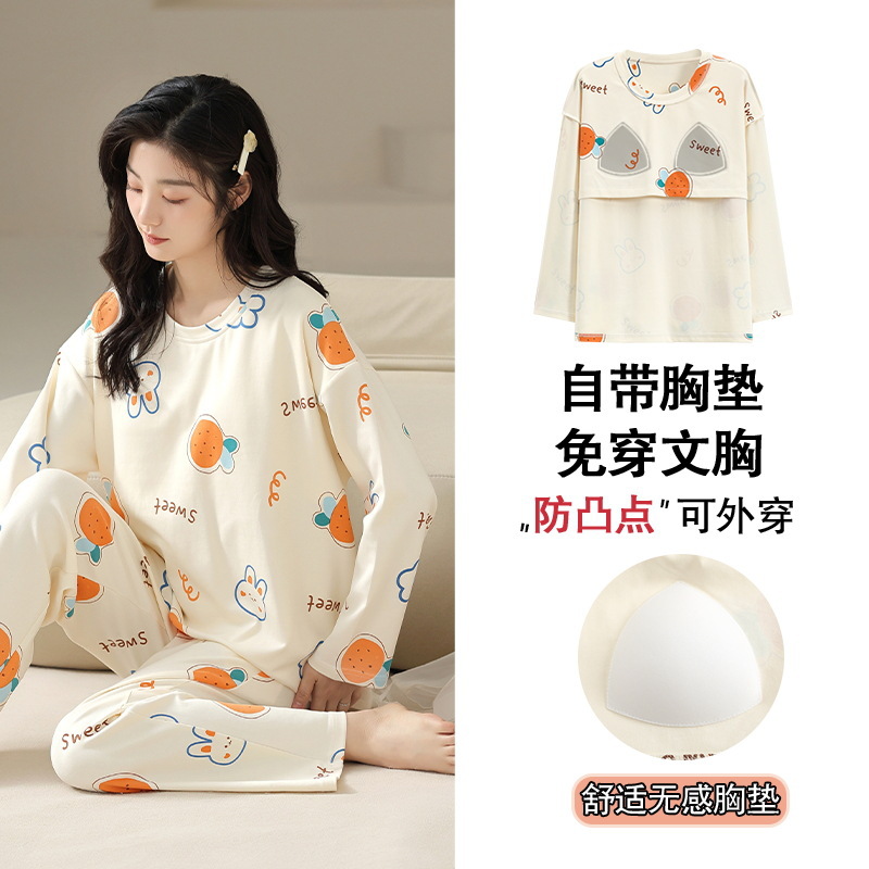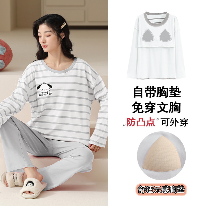 얇은 가을 플러스 사이즈 여성 홈 의류 세트 입고 가슴 패드 원피스 외부와 함께 잠옷 여성의 봄과 가을 긴 소매스토어 가기