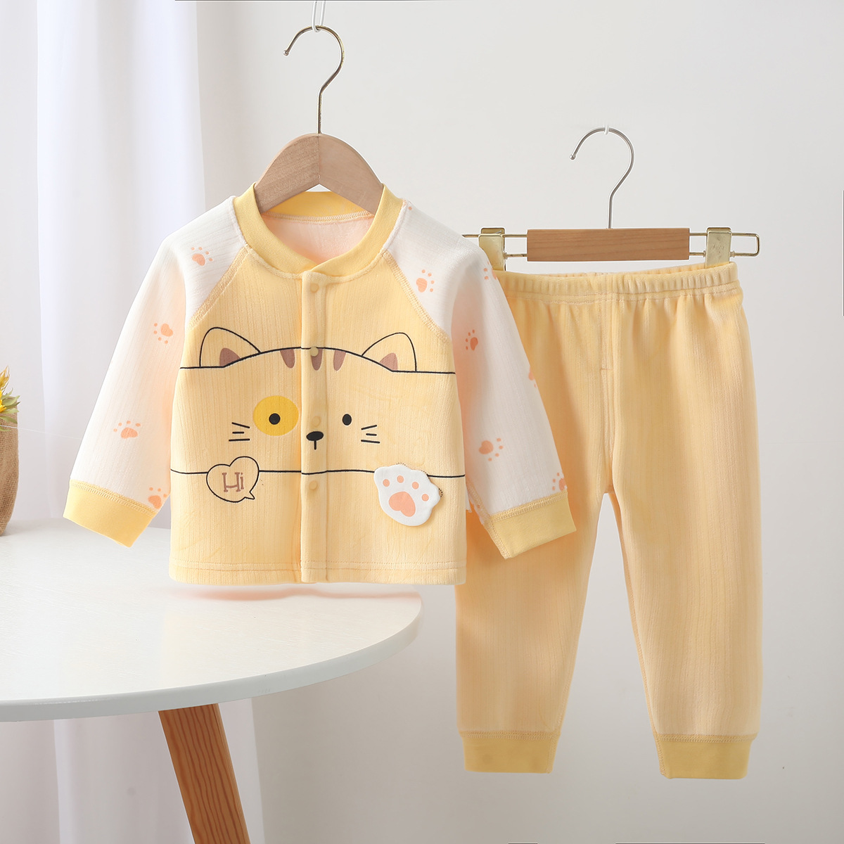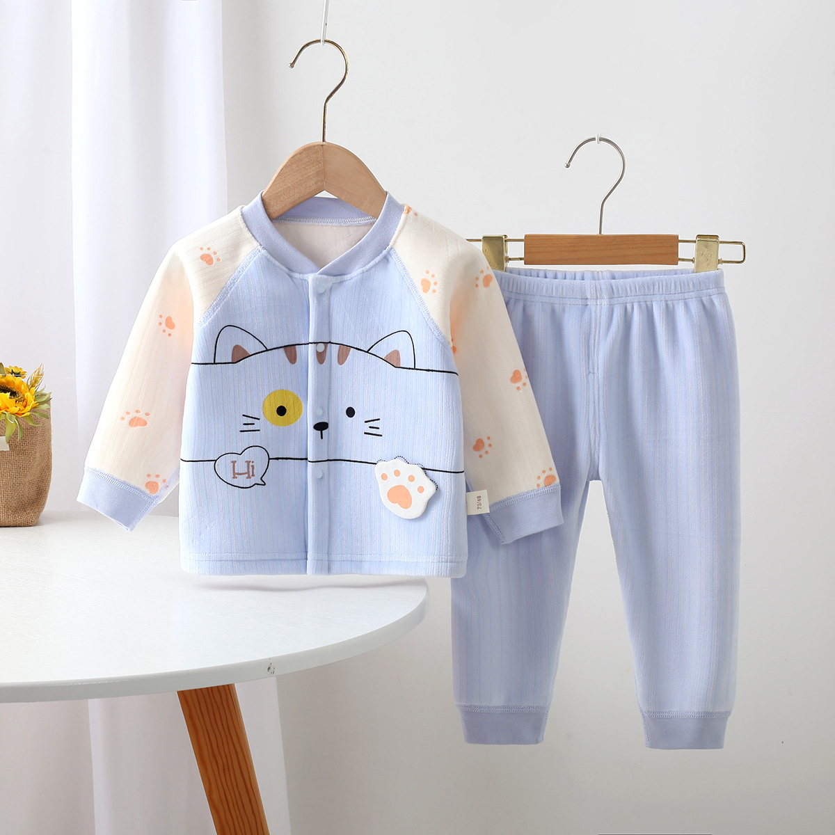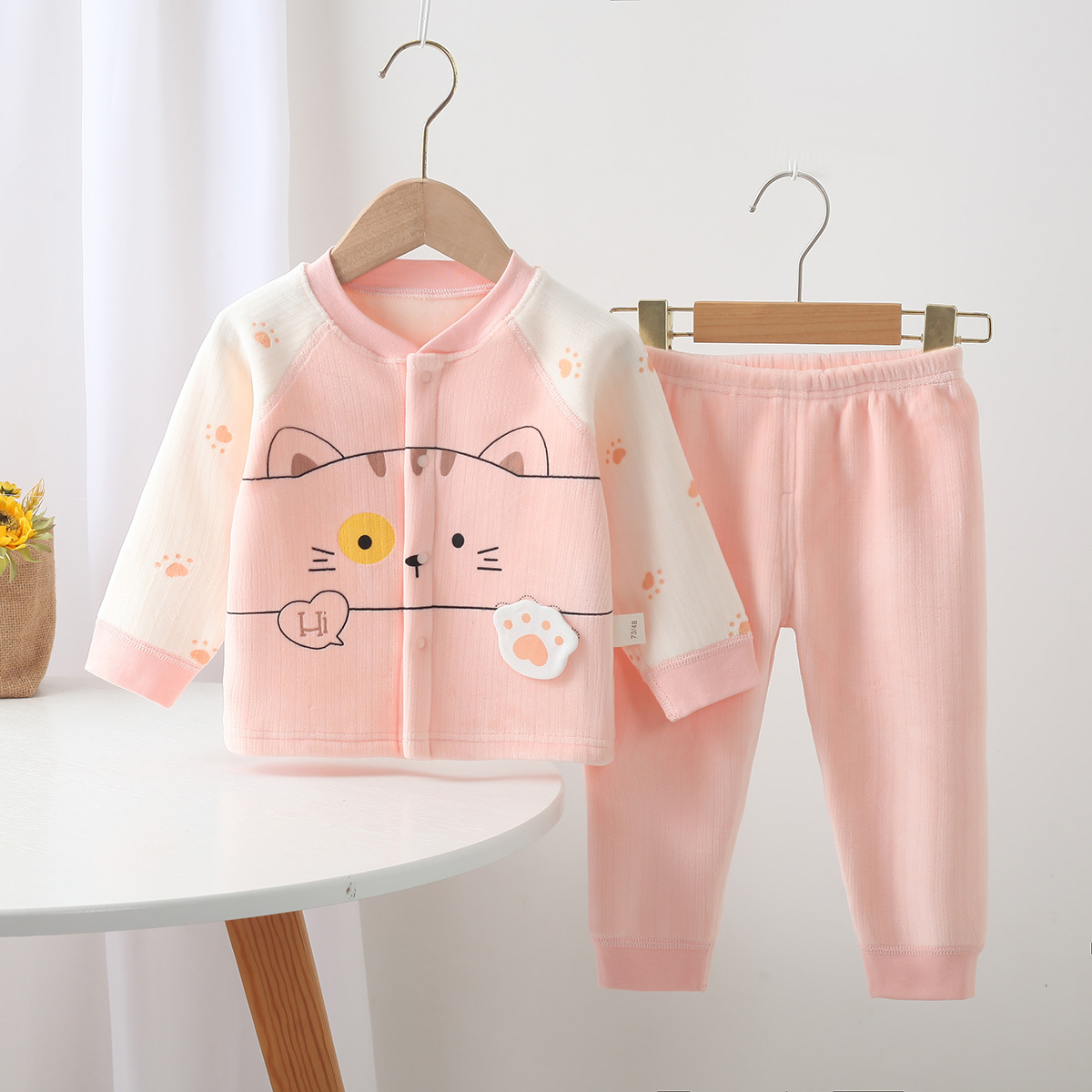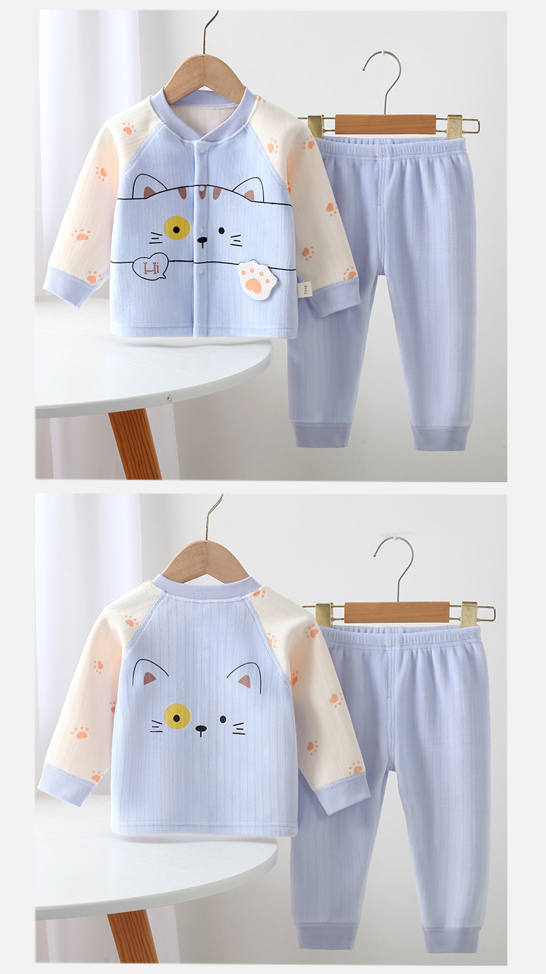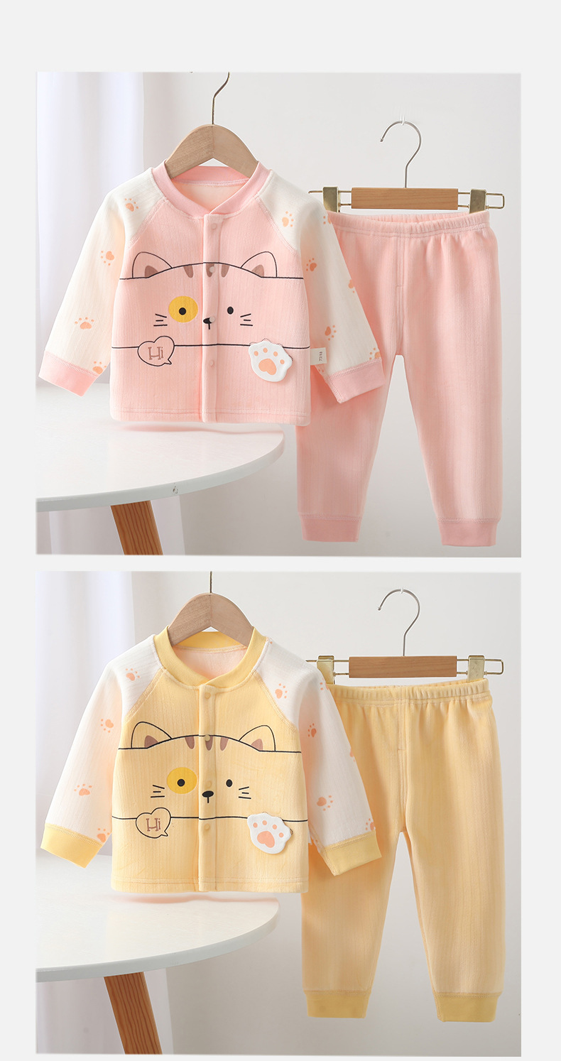 가을 새로운 신생아 속옷 세트 만화 패턴 아기 소년과 소녀 뼈없는 속옷 가을 옷 바지 세트