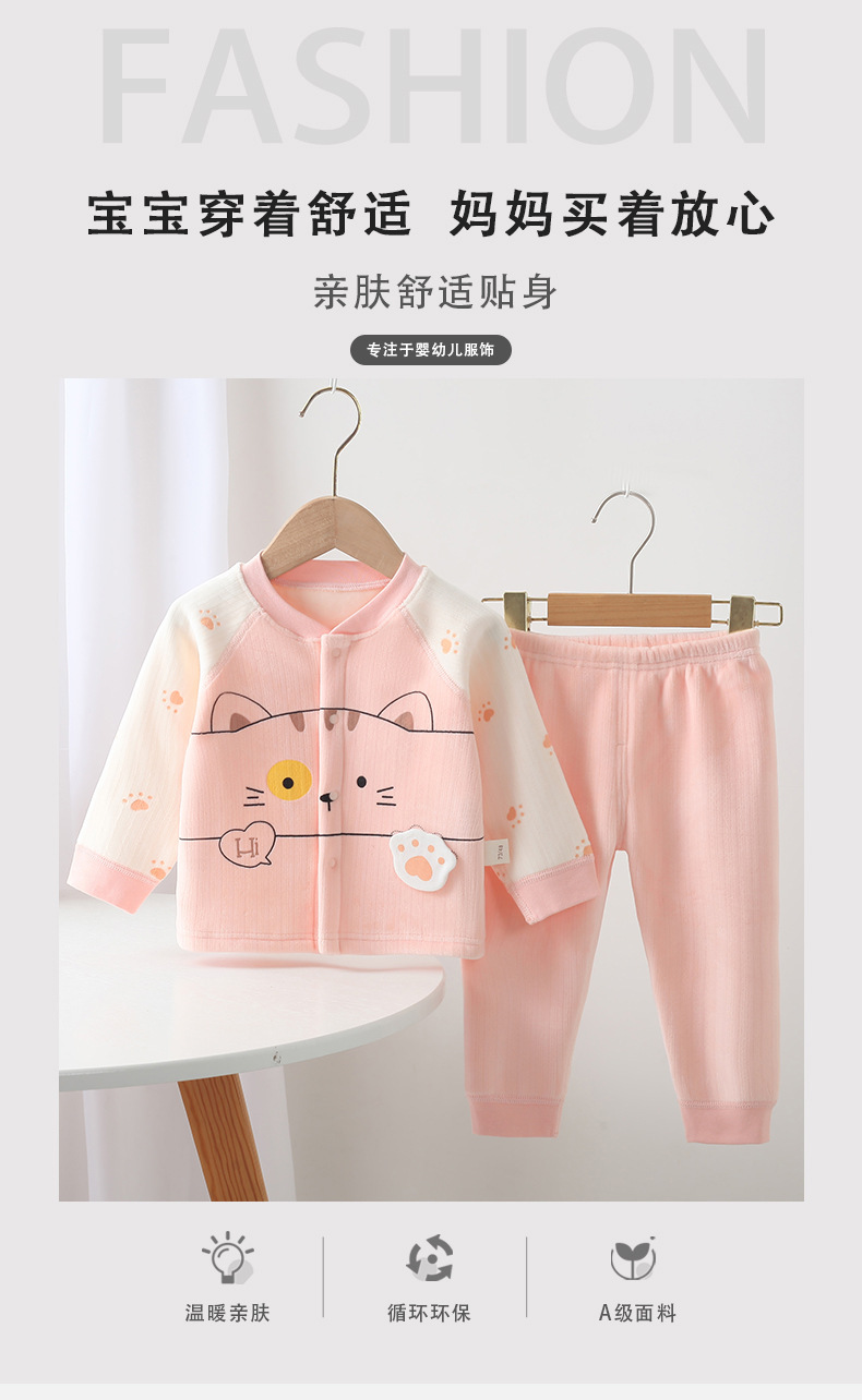 가을 새로운 신생아 속옷 세트 만화 패턴 아기 소년과 소녀 뼈없는 속옷 가을 옷 바지 세트스토어 가기
