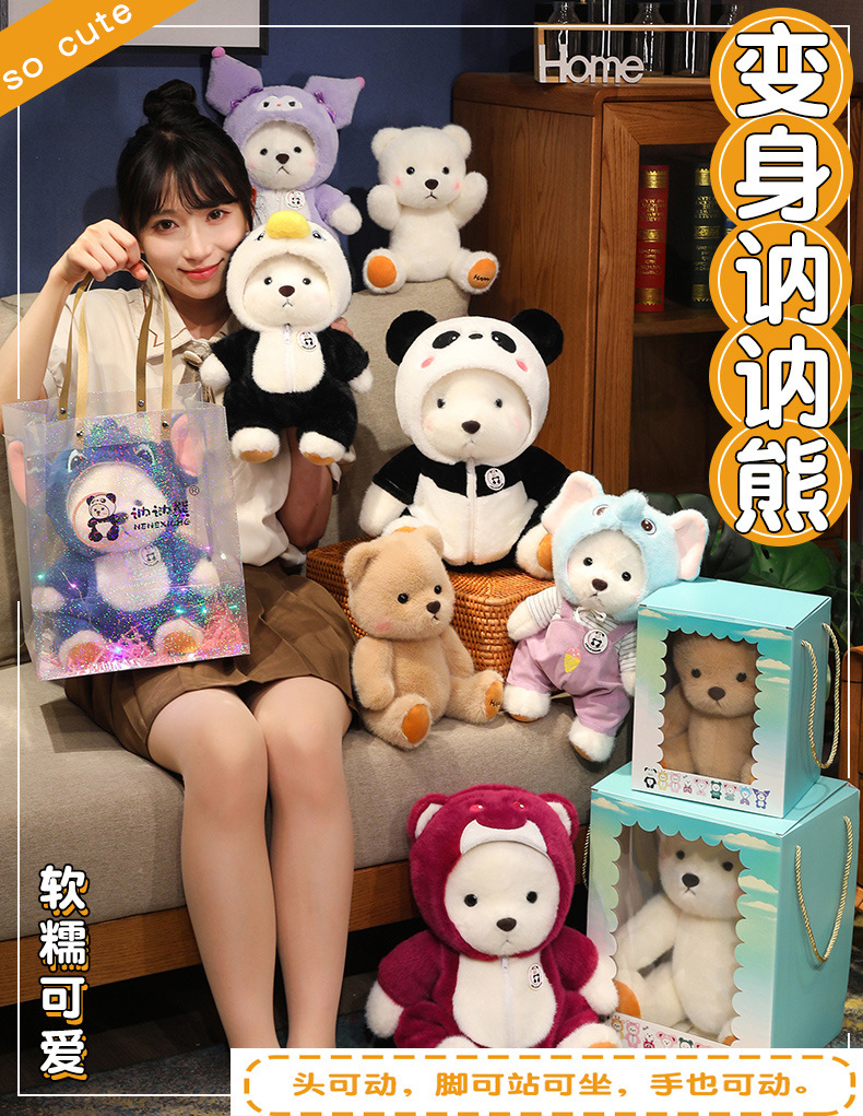 중국 발렌타인데이 선물, 천인형, 연인을 위한 변신 곰인형, 귀여운 변신 곰돌이 인형, 미니 인형뽑기 선물스토어 가기