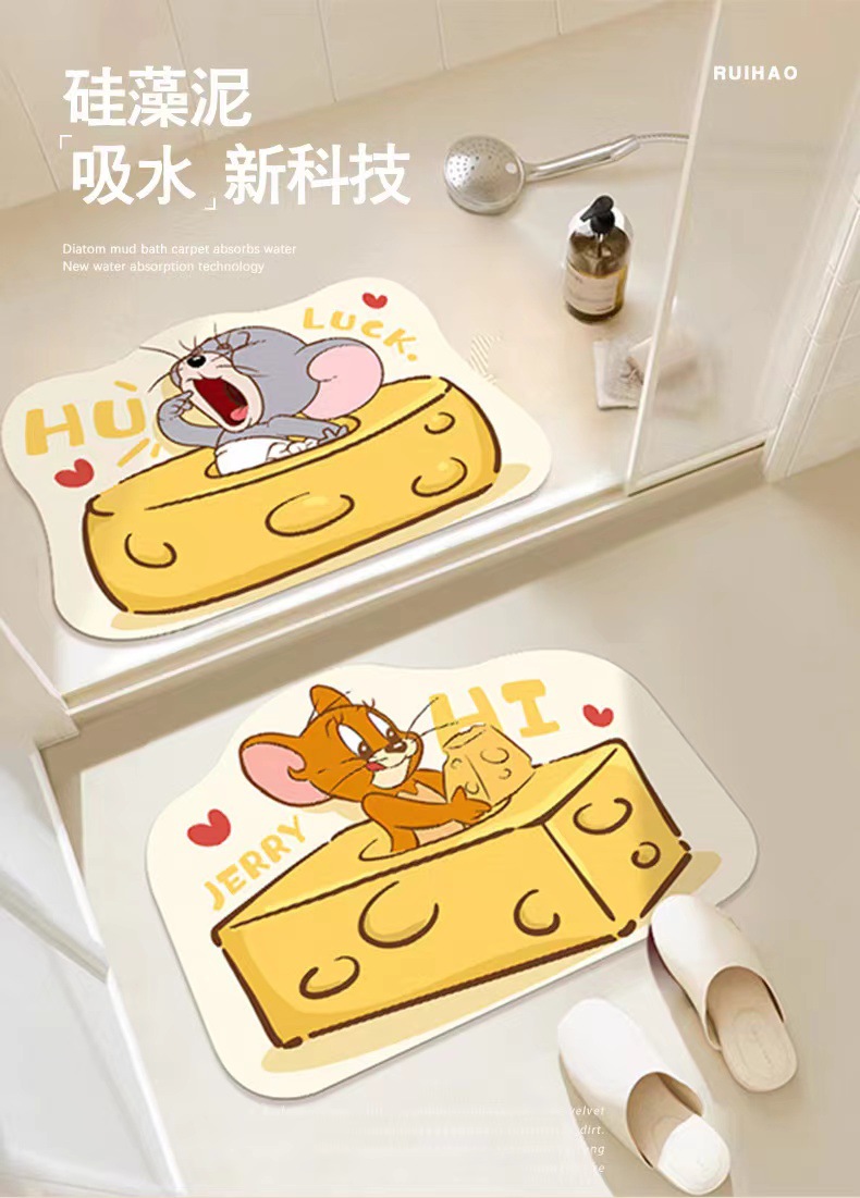 욕실 바닥 매트 만화 귀여운 Diatom 진흙 흡수성 빠른 건조 화장실 문 먼지 방지 슬립 안티 드롭 화장실 발 매트
